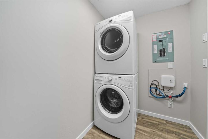 This home features 2 bedrooms and 2 full bathrooms, including a primary with ensuite. For added convenience, you’ll also find in-suite laundry with a stacked washer & dryer, plus two powered parking stalls right outside your door.