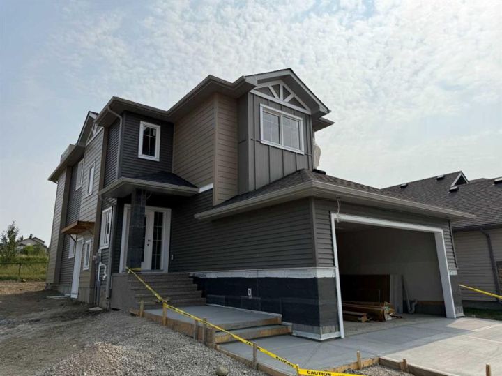 Welcome to this stunning two-storey home, complete with a legal two-bedroom basement suite and private side entrance, perfect for multi-generational living or generating rental income. Set on a spacious corner lot with no neighbours to the side or rear, the property offers both privacy and extra room to enjoy. Step inside and you’ll be greeted by an airy open-to-above feature that sets the tone for the rest of the home. Just off the entryway is a versatile office, ideal for working from home, studying, or even serving as a fourth bedroom. A full bathroom on the main level adds convenience for family and guests alike. The heart of the home is its open-concept kitchen, dining, and living areas, designed for easy everyday living and effortless entertaining. A large walk-in pantry, extended island, abundant cabinetry, and oversized windows bring both function and light to the space. Upstairs, the layout is tailored for family life. The primary suite offers a private retreat with its own en-suite and walk-in wardrobe. Two additional bedrooms provide flexibility, while the bonus room is perfect as a play space, media area, or cozy lounge. A dedicated laundry room upstairs makes chores that much easier. The legal basement suite is one of the property’s standout features, offering independent living with its own entrance. Whether for extended family or as a rental opportunity, it’s a versatile addition that enhances the home’s value. Outside, the corner lot delivers extra breathing room and a greater sense of openness, while the double garage provides secure parking and storage. In short, this home ticks all the boxes: a thoughtful floor plan, stylish design, and the rare advantage of a legal suite. All of this in Strathmore, a vibrant community that offers the amenities of the city without the hustle and bustle.