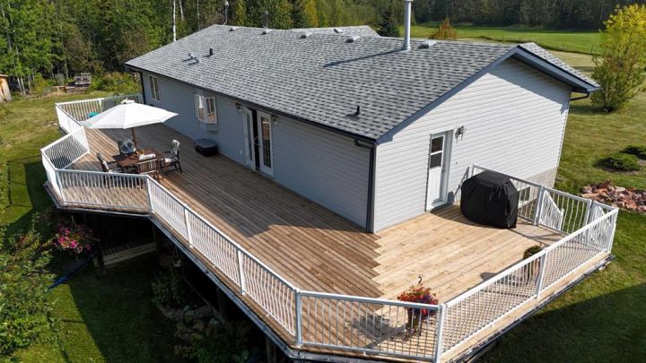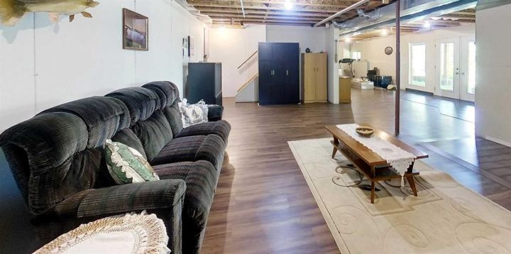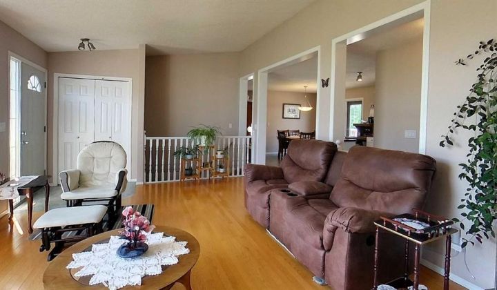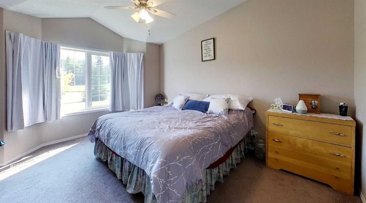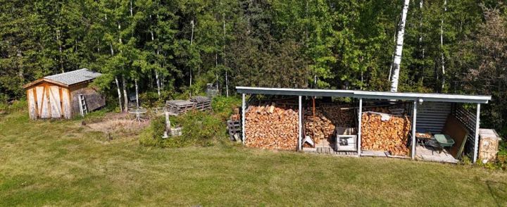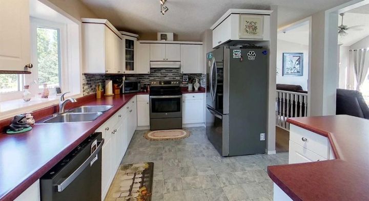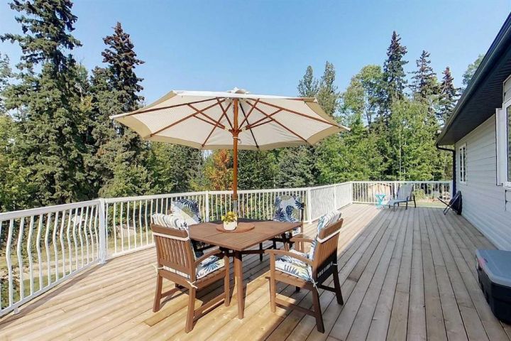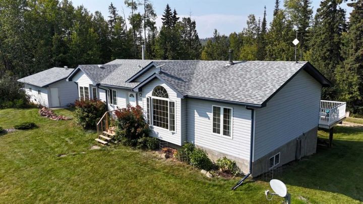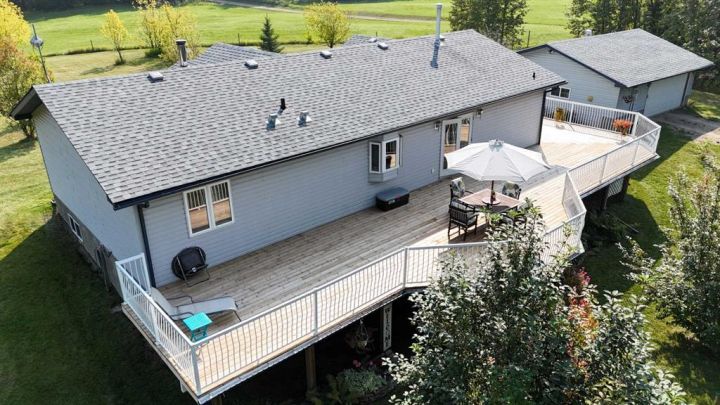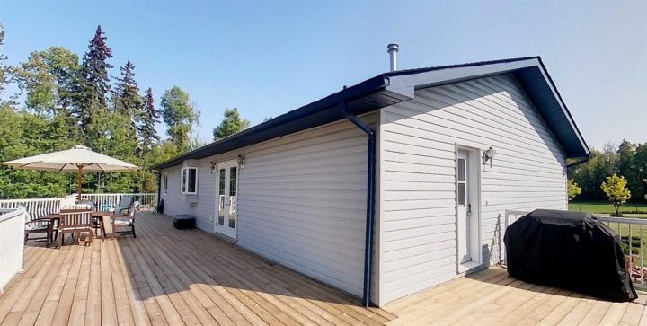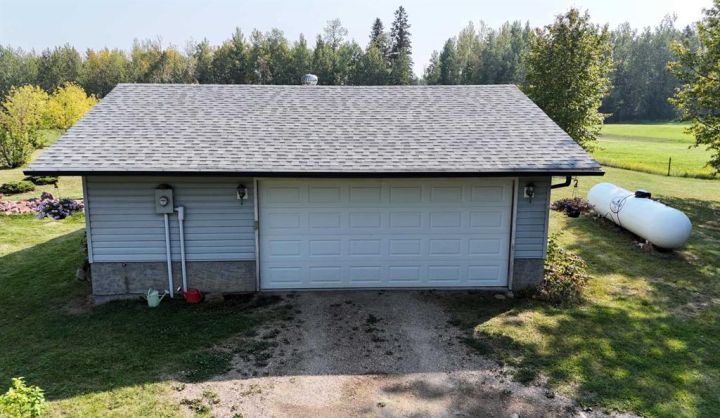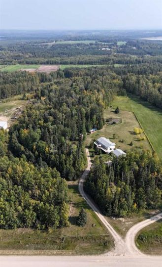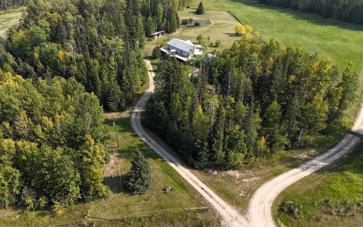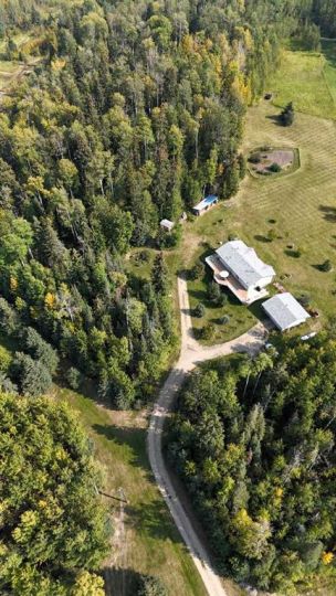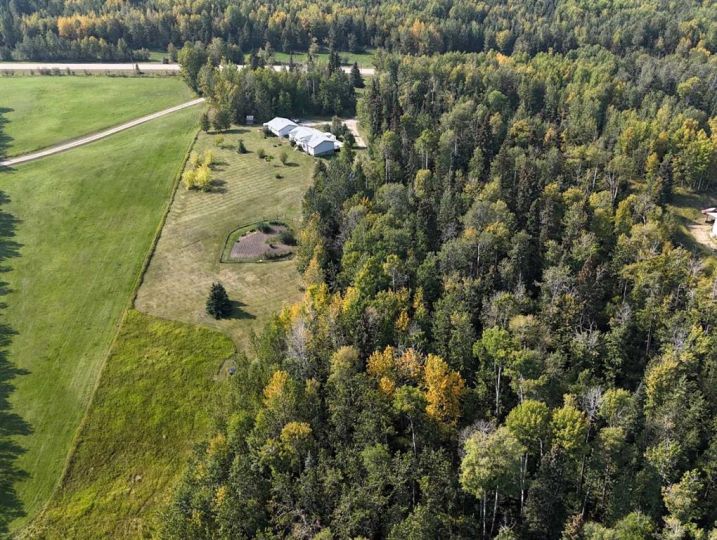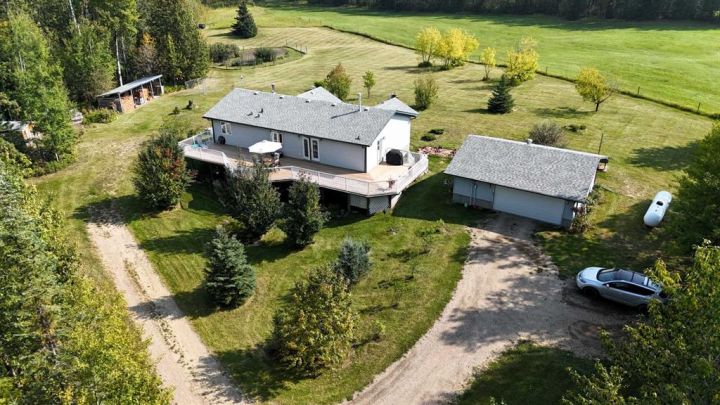 Serene Country Living. Nestled on 18 peaceful acres and only 12k from Edson, this property offers the best of quiet country living with easy access to town on mainly paved roads! This is 1500 sq.ft. modular home on a full concrete basement and features a 54' deck spanning the length of the house, newly updated deck boards, perfect for entertaining or simply soaking up the tranquil surroundings. The walkout basement leads to beautiful landscaped grounds accented with perrinials and Mayday trees. Inside, the main level boasts an open-concept kitchen, dining and living area highlighted by a cozy woodburning fireplace. There are 3 bedrooms upstairs and 1 down, 3 bathrooms, a cold room and plenty of storage throughout. (Note. some mudding and taping required in the basement). Additional features include a 28x30' insulated garage (not heated), large fenced garden area with apple trees and a shed to store your garden tools. Wood shed stays and currently has a years worth of firewood. Fire pit area for gatherings, BBQ hookup for gas or propane,. This acreage offers space, p;rivacy and everything you need for a self sufficient life style, all within minutes of Edson.