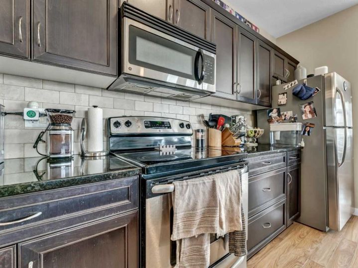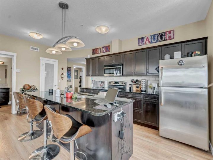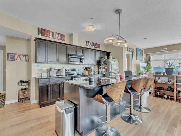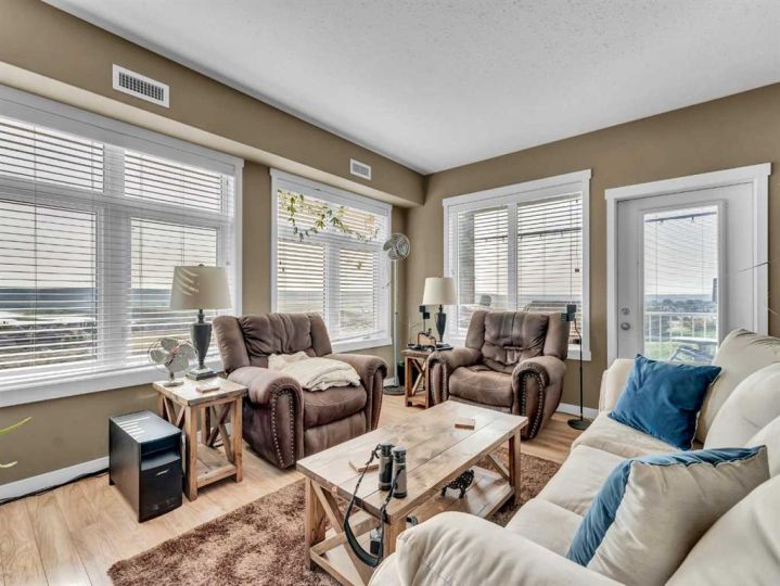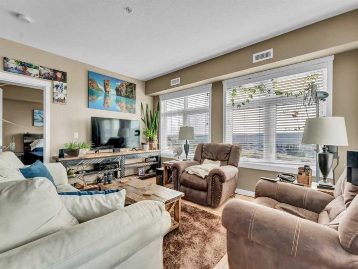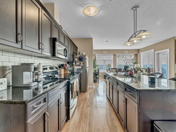 Welcome to 221 19 Terrace View NE – a bright and inviting 2-bedroom, 2-bathroom corner unit condo that’s move-in ready with great views of the river valley. This home offers a spacious open-concept layout designed for both comfort and functionality. The kitchen is a standout with granite countertops, stainless steel appliances, and a large eat-at island that’s perfect for casual meals or entertaining. It flows seamlessly into the dining area and the generous living room, which opens onto a private deck ideal for barbecuing or relaxing outdoors. Enjoy your morning coffee or evening night cap looking out over the beautiful river valley below. The primary bedroom is a true retreat with a walk-through closet leading to a 3-piece ensuite. A second good-sized bedroom, another full 4-piece bathroom, and in-suite laundry complete the floor plan. You’ll also enjoy the convenience of an underground parking stall. This well-kept building has no age restrictions, allows pets (with some restrictions), and your condo fees include all utilities—making for easy, worry-free living. Condo fees are $457/month and include: Common Area Maintenance, Electricity, Heat, Maintenance Grounds, Parking, Reserve Fund Contributions, Sewer, Snow Removal, Trash, & Water.