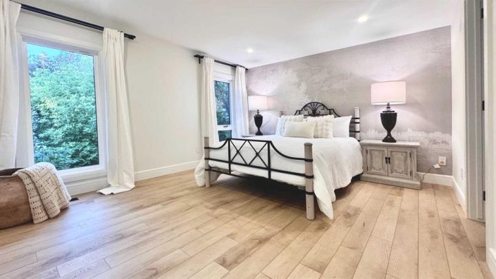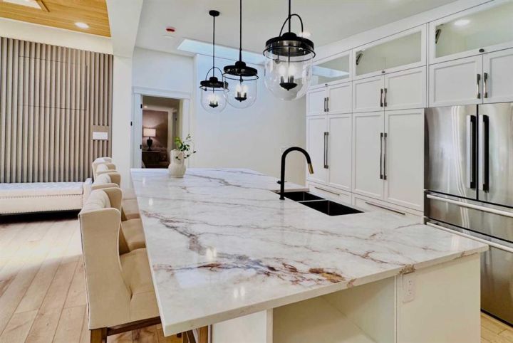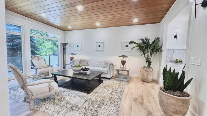A rare opportunity to live in luxury in this modernized bi-level bungalow in prestigious NW community of University Heights. This home offers nearly 3,300 sq. ft. of living space with abundant natural light, including almost 2,000 sq. ft. on the open-concept main floor featuring an ensuite master bedroom, 2.5 bathrooms, family room, formal dining room, and kitchen all under high ceilings. The gourmet kitchen boasts quartz countertops, a six-burner Dacor gas range, Bosch refrigerator, solid wood cabinetry, and a built-in wine fridge—perfect for entertaining. The primary suite is a private retreat with a walk-in closet and spa-inspired 5-piece ensuite, complete with dual sinks, soaker tub, and a walk-in shower. Cozy up by one of the two main-floor fireplaces (gas + wood-burning). The Lower Level is a light-filled space with all large windows above grade, a fourth bedroom, a full bathroom, a wine cellar, and a third fireplace. The flexible layout is ideal for a home gym, movie theatre, or children’s play area. The landscaped yard is a private oasis with mature trees, apple tree, raspberries, and blueberries. This home has undergone comprehensive renovations with brand new windows, doors, electrical panel, modern lighting, and an added second furnace. The tandem 2-car garage has a rough-in EV charger. Development and building permits for an additional single-car garage off the back lane are included.? Enjoy access to Calgary’s top amenities, just minutes from the University of Calgary, Westmount Charter School, Foothills Hospital, the new Cancer Centre, Alberta Children’s Hospital, and the University District. This move-in ready home is truly a gem in a highly sought-after neighborhood!