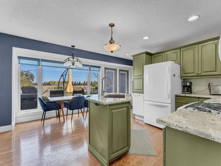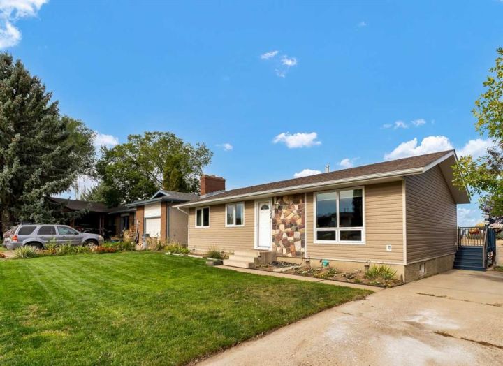 LOCATION! LOCATION! AN EXCELLENT 1078 sq ft 3 BDRM (ROOM FOR 4TH) 2 BATH BUNGALOW WITH AN UNIMPEDED VIEW AND NO NEIGHBOURS BEHIND! Important upgrades have been done: NEW SHINGLES IN JUNE 2025, NEW Furnace and Central Air Conditioner (both in Oct 2023) Newer HWT (Dec 2022), and New siding (June 2020). Just steps from the backyard are the scenic coulee walking paths, plus you can watch the beautiful sunsets and Northern lights right from the deck! The main floor offers a spacious living room; kitchen boasts TONS of Cabinets, GRANITE COUNTERTOPS, gas stove, NEW FRIDGE (Sept 2025), NEW DISHWASHER (Sept 2025), and a built in microwave. The VIEWS from the kitchen and dining area are outstanding, with the huge window and the garden door that leads to the deck. There are 3 bedrooms on this level, including a primary with a walk in closet, and the 4 pc main bath has a NEW QUARTZ vanity top! Downstairs is a large family room that boasts a wood burning fireplace ("AS IS" seller has never used), 3 pc bath with walk in shower, a perfect area for an additional bedroom and the large laundry/utility room that has a sink and lots of additional cabinets. The backyard has a maintenance free fence and a good sized shed plus so much room for children, pets, and loads of space to create your dream yard. Whether you are entertaining, or enjoying the large deck by yourself it is a wonderful place to relax or watch wildlife, so Call today!