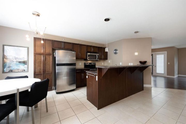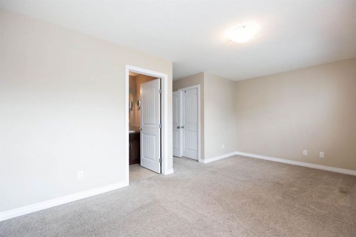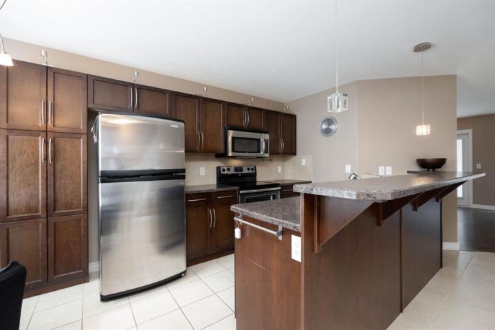 Welcome to 33-180 Riverstone Ridge. Calling all first-time buyers, young professionals & savvy investors—this END UNIT townhome in Stone Creek checks all the boxes! Built by Alves Developments, this 3-bed, 3.5-bath home is loaded with features that make everyday living easy and comfortable. Each bedroom comes with its own ensuite—ideal for roommates, guests, or renting out a room for extra income. Located in Stone Creek, just steps from Stoney Creek Village amenities, walking trails, public transportation, and schools—this is a prime location for commuters and renters alike. The main floor features a bright living room with a fireplace and patio doors leading to a private balcony. The adjoining eat-in kitchen is complete with tile flooring, rich cabinetry, and a large eat-up island, ideal for entertaining or everyday living.Upstairs, you'll find two spacious primary bedrooms, each with walk-in closets and full 4-piece ensuite bathrooms. On the ground level, there's a welcoming entryway, access to the attached single garage, laundry, and a third bedroom with it’s own private entrance and its own ensuite—a perfect setup for a roommate or tenant. Additional features include CENTRAL AC, and an extra-wide driveway with parking for 2 vehicles + attached garage (3 parking stalls total. Low condo fees at $385.00 a month and include water, sewer, garbage pickup, building insurance, professional management, and reserve fund contributions. This home offers excellent value and flexibility in a convenient location. Schedule your private tour today!