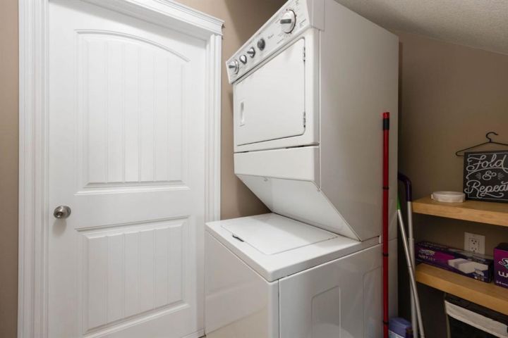 Fridge, stove, dishwasher, stackable washer & dryer, central air, central vac & attachment, garage door opener & 1 remote, all window coverings, all furniture (neg)