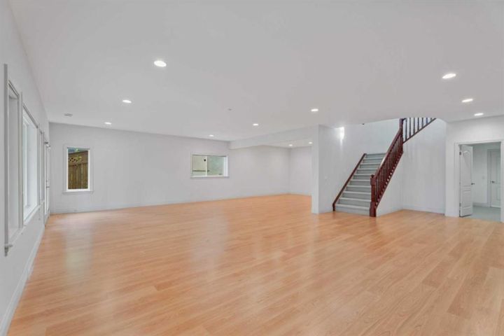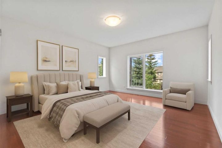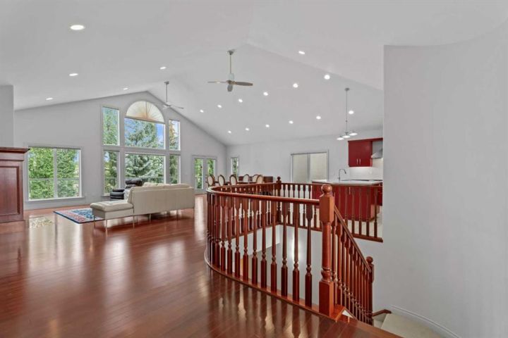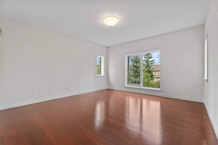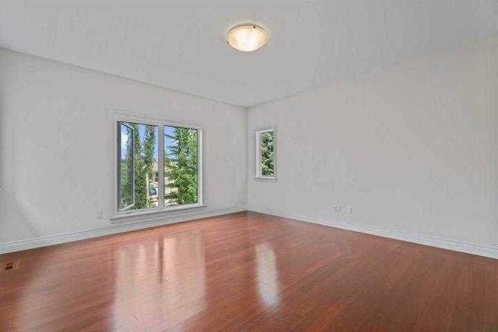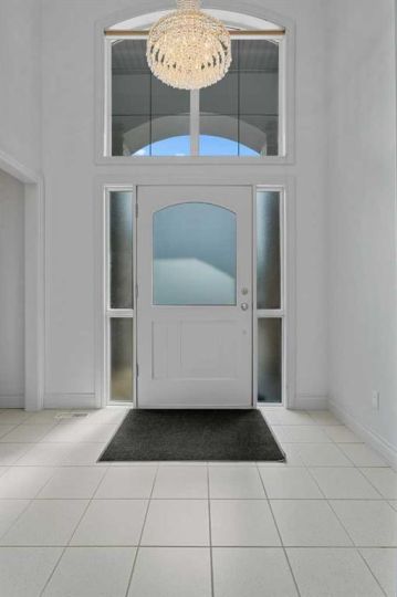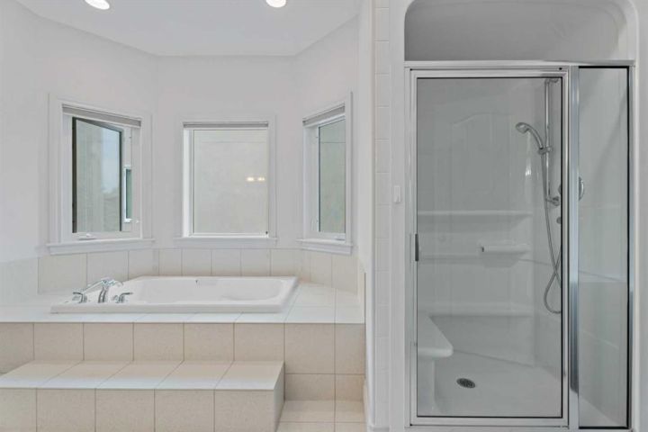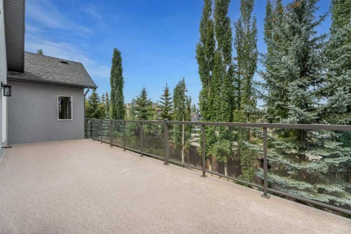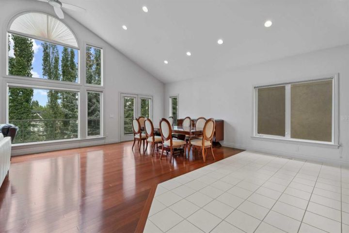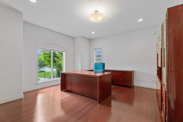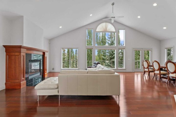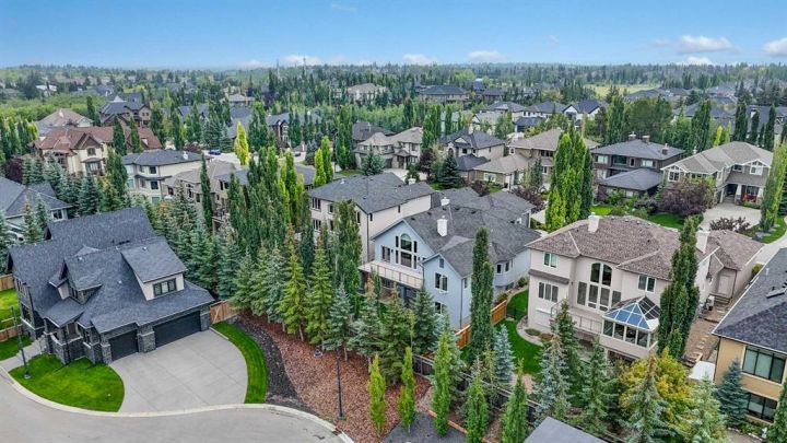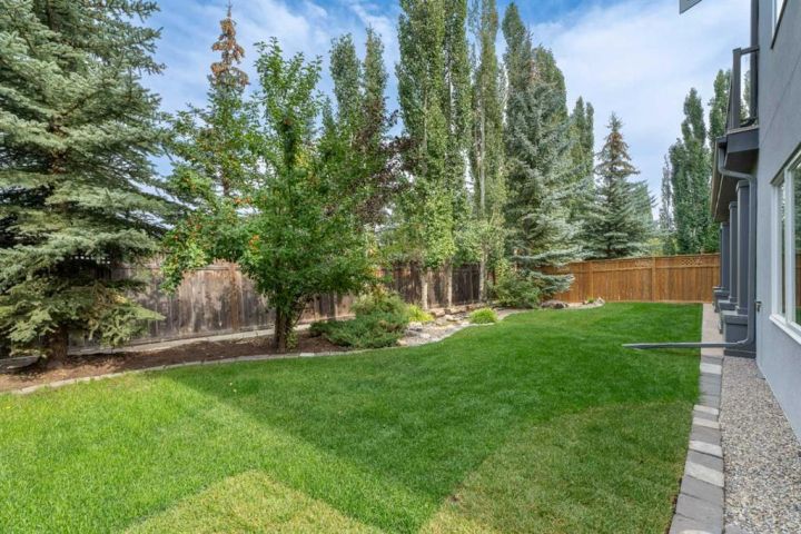 Welcome to this exceptional estate residence in the prestigious community of Aspen, perfectly situated on a beautifully landscaped 8,471 sq. ft. lot that offers privacy, mature trees, and no homes directly behind. This immaculate bungalow showcases timeless craftsmanship with over 4,600 sq. ft. of living space, thoughtfully designed for both everyday comfort and elegant entertaining. From the moment you arrive, the home makes a statement with its oversized triple garage, a newly refinished driveway with ample room for additional parking, and stunning curb appeal that sets the tone for what’s inside. Step into the main level where soaring vaulted ceilings and expansive windows create a bright, airy atmosphere that is both warm and inviting. The open floor plan flows seamlessly between the living, dining, and kitchen areas, highlighted by a large deck that extends the living space outdoors and overlooks the lush, private backyard. A spacious front office with a nearby 4-piece bath provides the ideal work-from-home setup or easily functions as a second main-floor bedroom. The primary retreat is tucked away for privacy and comfort, featuring a generous 5-piece ensuite with dual vanities, a separate soaker tub and shower, and a private water closet. A large laundry and mudroom with sink adds practicality, while the thoughtful layout ensures convenience throughout. The professionally developed walkout basement nearly doubles the living space, offering a massive recreation and games room perfect for family gatherings or entertaining guests. Comfort is paramount with two dedicated in-floor heating zones—one for the bedroom wing, which includes two spacious bedrooms and a 4-piece bathroom, and another for the expansive recreation space. A freshly sealed lower-level patio opens onto the meticulously maintained backyard, where mature landscaping, newer fencing, and carefully designed outdoor spaces create a peaceful oasis. Additional highlights of this home include central air conditioning for year-round comfort, a water softener, built-in central vacuum with attachments, and abundant storage space. Every detail reflects the pride of ownership and meticulous care that has gone into maintaining this home. Combining an enviable location in Aspen’s sought-after estate area with a rare blend of space, privacy, and elegance, this residence offers a truly unique opportunity to own a forever home in one of Calgary’s premier communities.
