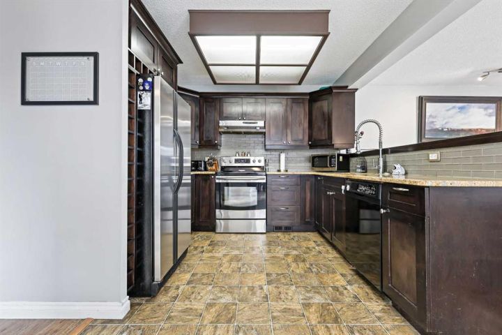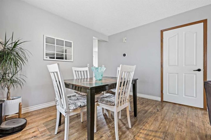 Welcome to this beautifully finished 2-storey home in the highly sought-after, mature community of Millrise! With over 2,300 sq. ft. of developed living space, including four bedrooms and 2.5 baths, this home offers so much more than meets the eye. From the curb, it feels cozy and quaint, but step inside and you’ll be greeted by a dramatic open-to-above foyer with nearly 17-foot ceilings and a 12-foot vaulted living room that immediately sets the tone. The front living room is bathed in natural light through its oversized window and flows seamlessly into the spacious formal dining area – perfect for hosting holiday dinners or family celebrations. The heart of the home is the upgraded kitchen, featuring granite countertops, a stylish glass tile backsplash, abundant cabinetry, and sleek stainless steel/black appliances. A bright breakfast nook overlooks the large backyard and flows into the sunken family room, where a timeless wood-burning fireplace with tile surround and wooden mantle creates the perfect gathering place for cozy evenings. A convenient main floor laundry room with side entry and a well-placed half bath complete this level. Upstairs, you’ll find three generously sized bedrooms, including a large primary suite with walk-in closet and pocket door access to the full four-piece bath with jetted soaker tub, full tile surround, and separate shower. The fully finished basement offers a private retreat for teens or guests with a fourth bedroom featuring a huge walk-in closet and its own full bathroom. There’s also plenty of open space for a media area, home gym, or games room – you decide! Step outside and enjoy the expansive backyard with huge deck, fire pit, and room to build your dream garage. The stucco exterior adds to the home’s charm while keeping maintenance low. Located on a quiet street in a mature neighborhood, you’ll love being just minutes away from Fish Creek Park, multiple schools, parks, Shawnessy shopping, restaurants, YMCA, and quick access to Stoney Trail and Macleod Trail. This is affordable homeownership in one of Calgary’s most family-friendly communities – offering space, function, and style all in one package.