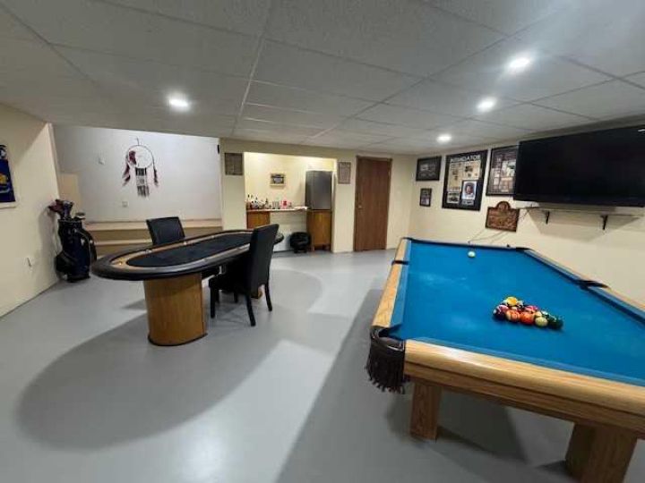 Welcome to this beautifully maintained bungalow offering space, comfort, and some modern upgrades, all on a generous lot right in town! This spacious open plan layout has a kitchen has a abundance of cabinets and an island with eat up breakfast bar and plenty of counter space, built in appliances,. The main level offers a Primary bedroom with 4 piece ensuite including jetted tub, second and third bedrooms and a 3 piece bathroom. Basement offers two more bedrooms, large family room, laundry room, 2 piece bathroom (with room for a shower if desired) and a fantastic games room. Double attached heated garage wiith man door. Recent upgrades include newer shingles, new dishwasher, apoxy garage floor, ceiling in games room, some paint and a fabulous new two tier deck! There is also separate entrance to the basement for added convenience. The outdoor space is .41 of an acre includes a dog run, plenty of parking and space for an RV/Boat etc. The yard is huge and has a cozy firepit area, great for entertaining family and friends.