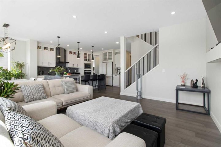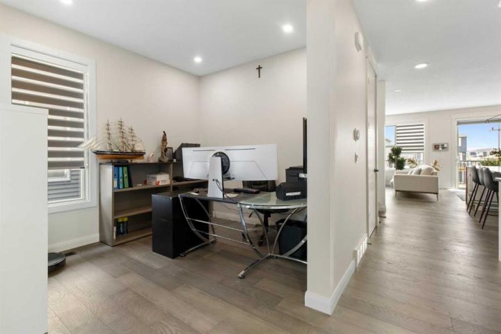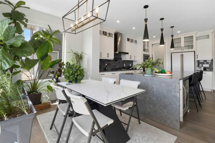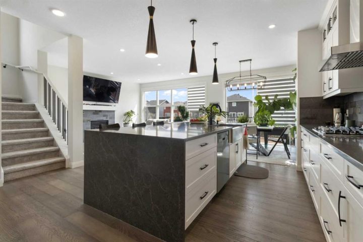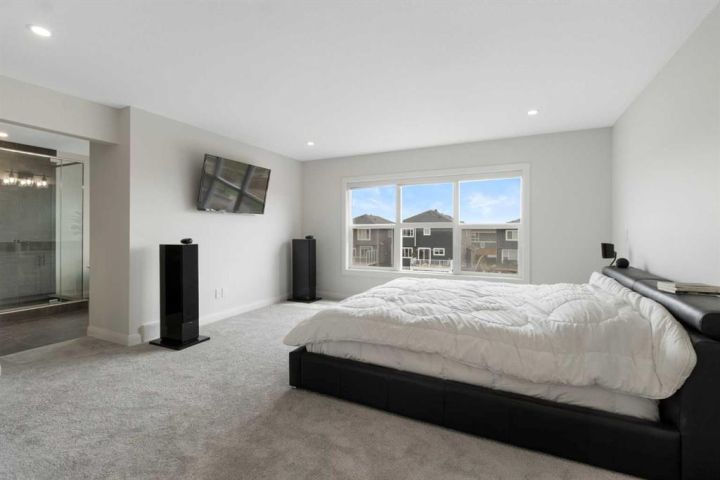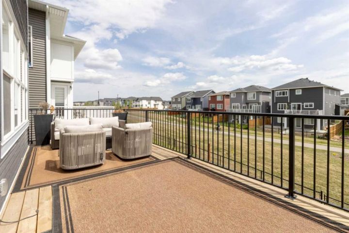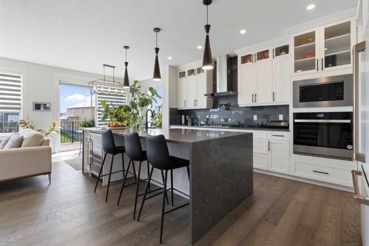 Welcome to Your Dream Home in Chelsea, Chestermere Discover this stunning Trico-built residence where luxury, comfort, and versatility meet with breathtaking park and green space views. From the moment you step inside, you’re greeted by rich hardwood floors, expansive upgraded windows, and a thoughtfully designed open layout perfect for modern family living. At the heart of the home is a chef-inspired kitchen featuring waterfall quartz counters, a gas range, built-in oven and microwave, bar fridge, and elegant cabinetry with glass uppers to display your favorite pieces. A dedicated spice kitchen—complete with electric stove and hood fan—makes meal prep effortless while keeping your main kitchen pristine. The oversized island is ideal for casual dining, entertaining guests, or gathering with family. A main floor bedroom with private ensuite offers flexibility for multi-generational living, hosting visitors, or creating a private office. Large 8-foot balcony doors open to a full-width deck overlooking a tranquil walking path and park—perfect for morning coffees or evening sunsets. Upstairs, unwind in the generous bonus room or retreat to the serene primary suite with peaceful green space views. The spa-inspired 5-piece ensuite and walk-in closet—with direct access to the laundry—bring convenience and everyday indulgence. Two additional bedrooms, a full main bath, and a private suite with its own ensuite complete the upper floor, ensuring space and privacy for everyone. This smart home offers modern efficiency with a tankless water heater, dual furnaces, a 200-amp panel, and rough-ins for A/C and soft water. Integrated with Alexa, you can control lighting, blinds, and temperature by voice or phone for seamless comfort. Outdoors, enjoy walks along the green path, quiet moments by the park and water feature, and a backyard ready for your personal landscaping vision. A triple garage and thoughtful upgrades throughout complete this exceptional property. Don’t miss this rare opportunity to own a remarkable home in the family-friendly community of Chelsea. Schedule your private showing today and imagine life here.