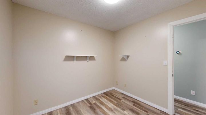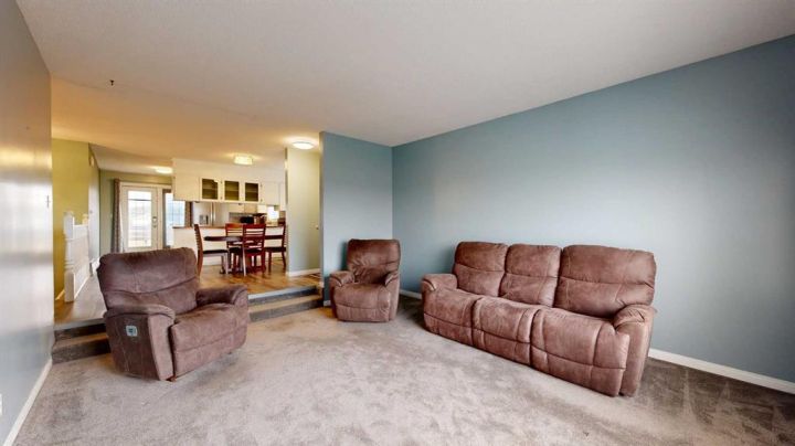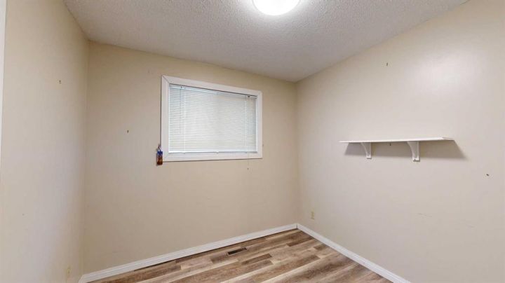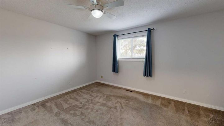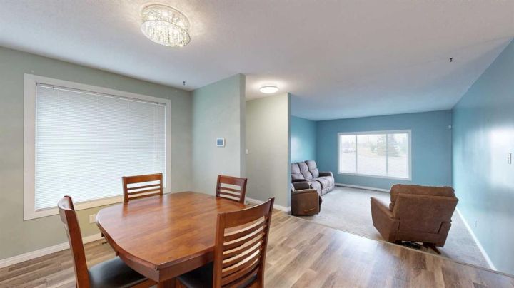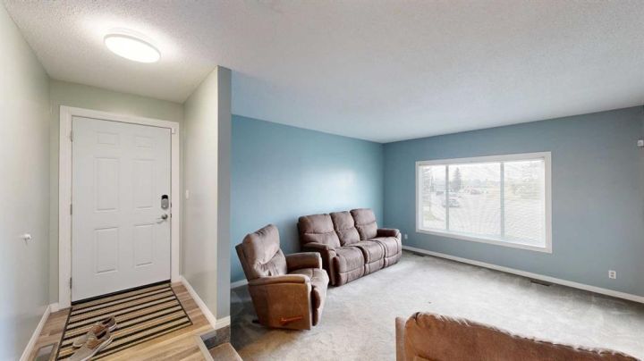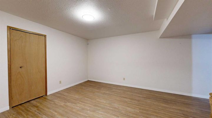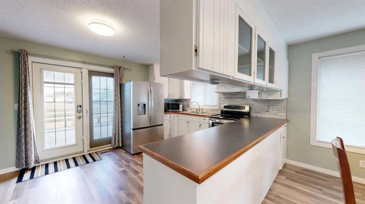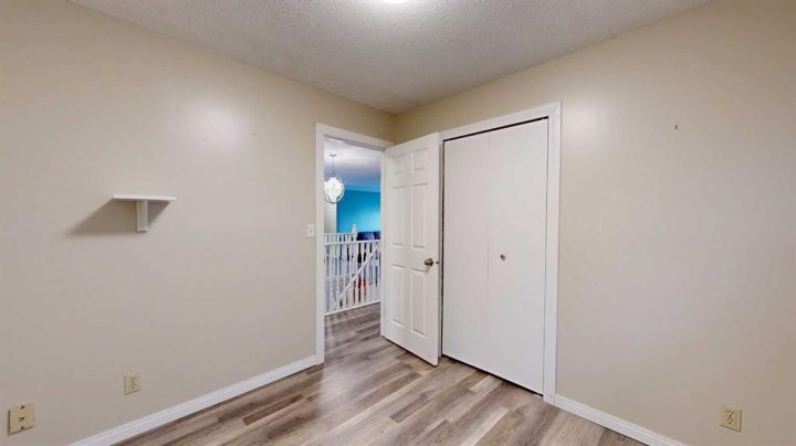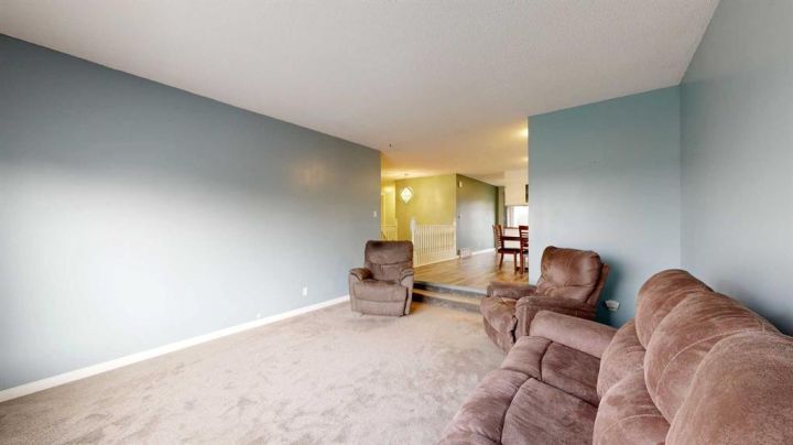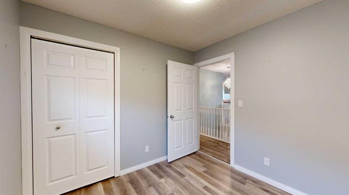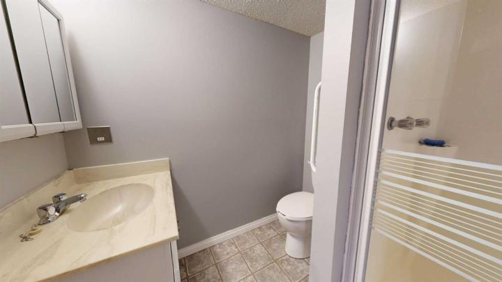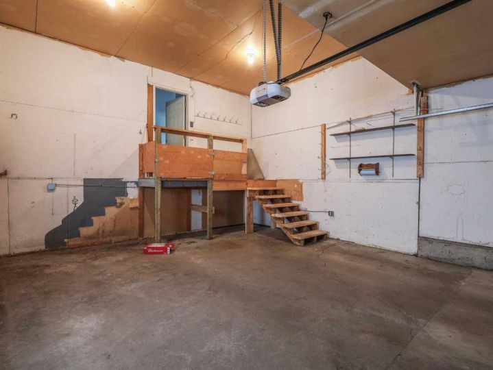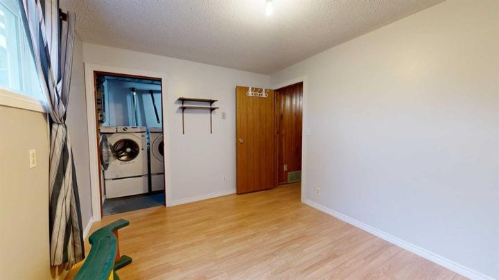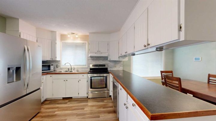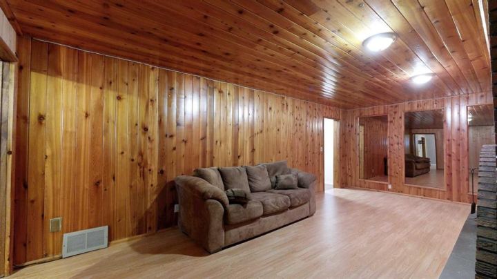 This amazing property sits on the edge of town and has dedicated green space in nearly every direction you look. This oversized, pie-shaped lot offers plenty of space for a family of any size to grow and set down roots. Inside, the home’s layout offers versatile spaces for relaxation and entertainment. Wood-look vinyl plank flooring throughout much of the home adds warmth and elegance, while large windows bathe the interior in natural light. The living room faces the crescent and is open to the dining room. The seamless flow to the kitchen allows for easy entertaining and daily life. The bright kitchen is equipped with white cabinets, modern stainless-steel appliances, and garden doors. The three bedrooms are well-proportioned, with the primary bedroom offering extra space for furniture. The bathroom blends functionality with style, featuring a walk-in shower with glass and tile surround. Central air conditioning is an added bonus on the hot summer days, keeping this home comfortable. Heading downstairs, there is a family room done in knotty pine tongue and groove and has a unique brick fireplace with a nook for firewood. There is a storage room further back and the mechanical room/laundry room with front load washer and dryer. Next, there is a multi-purpose room with space for gym equipment, games, kids toys, etc. There is a bedroom and a 3-pc bathroom conveniently beside it. There is a workroom with cabinets, countertops, shelving, and task lighting to appease your tinkering and crafting hobbies. Outside, the double garage has a cement pad in front for off-street parking. The roof overhangs the sidewalk to the main door, keeping you out of the elements. Heading to the backyard, the garden doors take you to a huge deck with built in, bench seating and an unobstructed view of the green space behind the property. The yard is partially fenced and has shrub beds along the home’s foundation. There is a cement pad for patio furniture but it is also large enough for the hot tub you have been dreaming about. In addition, the backyard has a fire pit, a nice sized garden shed, and a tidy gravel parking pad for a large RV. The location of this home provides a balance of community accessibility and residential comfort.