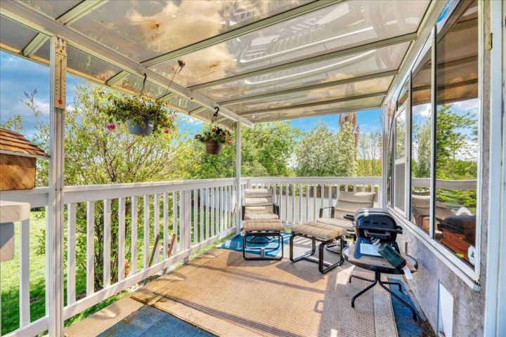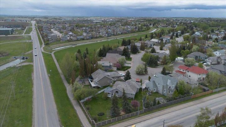 Discover this beautifully maintained walkout bungalow, set on one of the largest lots in Strathmore’s prestigious Grande Point Estates. Tucked away on a quiet cul-de-sac, this home offers over 3,000 sq ft of developed living space and a rare blend of privacy, elegance, and everyday comfort. The neighborhood is renowned for its upscale lamp posts, wide sidewalks, and timeless estate-quality homes. Perched on an 8,600+ sq ft lot, the property is framed by mature trees and lush landscaping, complete with underground sprinklers. A spacious upper deck invites you to relax or entertain, while the oversized triple garage—with high ceilings, heating, and A/C—is ideal for hobbyists, car enthusiasts, or anyone needing extra room for toys and tools. Inside, the open-concept main floor is filled with natural light thanks to vaulted ceilings and large windows. The kitchen offers ample storage with a custom pantry, white appliances (including a stand-up freezer), and a raised eating bar that flows into the dining and living areas. A cozy gas fireplace anchors the living room, and garden doors lead to the covered deck—perfect for morning coffee or evening BBQs. The main level also features a versatile front office (or formal dining room/bedroom), a convenient laundry room, and a generous primary suite with a walk-in closet, two-person jetted tub, and separate shower. A second bedroom and full bath complete this floor. Downstairs, the walkout basement is approximately 80% finished and provides two additional bedrooms, a full bathroom, a spacious family room, and a large workshop/storage area—offering plenty of room to grow or create your ideal hobby space. Whether you’re upsizing, downsizing, or simply searching for a thoughtfully cared-for home in a mature estate community, this property delivers space, functionality, and enduring style. Homes in Grande Point Estates are seldom available—especially with a lot and garage of this caliber. Don’t miss the opportunity to make this exceptional residence your own.