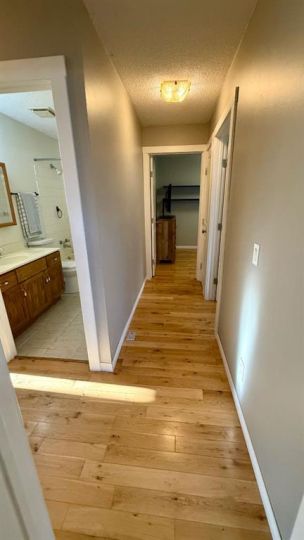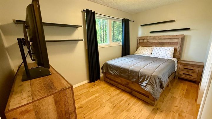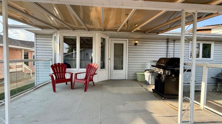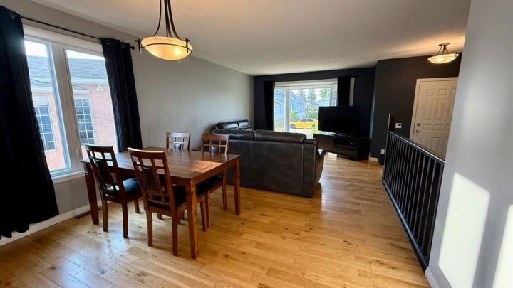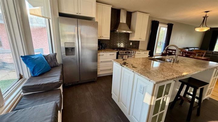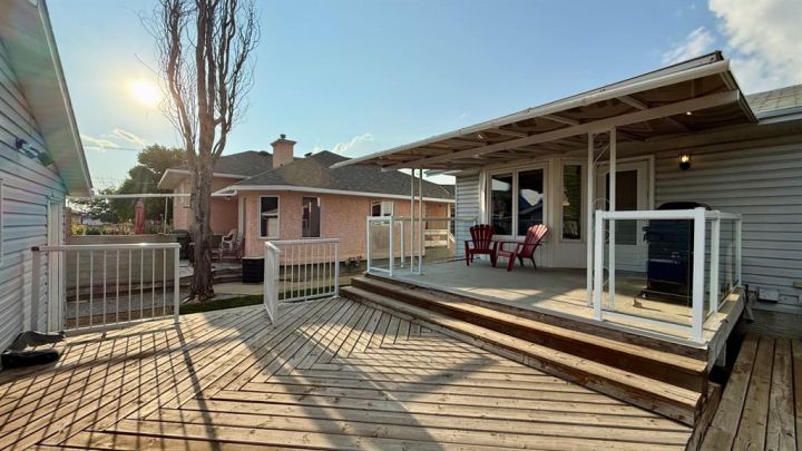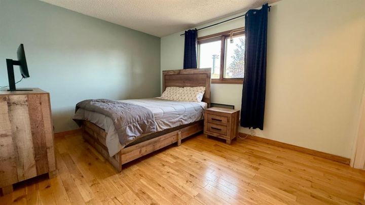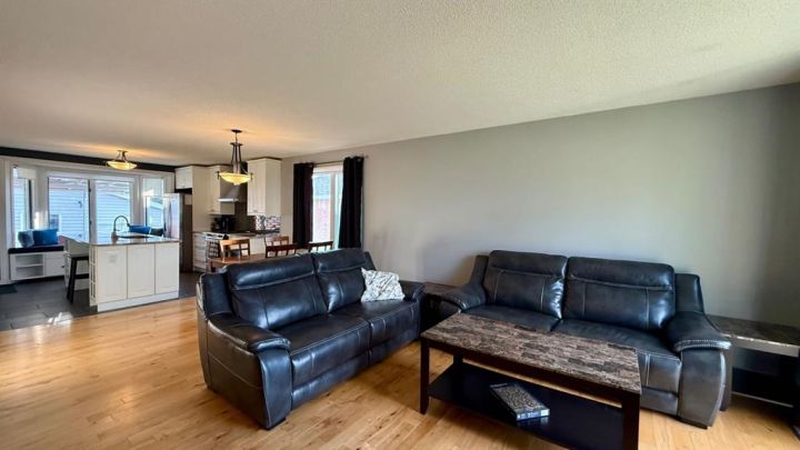 This spacious 4 bedroom, 3 bathroom home offers a great layout and is ideally located close to the pool, skating rink, rec centre and from JCC K-12 school. The beautiful kitchen has a gas stove, large island and plenty of cupboard space. Highlights include hardwood flooring, central air conditioning, central vacuum and a projector with surround sound in the basement. The large primary suite includes an ensuite with a shower. Outdoors, enjoy the huge two-tiered deck with a built-in fireplace. A double detached garage with two vehicle doors provides great storage or parking. As an added bonus the home offers quick possession and the possibility of being sold completely furnished!