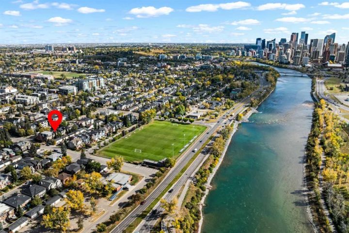 OPEN HOUSE SUNDAY OCTOBER 5th 2-4:30**PLEASE VIEW THE DRONE VIDEO** NOTE THE LARGER LOT (33’x125’). TRIPLE DETACHED GARAGE. Beautifully spacious and freshly painted family home with 3285 sq. ft. of living space and over $90,000.00 in upgrades! Located on a quiet, wide tree-lined street in the heart of West Hillhurst! Tons of natural light through the large windows and glass block features. Gleaming Brazilian Cherry floors on the main floor. The large gourmet kitchen elegantly blends the gorgeous Cherry cabinetry with new stainless-steel appliances. Chefs will love the timeless granite counters and five burner gas stove. Large 6’9” granite island with eating bar and built-in wine storage. The Den makes a great home office. The large front formal dining room is perfect for family and entertaining. The spacious and inviting rear view living room with elegant black slate gas fireplace features large south windows and French doors opening onto the south facing wood deck. Wide well-lit stairs to an exceptionally well-designed upper level. An expansive primary bedroom retreat with Cherry wood built-ins, three-way gas fireplace, vaulted ceiling and two large walk-in closets. A dream spa-inspired five-piece ensuite bathroom with separate granite vanities, elegant deep soaker tub and oversize tile shower. Two additional upper bedrooms feature vaulted ceilings, and each has its own four-piece bathroom! Convenient upper laundry includes the new upgraded washer and dryer. Spacious, open design fully developed lower-level features five egress windows and walnut engineered hardwood floors. The expansive family/recreation area features an elegant corner gas fireplace. Large fourth bedroom and spacious three-piece bathroom with egress window and oversize walk-in shower make this perfect for guests or a nanny. A sought-after triple detached insulated, drywalled and heated garage. A wonderful south private backyard with 25’ freshly painted wood deck and paver stone patio with beautiful perennial garden. This location is so well connected that commuting to work, school and daily errands is easy. SAIT, U of C, Foothills Hospital and the inner core are just 10 minutes away. Outdoor enthusiasts will love this fabulous location nestled only two blocks from the banks of the Bow River Pathways. This premier location is the perfect place to call home.