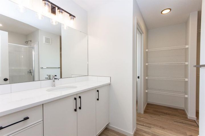 Be the first owner of this beautiful brand new build by Laebon Homes in Creekside! Designed with a family in mind, the Harlow is a spacious 1860 sq ft plan offering a wide open living space with vinyl plank flooring, large windows, and modern finishes throughout. The nicely appointed kitchen offers raised cabinetry, stainless steel appliances, quartz countertops, a large island with eating bar, and a walk in pantry. The living area is bright and spacious, and the adjacent dining area offers access to the back deck through large sliding patio doors. Upstairs you'll find a spacious bonus room, two nicely sized kids rooms each with their own walk in closet, a shared 4 pce bathroom, and conveniently located laundry. The large primary suite offers a 3 pce ensuite with walk in shower, private water closet, and a spacious walk in closet. The attached garage is insulated, drywalled, and taped. If you need more space, the builder can complete the basement development for you, and allowances can also be provided for blinds and a washer and dryer. 1 year builder warranty and 10 year Alberta New Home Warranty are included. Taxes have yet to be assessed, and GST is already included in the price. Immediate possession is available!