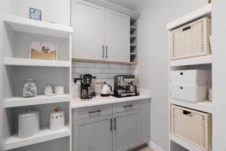- Breakfast Bar, Built-in Features, Central Vacuum, Closet Organizers, High Ceilings, Jetted Tub, Kitchen Island, Open Floorplan, Pantry, Quartz Counters, Storage, Walk-In Closet(s), Wet Bar, Wired for Sound