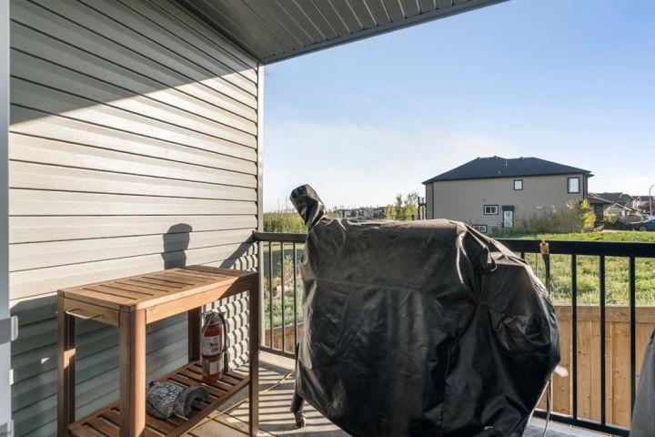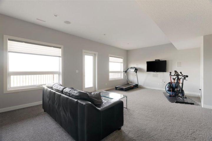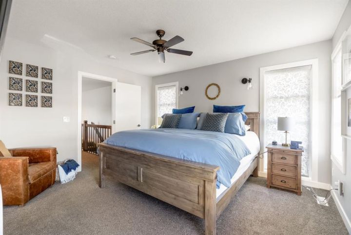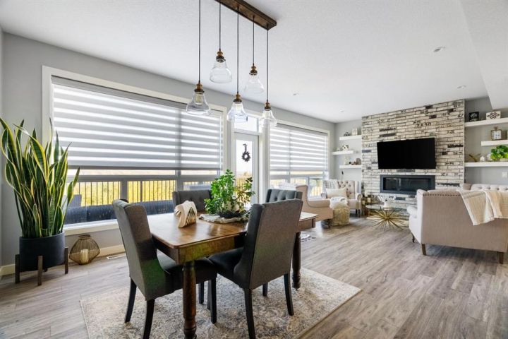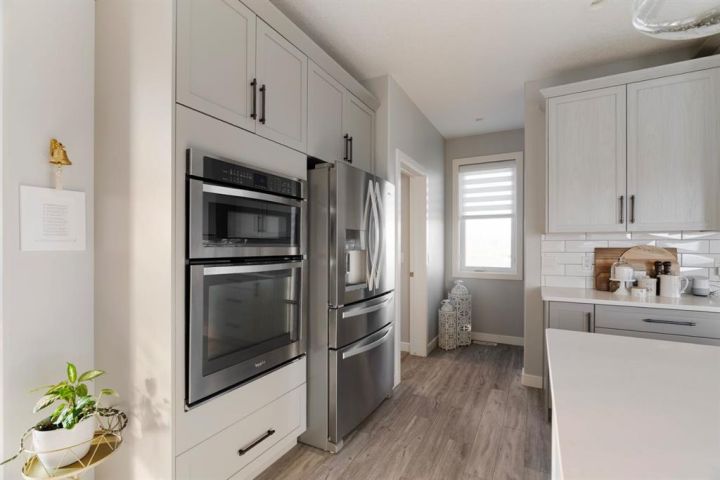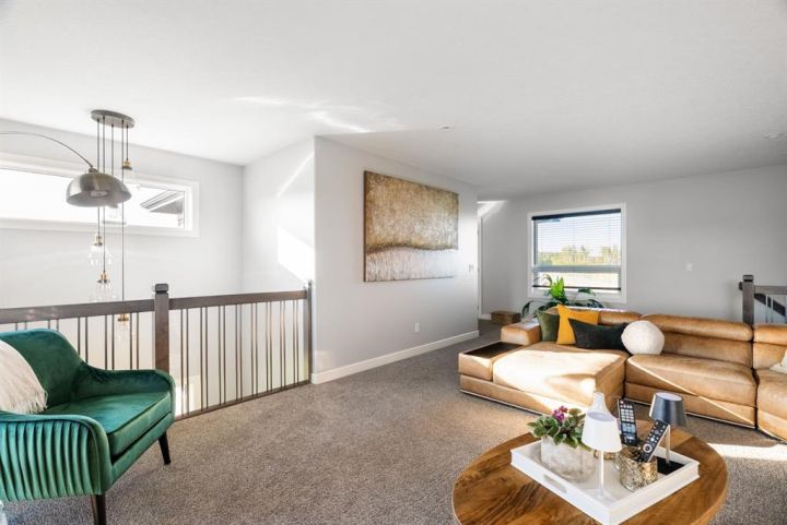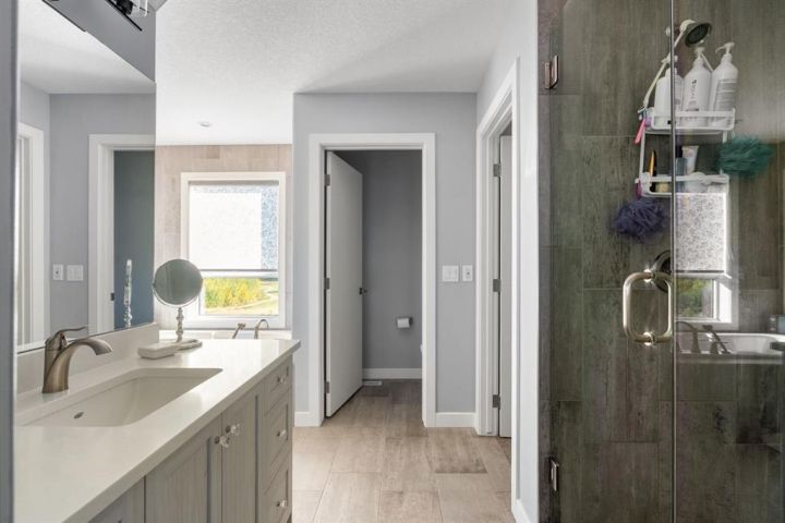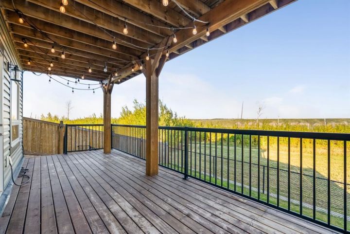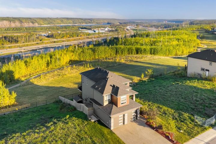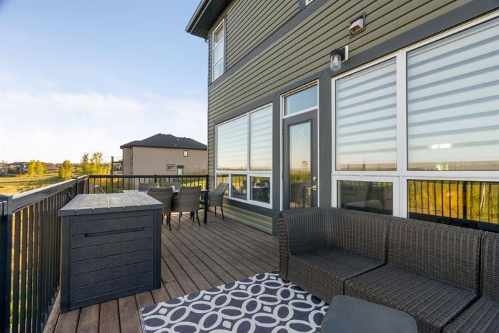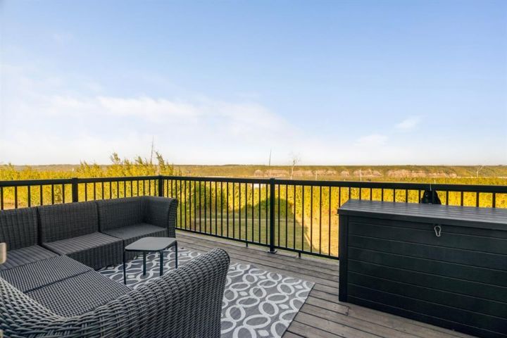 Welcome to the Stunning 2018 Oil Barons Dream Home – Loaded with Luxury! This true custom-built home is a rare opportunity and is move-in ready. Thoughtfully designed to impress, with high-end finishes and smart layout. From the moment you step through the front door, you’re welcomed into a grand entrance featuring vaulted ceilings and an open, airy feel. A convenient walk-through mudroom connects directly to your oversized 26x25 heated garage, which also includes a unique drive-through bay offering easy access to the backyard — perfect for toys, trailers, or extra parking flexibility. The main floor is designed to shine, with large windows flooding the space with natural light and offering seamless flow between kitchen, dining, and living areas. The kitchen is a true showstopper, featuring a soft two-tone cabinetry design, crisp white quartz countertops, oversized subway tile backsplash, and high-end stainless steel appliances — including a wall oven, built-in microwave, and cooktop. A massive eat-up island provides the ideal gathering space, while a spacious butler’s pantry adds bonus storage and prep space. Just off the kitchen, a dedicated BBQ patio makes entertaining effortless. Your cozy living space offer a natural gas fireplace with floor-to-ceiling tile add to the main level elegant vibe. Step out onto the large upper balcony where you’ll enjoy river valley views and stunning sunrises. Upstairs, the home continues to impress with a spacious bonus room at the top of the stairs — perfect for movie nights, playtime, or a casual lounge. Two generously sized bedrooms share a dedicated flex room in between, offering a great space for homework, games, or a reading nook. The primary suite offers a massive walk-in closet comes complete with custom built-in shelving and drawers for organization. The spa-inspired ensuite is your own private retreat, featuring dual vanities, a large glass walk-in shower, and a deep jacuzzi tub perfectly positioned to overlook the peaceful treeline. For added convenience, the laundry room is located just steps from the primary suite. The walk-out basement is an entertainer’s dream. Fully developed and thoughtfully laid out, it includes a stylish wet bar with a beverage fridge and plenty of room for games, oversized media/family room. Large windows bring in natural light, and the walk-out access leads to a covered lower deck and the beautifully maintained backyard. The fourth bedroom on this level is perfect for guests. To top it all off, the home is outfitted with Heilight permanent LED outdoor lighting system. From top to bottom, this home blends comfort, functionality, and true wow-factor in every room! Schedule your private showing today, or stop the Sunday Sept. 21 from 1-3 to see what this property has to offer!