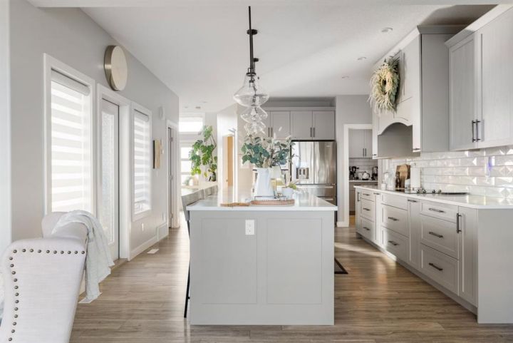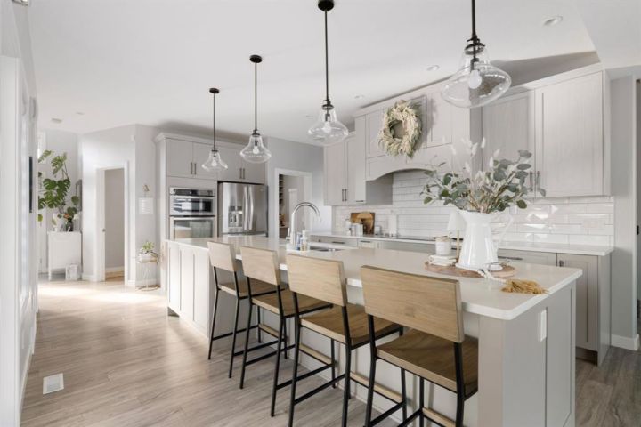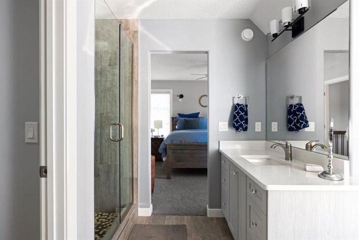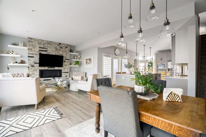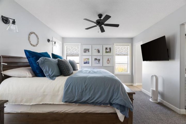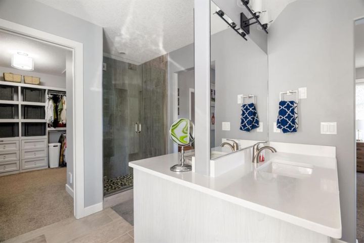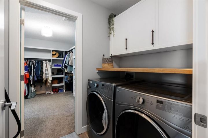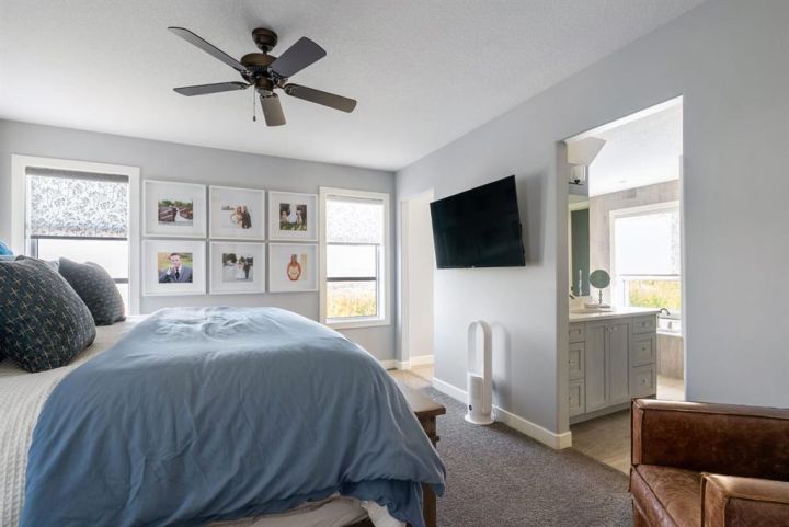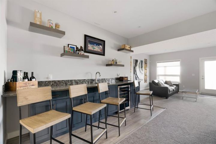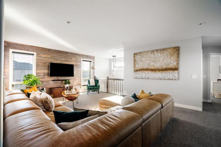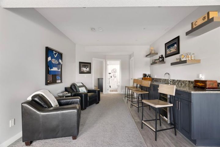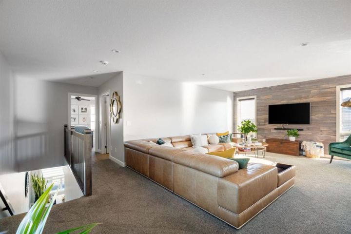 Welcome to the Stunning 2018 Oil Barons Dream Home – Loaded with Luxury! This true custom-built home is a rare opportunity and is move-in ready. Thoughtfully designed to impress, with high-end finishes and smart layout. From the moment you step through the front door, you’re welcomed into a grand entrance featuring vaulted ceilings and an open, airy feel. A convenient walk-through mudroom connects directly to your oversized 26x25 heated garage, which also includes a unique drive-through bay offering easy access to the backyard — perfect for toys, trailers, or extra parking flexibility. The main floor is designed to shine, with large windows flooding the space with natural light and offering seamless flow between kitchen, dining, and living areas. The kitchen is a true showstopper, featuring a soft two-tone cabinetry design, crisp white quartz countertops, oversized subway tile backsplash, and high-end stainless steel appliances — including a wall oven, built-in microwave, and cooktop. A massive eat-up island provides the ideal gathering space, while a spacious butler’s pantry adds bonus storage and prep space. Just off the kitchen, a dedicated BBQ patio makes entertaining effortless. Your cozy living space offer a natural gas fireplace with floor-to-ceiling tile add to the main level elegant vibe. Step out onto the large upper balcony where you’ll enjoy river valley views and stunning sunrises. Upstairs, the home continues to impress with a spacious bonus room at the top of the stairs — perfect for movie nights, playtime, or a casual lounge. Two generously sized bedrooms share a dedicated flex room in between, offering a great space for homework, games, or a reading nook. The primary suite offers a massive walk-in closet comes complete with custom built-in shelving and drawers for organization. The spa-inspired ensuite is your own private retreat, featuring dual vanities, a large glass walk-in shower, and a deep jacuzzi tub perfectly positioned to overlook the peaceful treeline. For added convenience, the laundry room is located just steps from the primary suite. The walk-out basement is an entertainer’s dream. Fully developed and thoughtfully laid out, it includes a stylish wet bar with a beverage fridge and plenty of room for games, oversized media/family room. Large windows bring in natural light, and the walk-out access leads to a covered lower deck and the beautifully maintained backyard. The fourth bedroom on this level is perfect for guests. To top it all off, the home is outfitted with Heilight permanent LED outdoor lighting system. From top to bottom, this home blends comfort, functionality, and true wow-factor in every room! Schedule your private showing today, or stop the Sunday Sept. 21 from 1-3 to see what this property has to offer!