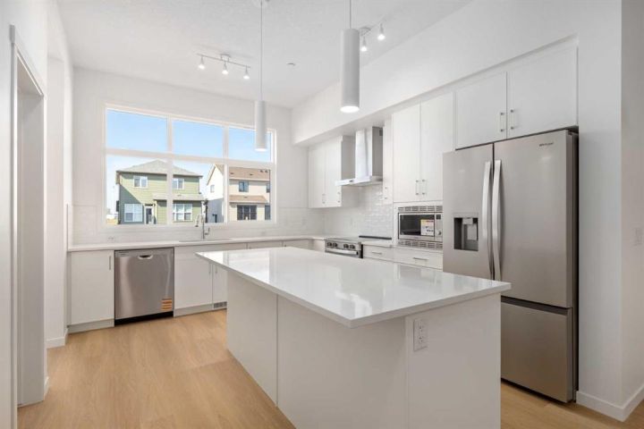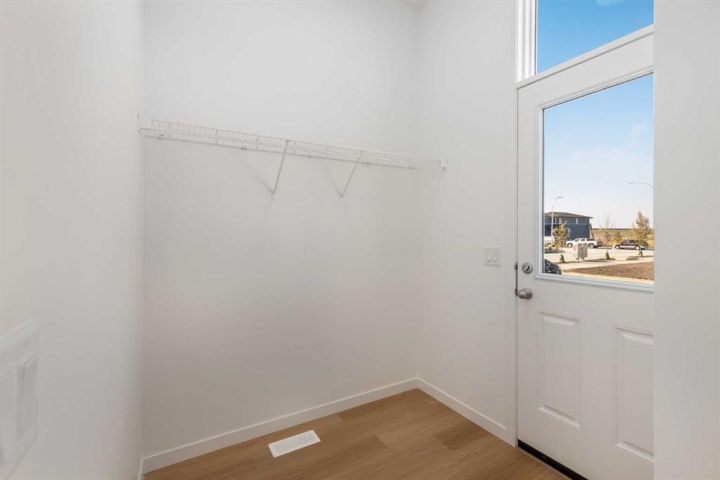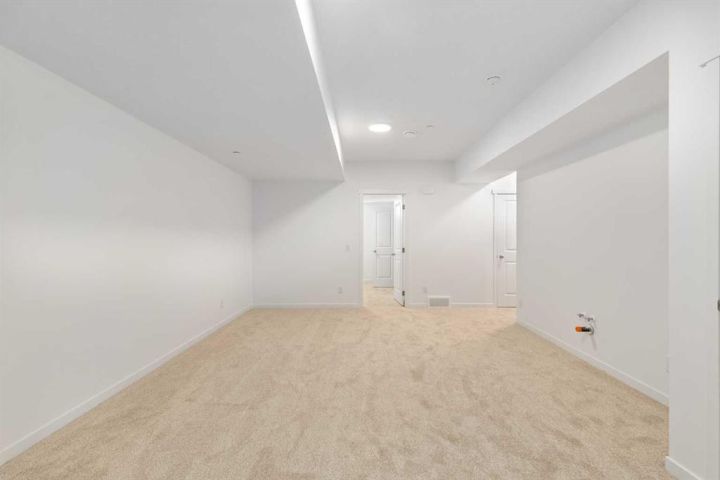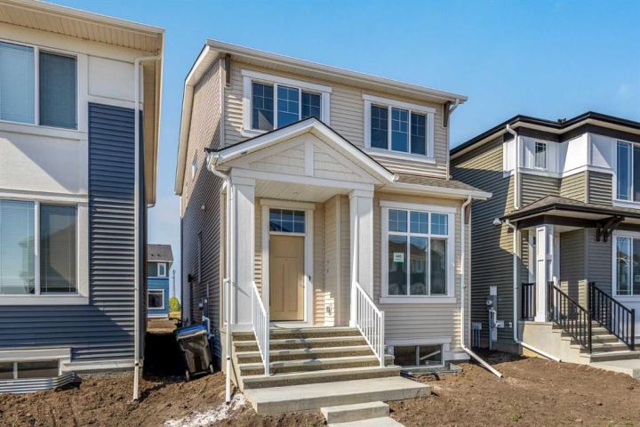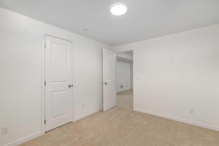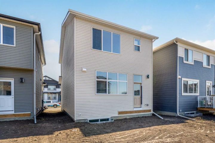 Welcome to this brand-new “Lyall” floor plan, a beautifully crafted home that blends modern style with functional design. From the moment you step inside, you’re greeted by soaring 10’ ceilings and warm luxury vinyl plank flooring that flows throughout the main level. At the front, a versatile flex room offers the perfect space for a home office, reading nook, or play area. Moving toward the back, the open-concept living space unfolds with a bright and inviting living room, complete with an elegant electric fireplace, an oversized dining area ideal for family gatherings, and a stunning kitchen that serves as the heart of the home. The kitchen is a true showpiece, featuring timeless white cabinetry extended to the ceiling, quartz countertops, a hammered white subway tile backsplash that wraps around the sleek range hoodfan, stainless steel appliances, and a spacious island—perfect for both everyday meals and entertaining. Upstairs, a central loft provides a flexible second living space and creates separation between the primary suite and the additional bedrooms. The staircase is highlighted with modern black spindle railing, adding a contemporary touch to the home’s design. The spacious primary retreat includes a walk-in closet and a spa-inspired 4-piece ensuite with dual sinks. Two more bedrooms, a full 4-piece bathroom, and a convenient upper laundry room complete this level. The fully finished basement adds incredible value with two additional bedrooms, a large rec room, and a 4-piece bathroom. With a separate entrance, it’s roughed in for a wet bar and extra laundry. Located in the growing southeast community of Hotchkiss, this home offers more than just a beautiful interior. Residents here enjoy a family-friendly setting with scenic pathways, green spaces, and quick access to major routes like Stoney Trail and Deerfoot. You’re also just minutes away from the amenities of Seton, including restaurants, shopping, the South Health Campus, and recreation options. This is your opportunity to own a brand-new, move-in ready home in one of Calgary’s up-and-coming communities—complete with a finished basement and high-end upgrades that make it truly stand out.