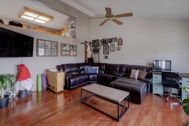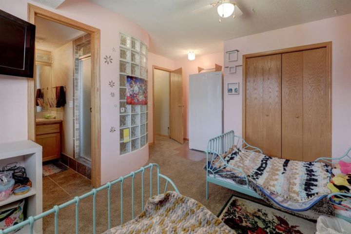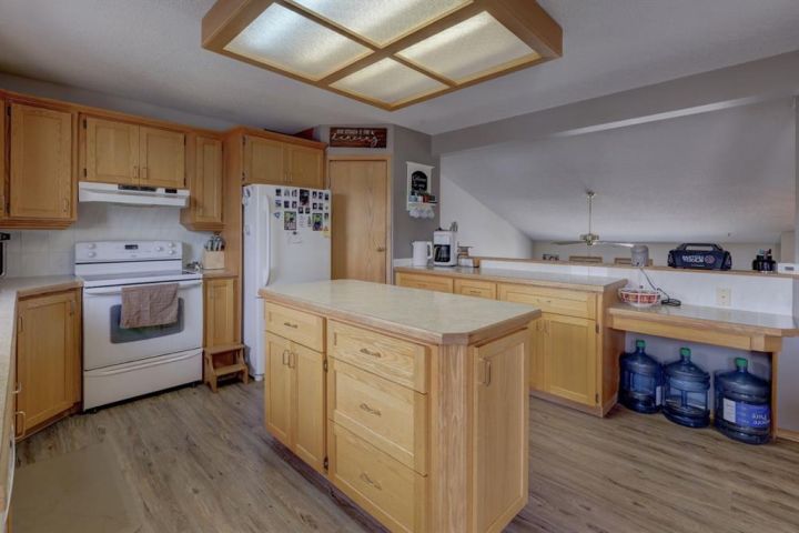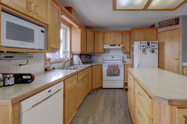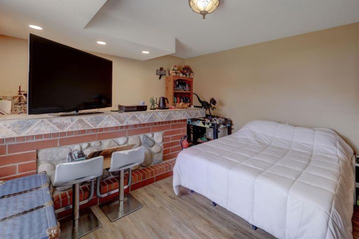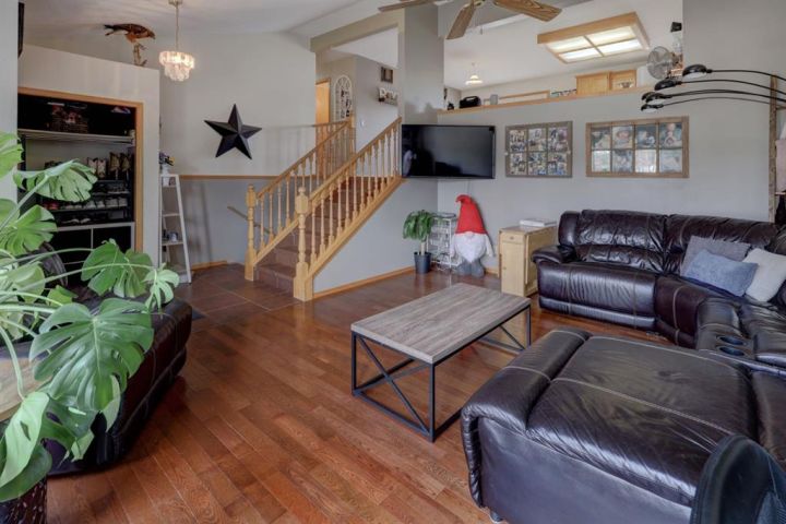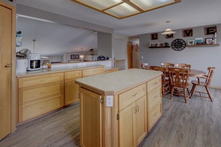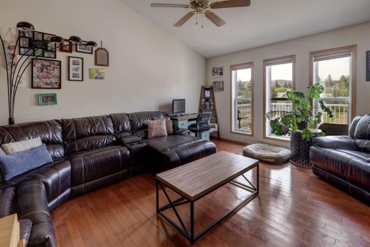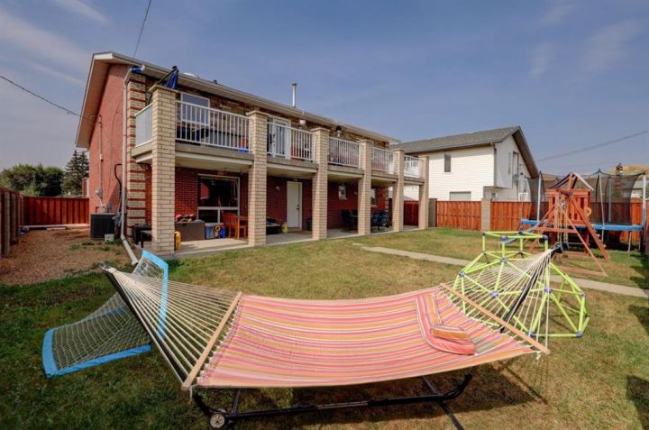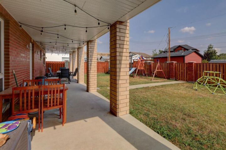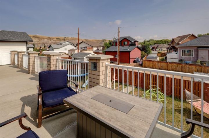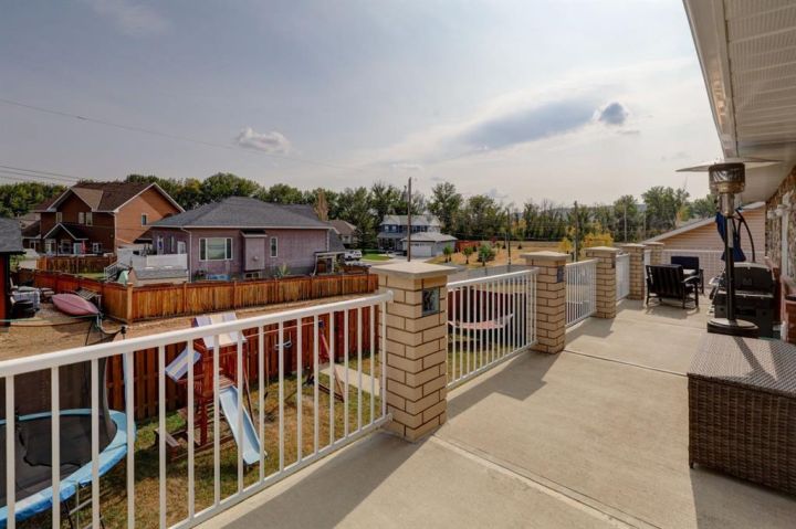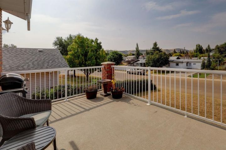 A house that will stand the test of time! Beginning with the maintenance free, stone and brick exterior & the concrete deck and stairs, you can appreciate the craftsmanship that built this property! The split level design offers you a stunning main floor great room with vaulted ceilings, on the upper level you'll find a spacious kitchen that opens onto a huge deck that features a natural gas line for your BBQ or fireplace. Look for the details again- the pillars have lights in them. Down the hall, you'll find two comfortable sized bedrooms, a 4 pc bathroom, and the primary bedroom with a 3 pc ensuite. Downstairs, is a rec room with bar area, laundry, and another bedroom with an ensuite as well. Not found often in Drumheller, is a walk out to the backyard from the lower level but there is one in this home! The backyard offers privacy and also RV parking. There have been many updates over the past few years. This is a one of a kind home, please don't delay and book your private viewing today!