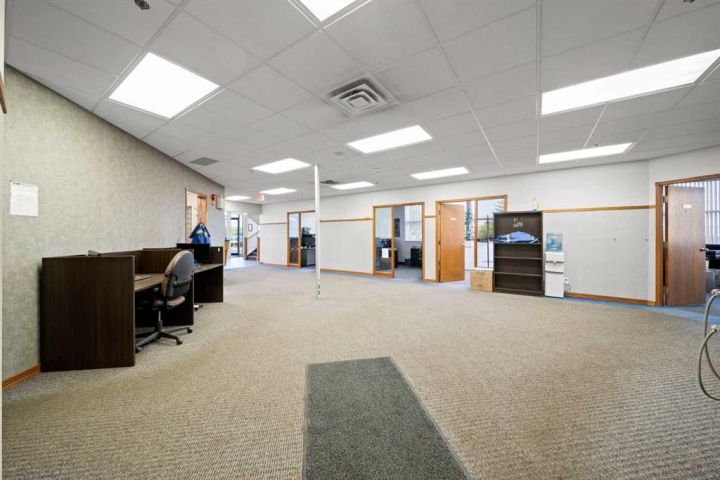 Located in Edgar Industrial Park, this well-maintained industrial property with highway frontage is available for lease. The building is 22,557.9 SF (16,993 SF footprint) and features 11,742.3 SF of office space over 2 floors (6,177.4 SF main floor and 5,564.9 second floor) including a large reception area, 18 private offices, washrooms on both floors, a parts/dispatch room, a boardroom, a staff lunchroom, and storage. The 10,815.6 SF shop includes 5 drive-thru bays with (10) 16' x 16' overhead doors. Bay 3 has (1) 12- Ton Overhead Crane, and Bay 5 has a Man Trench. The 4.5 acre property is fully paved with ample parking and yard space available. Highway frontage offers excellent visibility from Highway 2 with easy access to both Highway 2 and Highway 11A. Additional Rent is $3.72 per square foot for the 2025 budget year. This property is also available for sale.