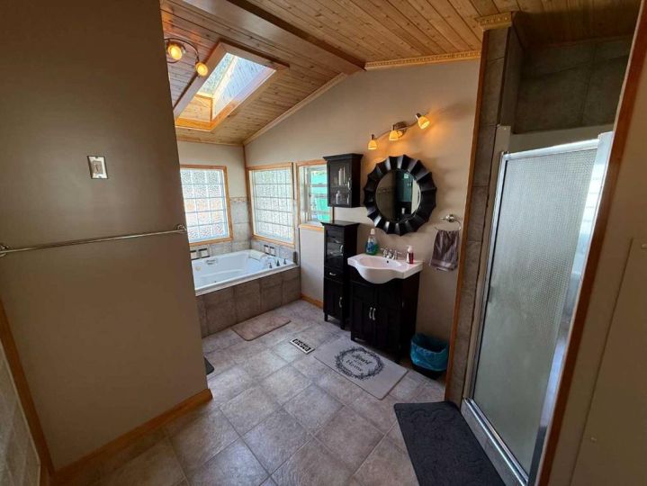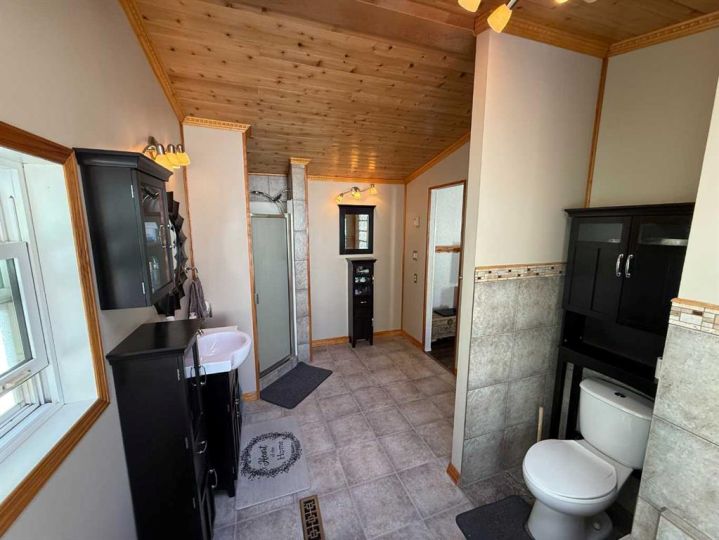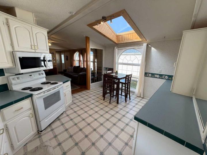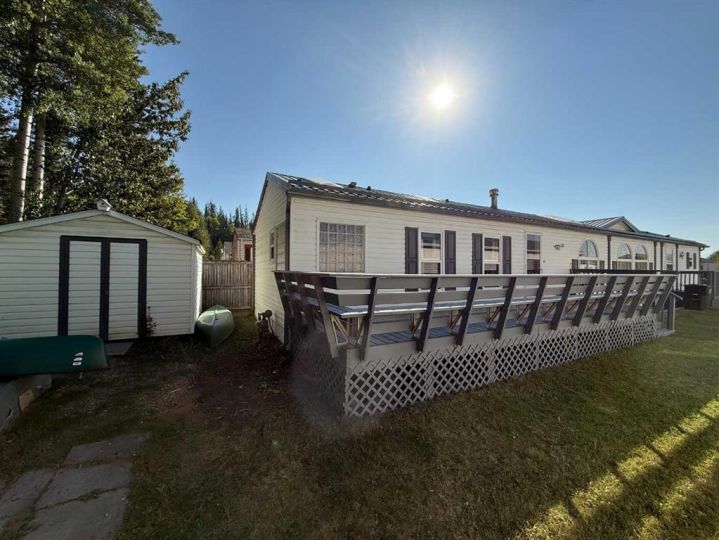 Looking to break into the Hinton market? This affordable and move-in-ready mobile home in the desirable Hardisty neighborhood could be just what you're looking for! Located at 250 Skogg Avenue, this home offers 3 bedrooms and 2 full 4-piece bathrooms, perfect for families or anyone needing extra space. Step into a bright, open-concept main living area that has been lovingly maintained. The layout is functional and family-friendly: the two front bedrooms share a 4-piece main bathroom, while the spacious primary suite is located at the back of the home for added privacy. You'll love the spa-like ensuite, featuring a double soaker tub—the perfect place to relax at the end of the day. Additional features include a durable tin roof, freshly repainted decks, and a cozy, private backyard complete with a large storage shed. Pride of ownership is evident throughout this well-kept property.