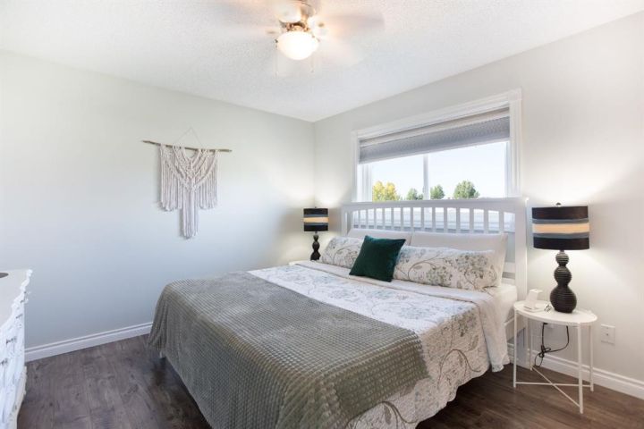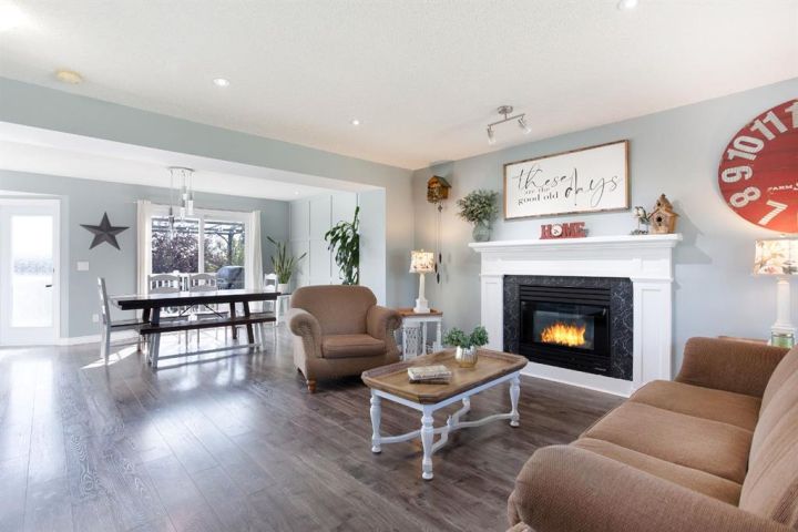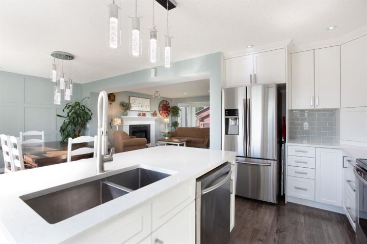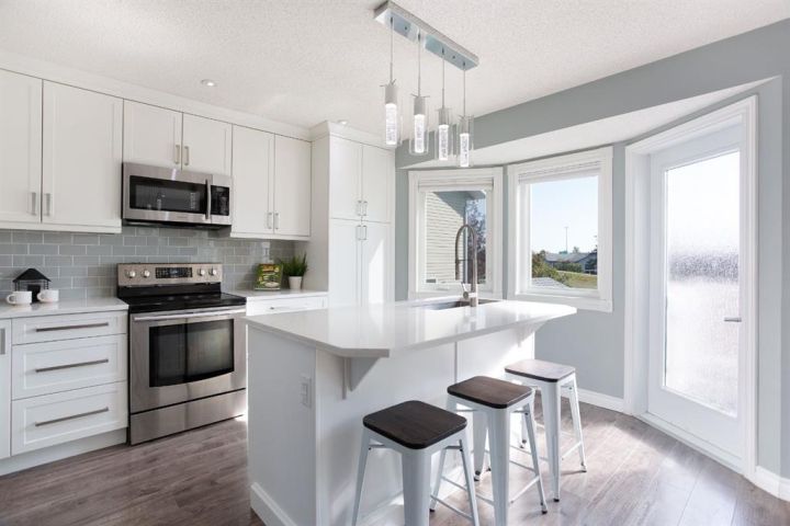 Welcome to this beautifully updated 2-storey home, ideally located in the highly sought-after community of Edgewater and backing directly onto peaceful green space. Meticulously maintained and thoughtfully upgraded, this home features central air conditioning, a newer high-efficiency furnace, hot water tank, water softener, and a durable metal roof for long-term peace of mind. The main level offers a bright and functional layout with a welcoming living room, spacious dining area, a fully renovated kitchen with modern finishes, and a convenient powder room. Upstairs, you’ll find two generously sized secondary bedrooms, an updated main bathroom, and a spacious primary suite with a private ensuite. The fully finished lower level provides added versatility with an additional bedroom, a large family room, laundry area, and plenty of storage. Enjoy a private backyard with no rear neighbors—perfect for relaxing or entertaining. Located within walking distance to schools, parks, pathways, places of worship, Genesis Place, and Airdrie’s brand-new public library, this home offers the perfect blend of comfort, functionality, and location.