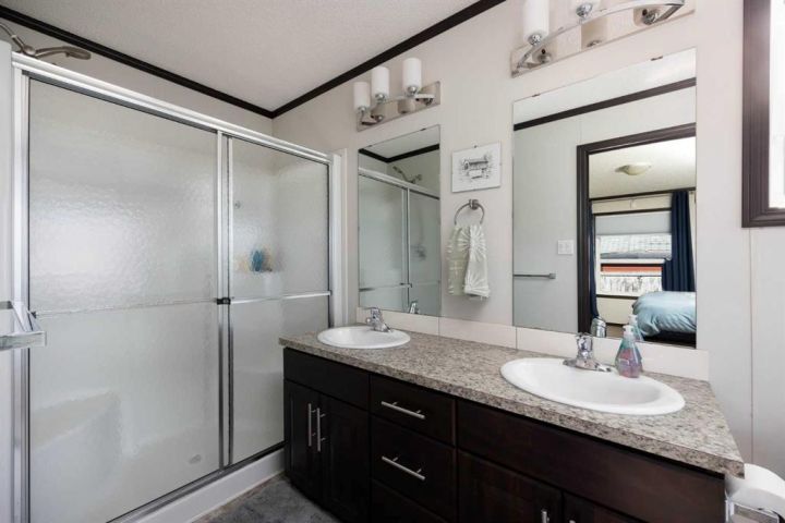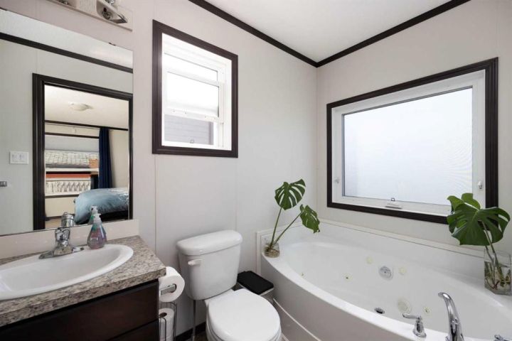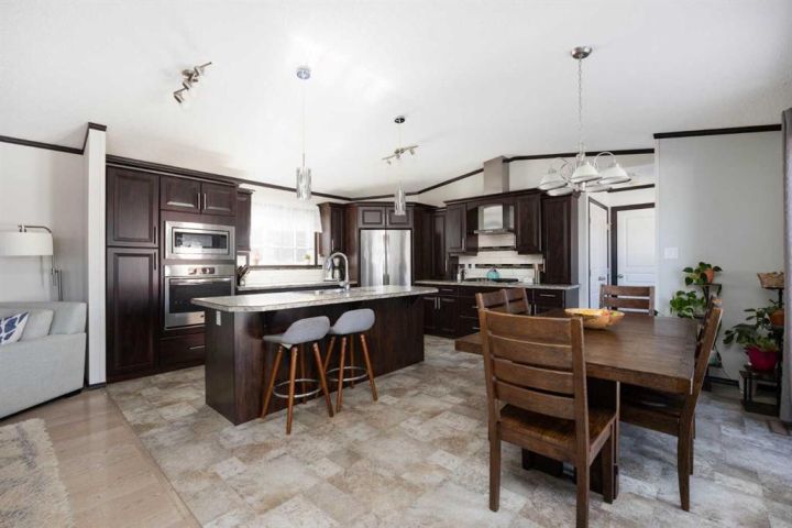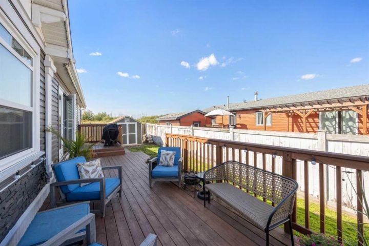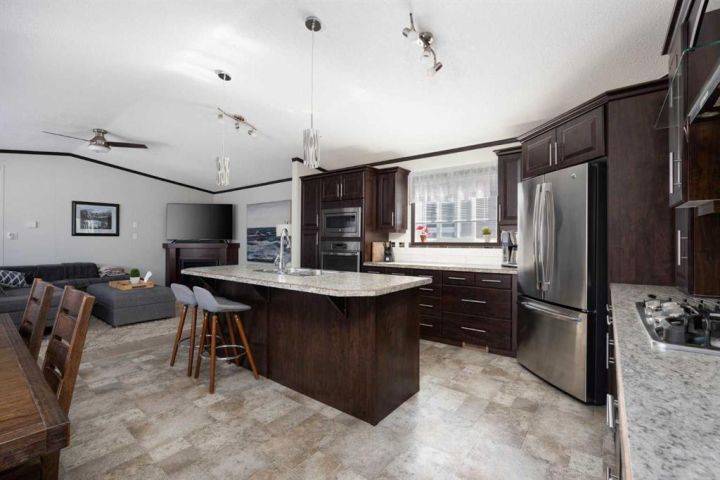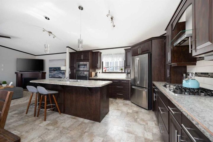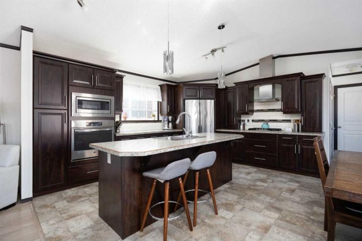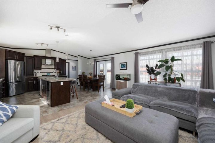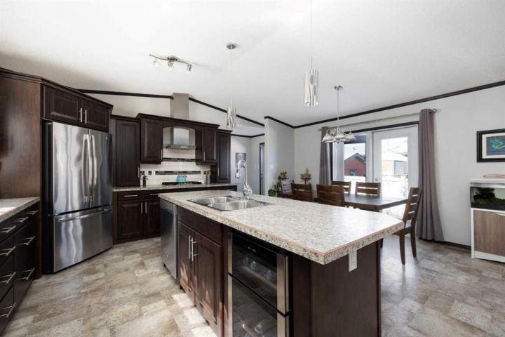 Forget everything you think you know about mobile homes, this one is about to blow your mind! Welcome to Timberlea, where family living meets a floor plan that will make you question everything you thought you knew about mobile homes. Built in 2016, this one is in a class of its own. Step inside and prepare yourself for the moment we like to call the “THIS is a mobile home?!” moment. The living room, dining room, and kitchen don’t so much flow as they explode into an airy, wide-open concept filled with natural light. It’s one of the most unique layouts you’ll ever see, and it makes entertaining, family dinners, or simply stretching out with a good book feel effortless. The primary bedroom is more of a retreat than a room. Think big walk-in closet, spa-like 5-piece ensuite, and plenty of space to actually exhale at the end of a long day. Two more bedrooms and a second full bathroom keep everyone comfortable, whether you’ve got kids, guests, or a need for that home office you keep promising yourself. Storage? Oh, it’s got it. This home proves that “mobile” doesn’t mean “minimal.” And the perks don’t stop at the front door. The fenced yard gives you privacy, the shed handles the overflow, and backing onto green space means your morning coffee view is pure serenity instead of someone else’s siding. It’s tucked into a quiet, family-friendly neighbourhood in Timberlea, which means you’ll have that sense of community and calm without giving up the convenience of being close to schools, parks, and all the everyday essentials. Imagine watching the northern lights with the least amount of light pollution in the city. What the sellers love MOST about this home is how quiet it is. And yes this is a bareland condo and the fees are the lowest in the city at $160/m. Be sure to check out the video, 360 tour, and DETAILED floor plans in the photos so you can see every sink, shower, and counter in the home. Are you ready to say yes to this address? Please give lots of notice for showings as the sellers need to take the dogs out for showings.