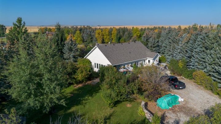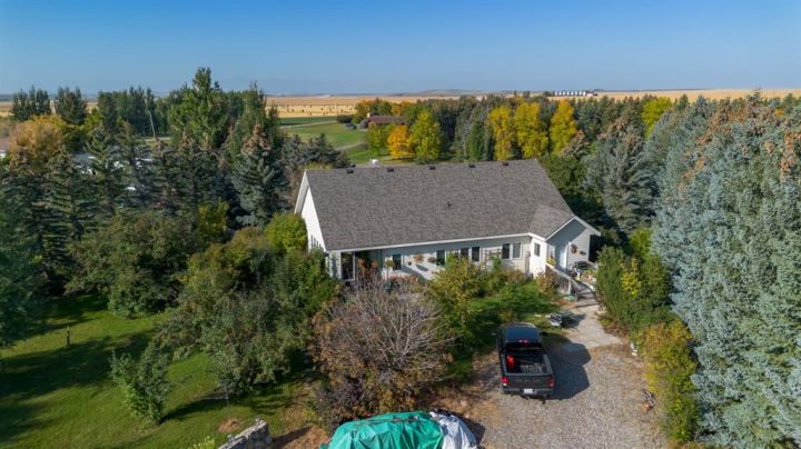Welcome to Glenwood, AB! A quiet, family-friendly community surrounded by beautiful views and just a short drive to Waterton Lakes National Park, Cardston, and other nearby amenities. This spacious 2,067 sq. ft. single-level home sits on two one-acre lots (both included in the sale), giving you the rare opportunity to enjoy small-town living with plenty of space both inside and out. Step inside this charming home and you’ll find a thoughtfully designed layout with 2 bedrooms, 1.5 bathrooms, an office (which could also be a third bedroom), and a bright sunroom, perfect for relaxing or working from home. The open-concept kitchen and dining area flows seamlessly into the oversized living room, where tall ceilings and large windows create a warm and inviting atmosphere. Classic hardwood floors and a cozy wood-burning stove add timeless character. Practical updates include a newer roof, a well-serviced furnace, and a hot water tank that’s only 5 years old. Outside, fresh prairie air set the stage for country living, while two acres of land give you endless possibilities—gardening, RV parking, outdoor projects, or simply enjoying your own space. Whether you’re looking for a peaceful retreat, a welcoming place to raise a family, or a property with room to grow, this Glenwood acreage offers a lifestyle that’s hard to find! Call you favourite REALTOR® today to book your showing!