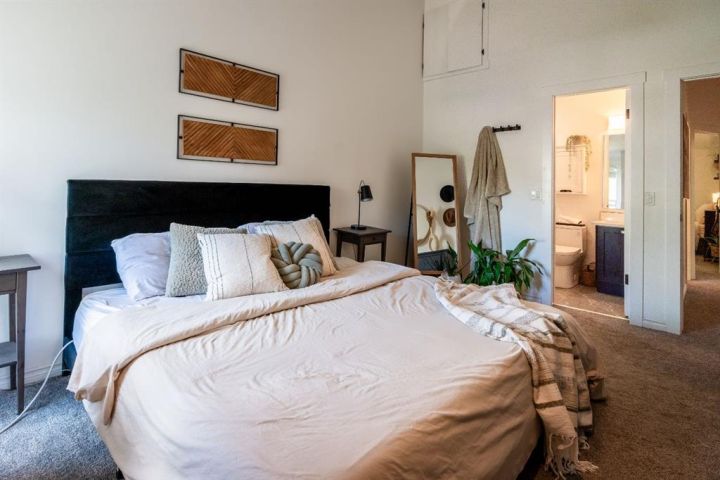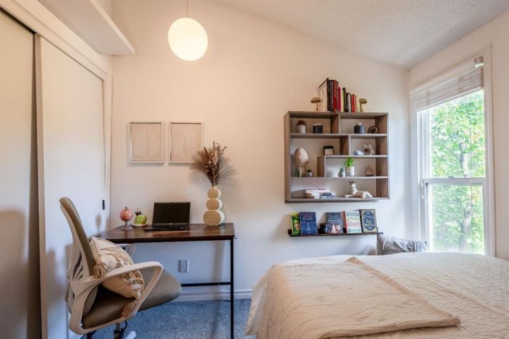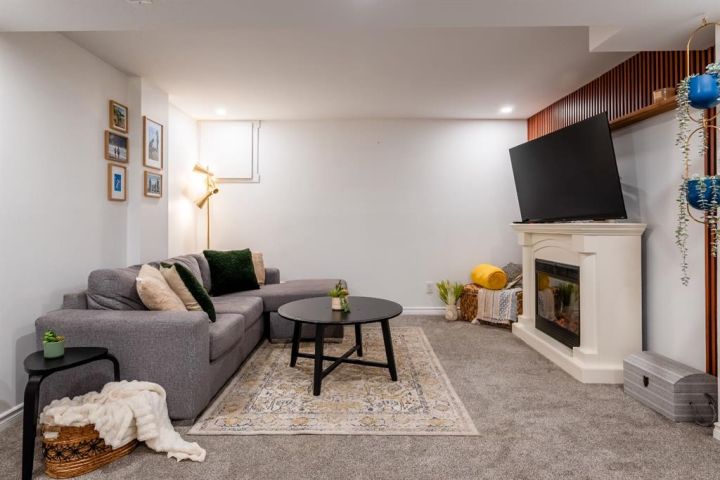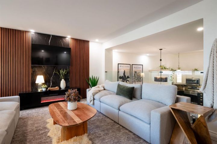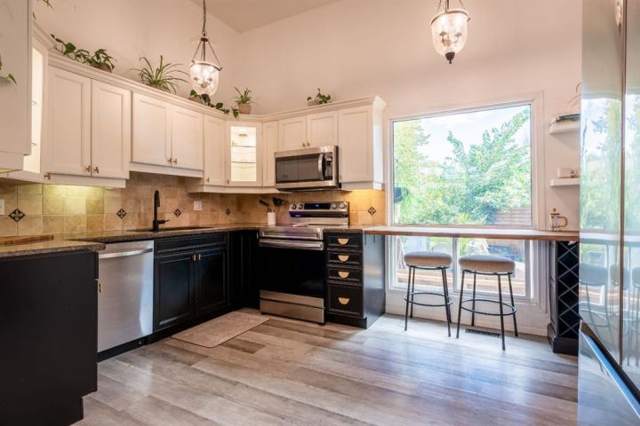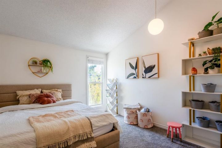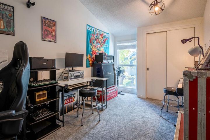 4 bedroom modern, move-in ready townhome with soaring vaulted ceilings and an open-concept main floor designed for luxury living and effortless entertaining. The sleek kitchen features stainless steel appliances, granite countertop and a breakfast bar overlooking a private, tree-lined patio—your own private outdoor retreat. The spacious living room boasts a striking feature wall, expansive windows with Hunter Douglas blinds. Upstairs is new plush carpet highlighted by a dramatic 75” ceiling fan. Each of the 4 bedrooms offers vaulted ceilings, while the primary suite impresses with a 3-piece ensuite featuring a custom glass shower and bold black fixtures. A bright 4-piece main bath with white tile, a finished basement family room, and a single attached deep garage add comfort and convenience. Perfectly located just 5 minutes from Southland Leisure Centre and 10 minutes from Fish Creek Provincial Park, with quick access to major routes, Anderson LRT, and Rockyview Hospital. Braeside Elementary, John Ware Junior High, and St. Benedict Schools are within walking distance. This townhome truly combines style, comfort, and an unbeatable location. Home Inspection & Condo Doc Review completed Feb 2024 and available.