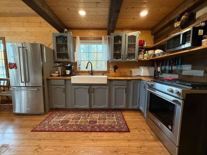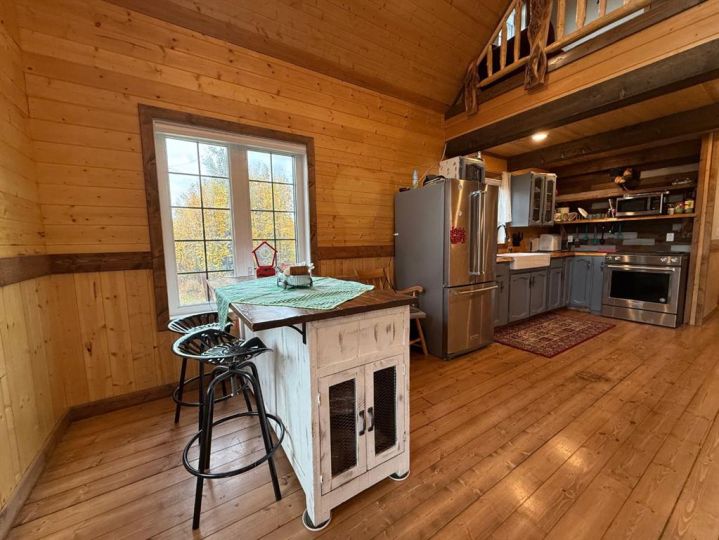 In the community of Joussard, Alberta, on the shores of Lesser Slave Lake, this charming 7-year-old story-and-a-half cottage offers a unique blend of modern comfort and rustic character. The 1,200 square foot main home features a welcoming open-concept layout where the living room, kitchen, and dining area are unified by a cozy wood-burning stove; perfect for chilly evenings. The rustic kitchen is equipped with stainless steel appliances, including a gas stove, and offers the convenience of main-floor laundry tucked away in a closet. The main floor hosts one comfortable bedroom and a full 3-piece bathroom, while a custom-crafted diamond willow railing leads you upstairs to a private loft. This secluded primary bedroom retreat features its own 3-piece ensuite bathroom, complete with a walk-in mobility shower. The property’s exceptional value is amplified by a massive 32' x 38' heated detached garage and a fully fenced, large yard. Above the garage, a versatile suite complete with a bathroom and balcony offers incredible potential for guests, family, or rental income. This is a truly special property that combines craftsmanship, functionality, and a highly sought-after lakeside location. Call today to book your viewing.