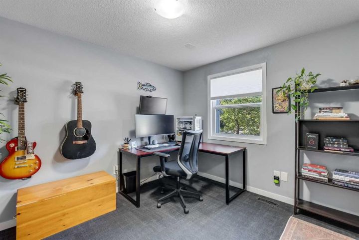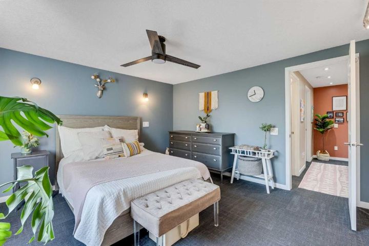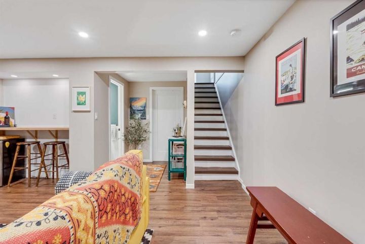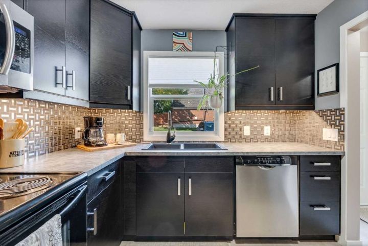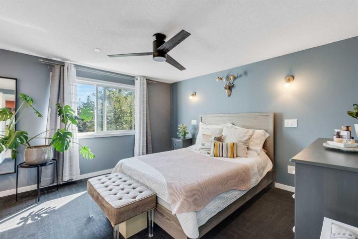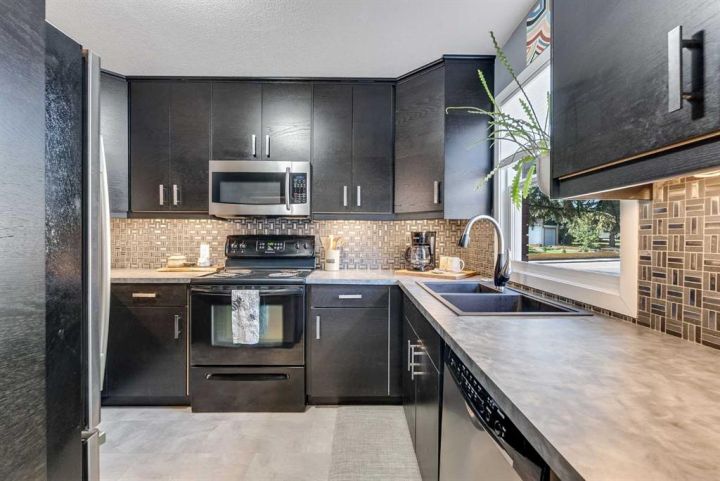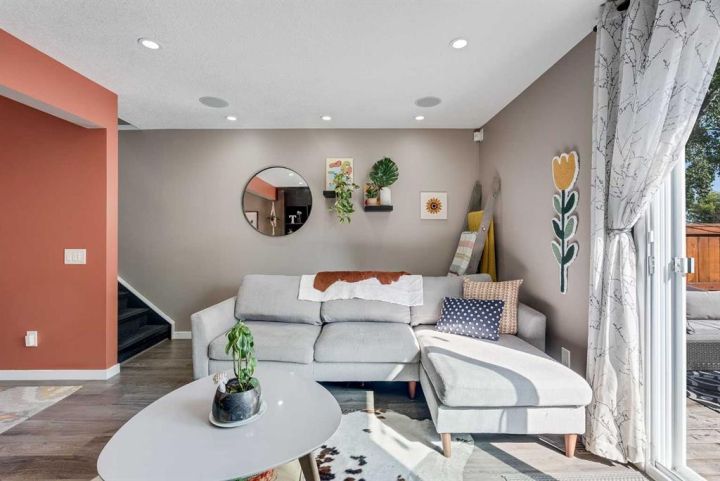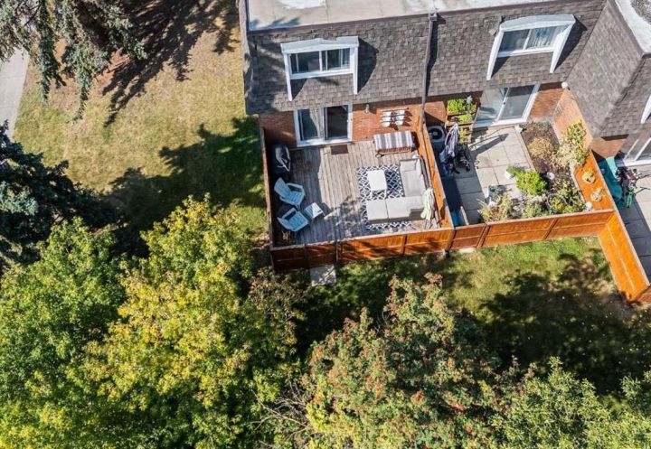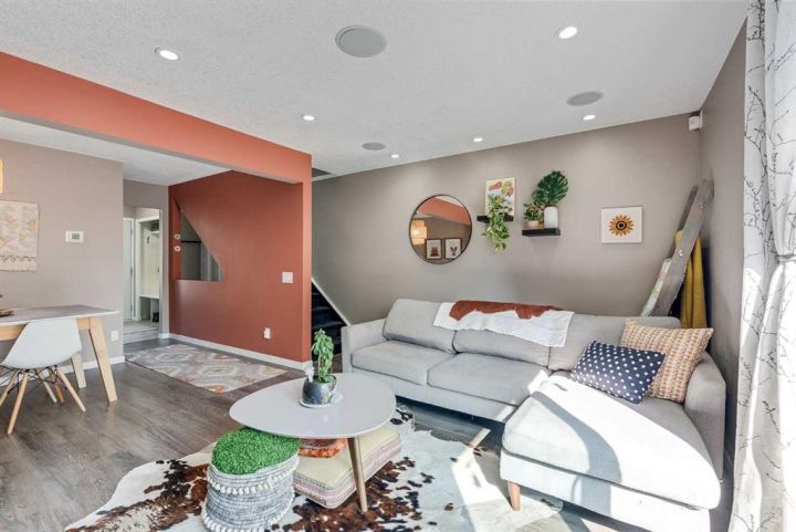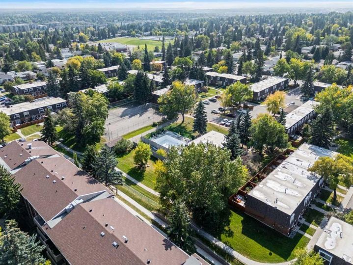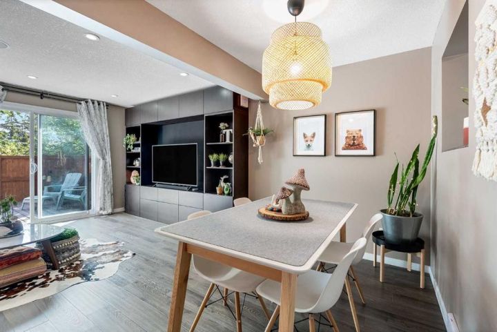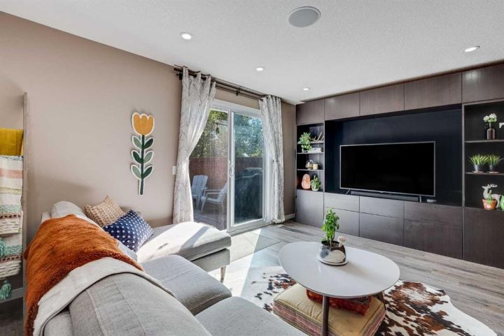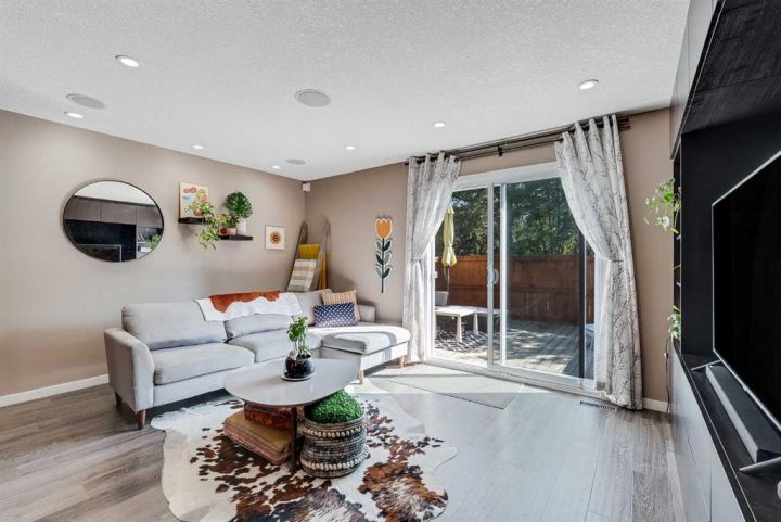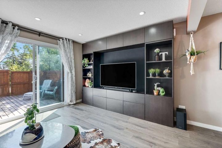 Welcome to your new home in the heart of Canyon Meadows! This stylish end-unit townhouse combines modern updates with everyday comfort. Extensive renovations over the years include upgraded insulation, plumbing, wiring, networking, lighting, and ceiling speakers throughout the home - delivering true turn-key living. Inside, the functional entryway with custom cubbies, hooks, and a bench makes day-to-day life effortless. The kitchen impresses with ceiling-height cabinetry, a metallic backsplash, lots of counter space, sleek appliances, and a garburator. Open dining and living areas flow seamlessly, featuring custom cabinetry to keep storage tidy and cords hidden. Patio doors lead to a private fenced yard with direct access to green space perfect for morning coffee, summer BBQs, or simply relaxing outdoors. Upstairs, the spacious primary suite offers a double closet and retreat-like feel. A second bedroom provides versatility for guests, kids, or a bright home office. The spa-inspired bathroom includes a tiled surround and rain shower for a touch of luxury. The fully finished lower level is a true bonus: a half bath, built-in entertainment bar, and plenty of room for a home theatre, game nights, or even a gym. Recent updates include a newer furnace and hot water tank (2020) for peace of mind. The pet-friendly, well-kept complex features an outdoor heated pool, tennis and basketball courts, ample visitor parking, all at low condo fees. Your assigned parking stall is conveniently located right out front the unit. Schools, shopping, transit, the C-train, Stoney Trail, and Fish Creek Park are all within easy reach. You’ll also be near the Canyon Meadows Community Association building, which offers additional outdoor amenities and events. Whether you’re starting fresh, building your future, or simply ready for a place that feels as stylish as it is welcoming, this one’s ready for you.