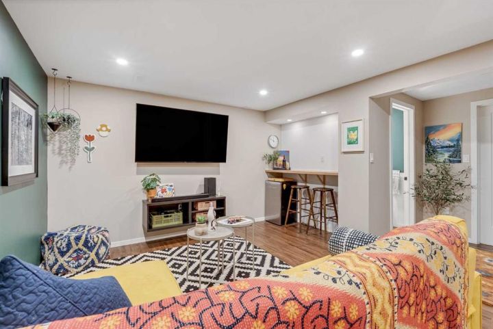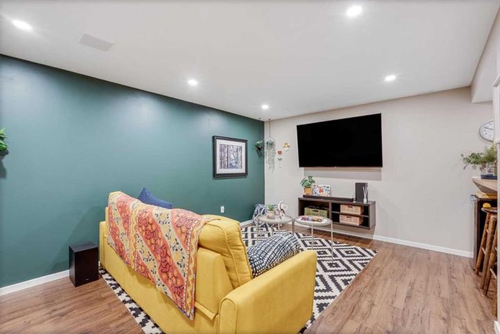 Alarm/Security System with 2 Wireless Security Cameras (App Controlled), TV Bracket in Basement, Wired Speaker System, Entertainment Unit in Living Room