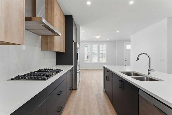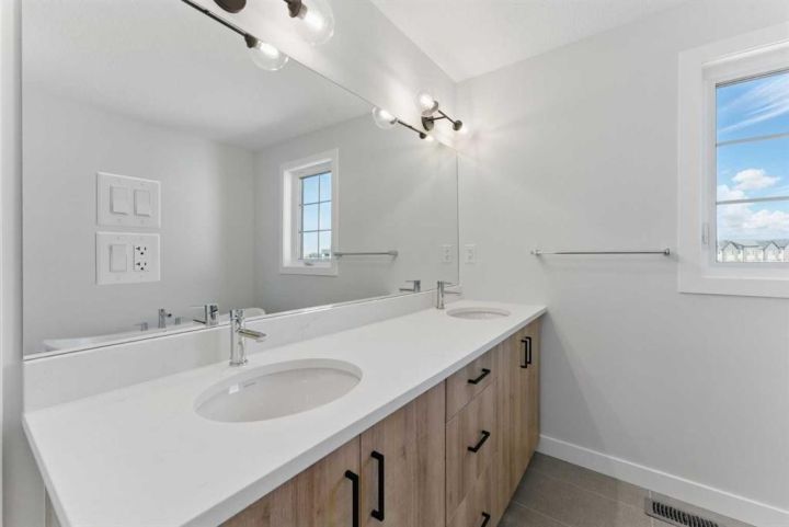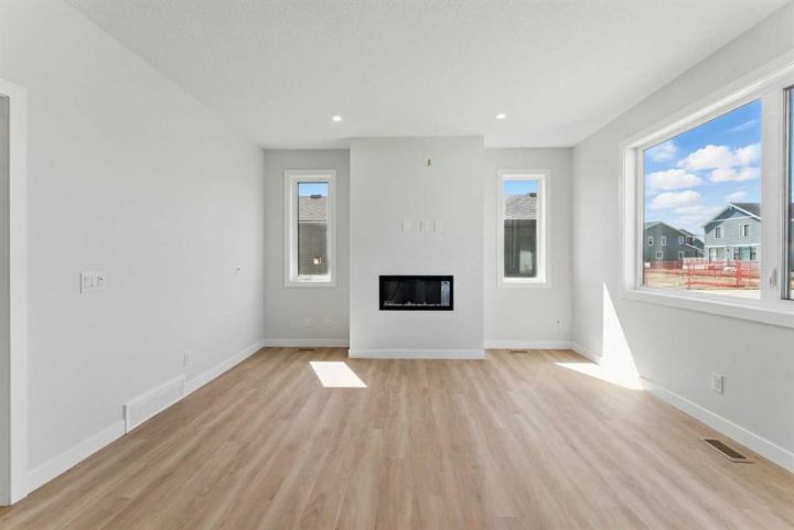 Welcome to 1125 Sailfin Heath — Streetside’s Dreamiest Opportunity! This stunning 1,797 sq ft home, featuring a triple-car garage, sits on one of the most coveted lots in the development. This large 76-foot-wide private side yard stretches 130 feet deep, offering endless opportunities to create the outdoor haven you’ve been dreaming of. Whether it’s a gourmet outdoor kitchen, a serene pool, jungle gym for the kids, a workshop or a combination of it all - this space is ready to bring your dreams to life! Nestled in the heart of Harmony (An eight-time “Community of the Year” award winner), home offers more than just incredible design; it’s a gateway to an extraordinary lifestyle. Enjoy exclusive perks at Mickelson National Golf Club, practice your swing at the Launch Pad’s interactive driving range, unwind at the beach, or paddle across the stunning 40-acre lake. The community offers something for every pace of life, from fly fishing and community gardening to 17kms of paved pathways, a skate park, or beach volleyball! And there’s even more on the horizon. Harmony will soon welcome: a second 100-acre lake, Phase 2 of the Adventure Park (hello tennis/pickle ball courts!), and the highly anticipated village core filled with boutique shops, restaurants, salons, galleries, and even a Nordic Spa! But if you’re craving a change of scenery, the Rocky Mountains are just a short 45-minute drive away. Inside, this 3-bedroom, 2.5-bathroom home is designed to impress. With 8’ and 9’ knockdown ceilings, triple-pane windows, and a durable Hardie board exterior, this home combines comfort and efficiency. Luxury vinyl plank flooring is featured throughout the upper two levels, while the gourmet kitchen boasts Bosch appliances, a stylish wine bar, and elegant finishes. The open-concept living area includes a cozy gas fireplace with ribbed tile detailing, creating a warm and inviting space. Upstairs, the primary suite boasts a spa-like 5-piece ensuite with a freestanding tub, and the upper-floor laundry room is thoughtfully designed for convenience and function. Visit the show home at 1002 Harmony Parade to learn more about 1125 Sailfin Heath. Estimated possession is between November 2025 and July 2026—don’t miss your chance to own a truly exceptional home in one of Alberta’s most celebrated communities. Please inquire today regarding all available promotions from the builder.