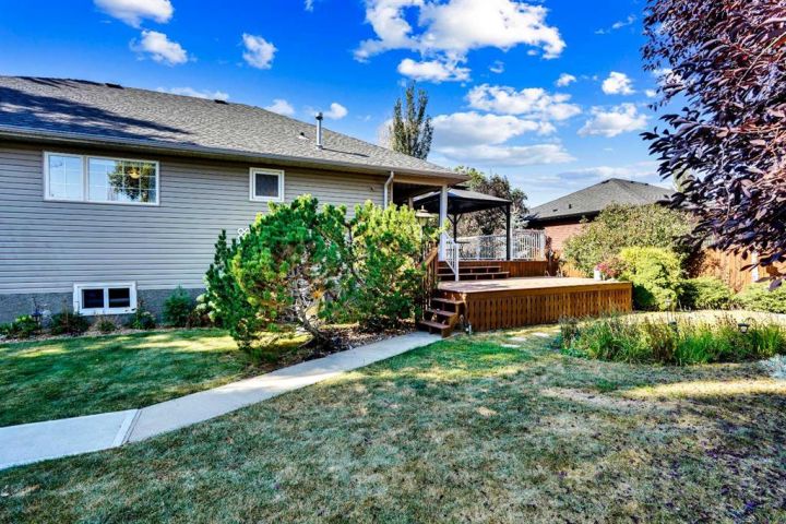 Welcome to your dream home in one of Drumheller's most desirable cul-de-sacs—Newcastle Place. Situated on an exceptionally large, private lot with mature trees and beautiful flower beds, this property offers the perfect balance of peace, space, and community. The large tiered deck and included gazebo make outdoor living a breeze—ideal for shaded summer lounging or weekend gatherings. You will also find two well maintained sheds for storage. Step inside to discover a beautifully updated interior with new flooring throughout, almost all new windows in the last 10 years, and custom-designed window treatments that enhance both comfort and style. The spacious kitchen is a cook’s delight, featuring newer appliances(2021, fridge 2025), stone countertops, ample work space, and modern light fixtures that brighten the heart of the home. The generous primary suite is your personal retreat, complete with double sinks, a tiled walk-in shower, heated floors and a relaxing soaker tub. Downstairs, enjoy a warm and inviting family room with a cozy fireplace, built-in cabinetry, and a wet bar—perfect for entertaining or movie nights. The fully finished basement also offers a renovated full bathroom and two more spacious bedrooms, making it ideal for guests, older children, or a home office setup. With nearly every inch of this home thoughtfully updated, pride of ownership is evident throughout. Shingles 2015, Siding 2018 This is your chance to own a truly move-in ready home in one of Drumheller's premier neighbourhoods. Don't miss out—this one won't last long!