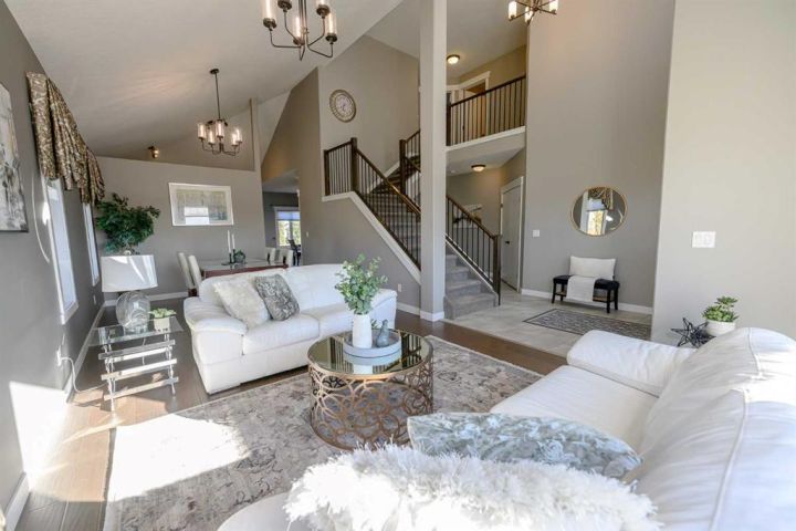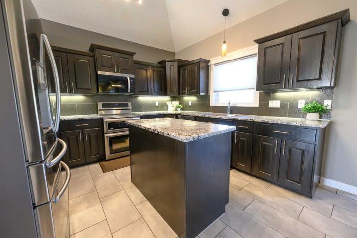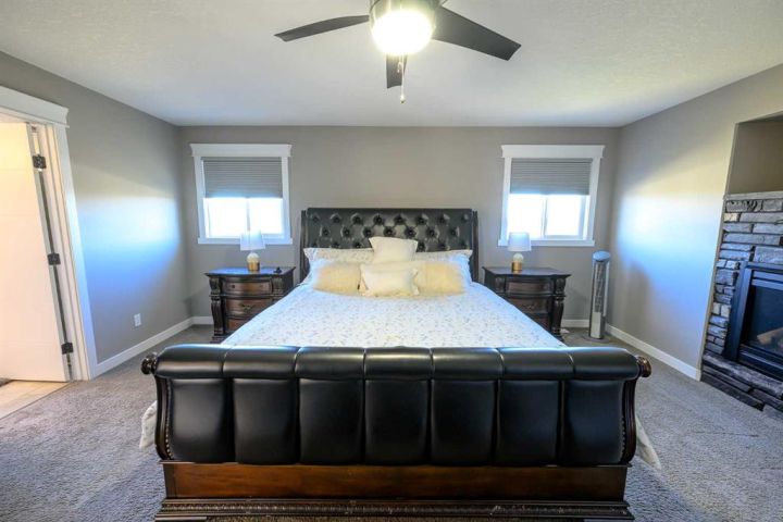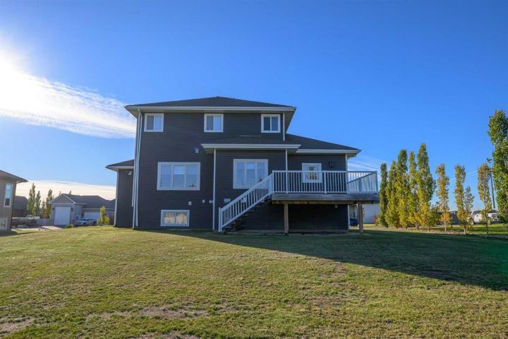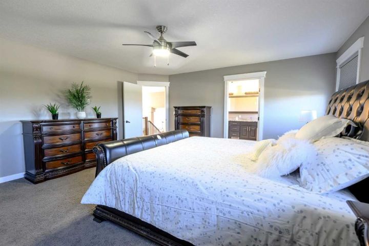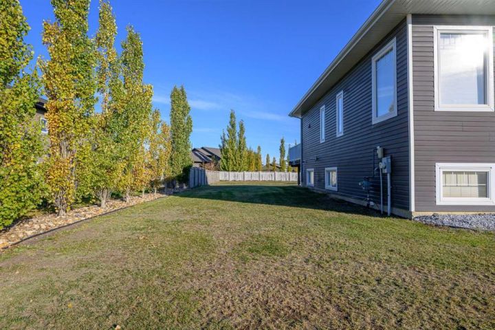 Stunning upscale two-storey home offering well over 3,000 sq. ft. of beautifully appointed living space. Fully developed and designed for modern family living and entertaining. There are 5 bedrooms plus a main-floor office and formal dining room. There is a formal living room and a family room. Eat-in kitchen with abundant cabinetry, a buffet/server area ideal for entertaining, upgraded granite countertops, and stainless steel appliances. The Kitchen walks out to a BBQ deck overlooking a large, private yard. Massive primary suite with two walk-in closets and a luxurious 5-piece ensuite featuring a glass walk-in shower and freestanding soaker tub, and a gas fireplace. Main-floor office and convenient laundry room. Elegant hardwood and tile throughout the main living areas. Fully finished basement with two generous additional rooms, a full bathroom, a large open family room, and extensive storage. Triple heated garage, central A/C, Tesla charging port, custom blinds, and new lighting fixtures among premium upgrades. Location Nestled in desirable Westlake, this home enjoys proximity to schools, scenic water features, paved trails, and larger lots that deliver privacy and a neighborhood feel. This exceptional property blends refined finishes with functional spaces for every stage of life and is perfect for families who value space, quality, and location. Book your showing today!!!