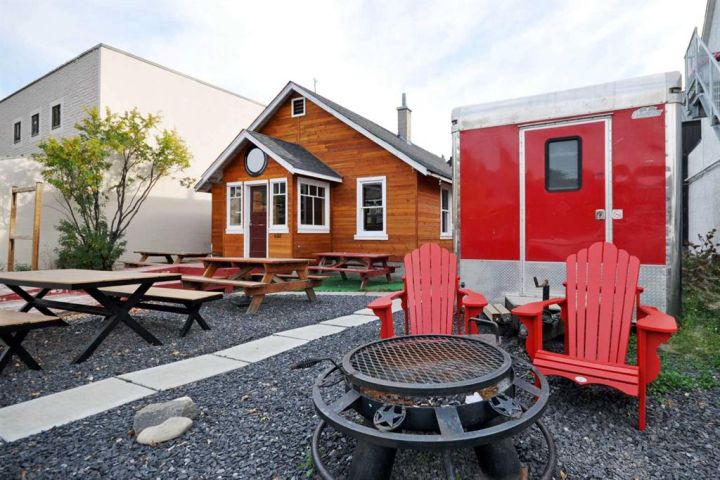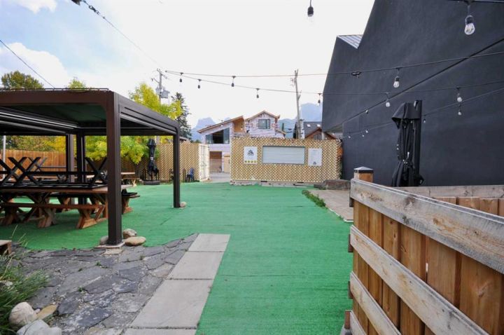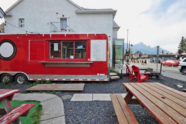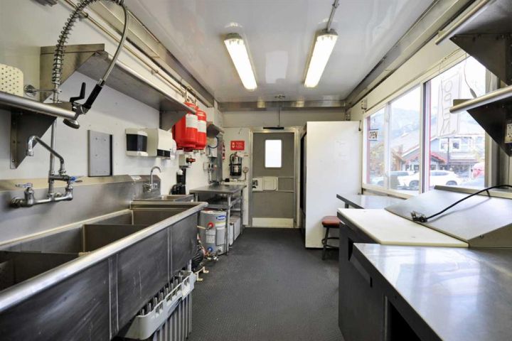 Food truck + yard venue on Main Street Canmore - this offering is for an assignment of leasehold interest and business assets which includes a 32-ft 2014 food truck trailer (converted 2017), yard improvements, and TWO existing sub-tenant agreements. The truck features an amazing, fully loaded commercial kitchen, complete with 10-ft hood, a flat-top grill with oven below, two large gas burners, a six-burner grated grill, two deep fryers with four baskets, plus ample refrigeration, prep, storage, and working space to support a variety of culinary delights and/or artists. Situated on a 6,587sf lot, the outdoor yard is tucked behind the original 915sf, 1910 cabin with both front street and shared washroom and backyard access. The yard is set for gathering, dining, and events with two commercial pergolas, a stage, and multiple seating areas. The yard offers a seasonal multi-pad layout for the food truck, one existing sea can sub-tenant (confirmed and wanting to stay), and an existing retail tenant in the original 1910 cabin. The cabin provides shared access for all tenants to the three new washrooms with access ramp, via the yard. The second sea can operating as a licensed bar (un-tenanted) could be included. Absolute net lease at $3,220/mo; property taxes approx. $1,000/mo. (less rent from two subtenants). Leasehold to Dec 31, 2028; assignment subject to landlord approval. Price may be subject to GST.
