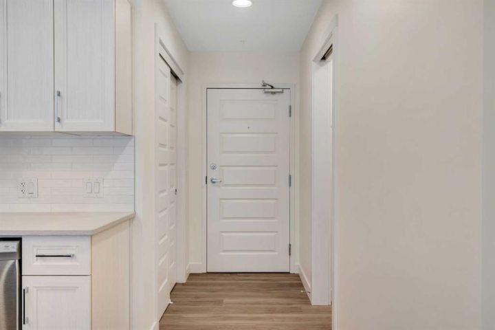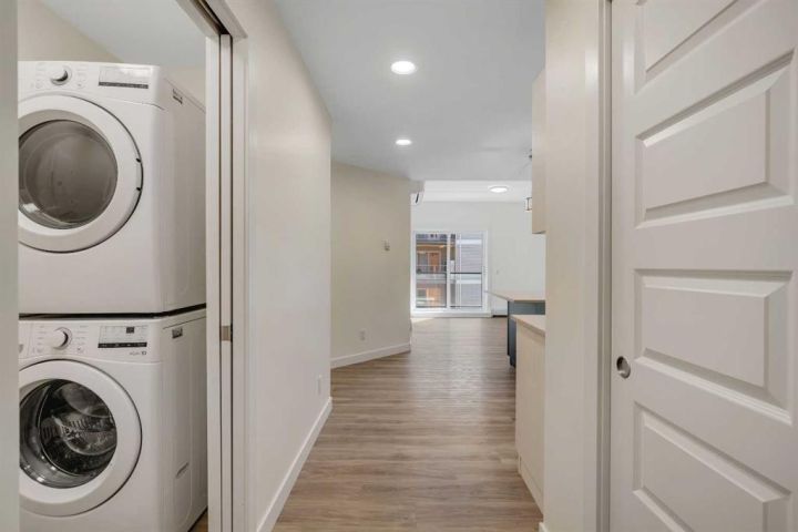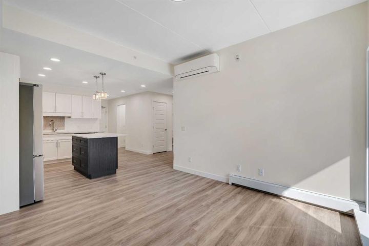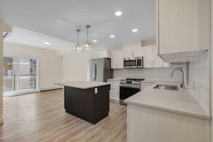 Welcome to 302, 404 1 Avenue SE – a stunning brand new, never-lived-in, south-facing condo that combines modern finishes, comfort, and convenience in one of the area’s most desirable buildings. Step inside this bright 2-bedroom, 2-bathroom home and be greeted by luxury vinyl plank flooring, quartz countertops, 9 ft flat-finish ceilings, and recessed kitchen lighting. The open-concept design makes the living space perfect for entertaining or relaxing, while the thoughtfully designed layout ensures both bedrooms are generously sized. From your 6' x 22' covered deck, you’ll enjoy breathtaking mountain views and plenty of room to unwind outdoors. The deck is equipped with a natural gas BBQ line and includes two enclosed storage rooms, giving you convenient extra space right outside your door. This home also comes with in-suite laundry featuring a stacked washer and dryer, as well as air conditioning for year-round comfort. Thanks to the building’s cement-core floor construction, you’ll appreciate how quiet and private each suite feels. The community is also proudly pet-friendly, allowing up to two small or medium dogs, and even includes a heated parkade dog wash to keep your pets clean and happy. Your parking is secure with a large indoor parking stall, and there’s no shortage of guest and street parking for visitors. The building itself provides a range of thoughtful amenities, including a fitness centre, social room, and a workshop space ideal for carpentry or other hobbies. With heat and water/sewer included in the low condo fees, this home offers exceptional value. Whether you’re downsizing, investing, or purchasing your first home, this unit delivers unbeatable appeal with its brand-new condition, mountain views, and full suite of amenities.