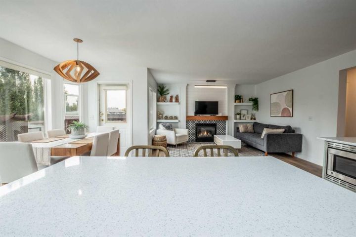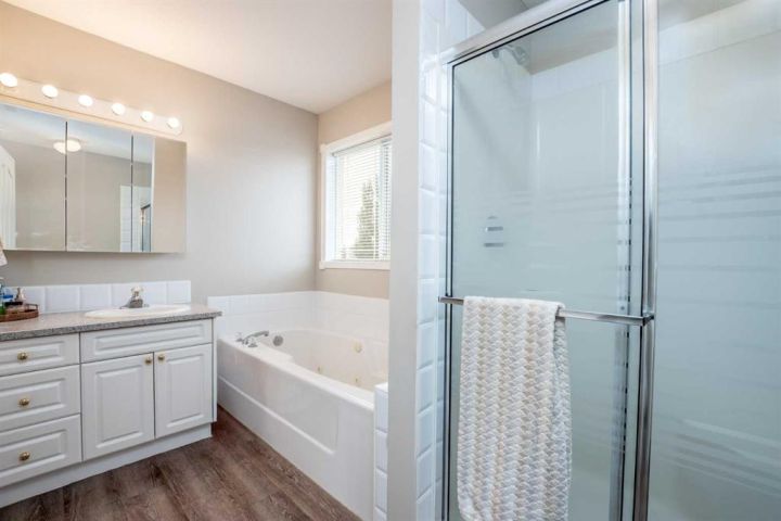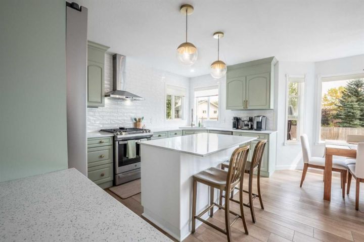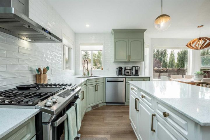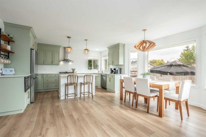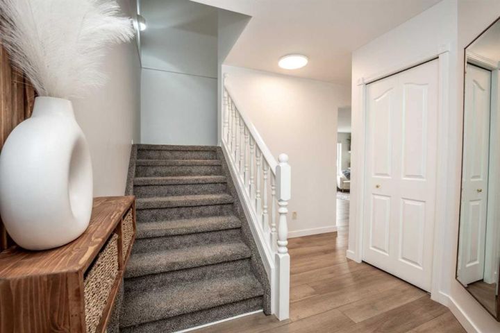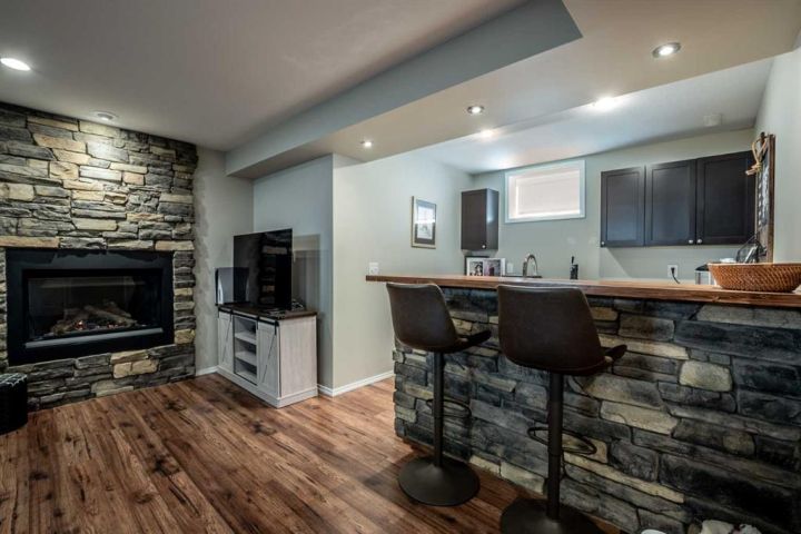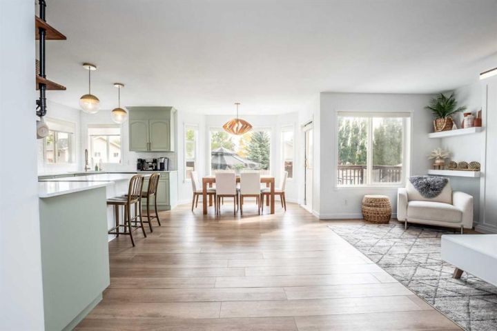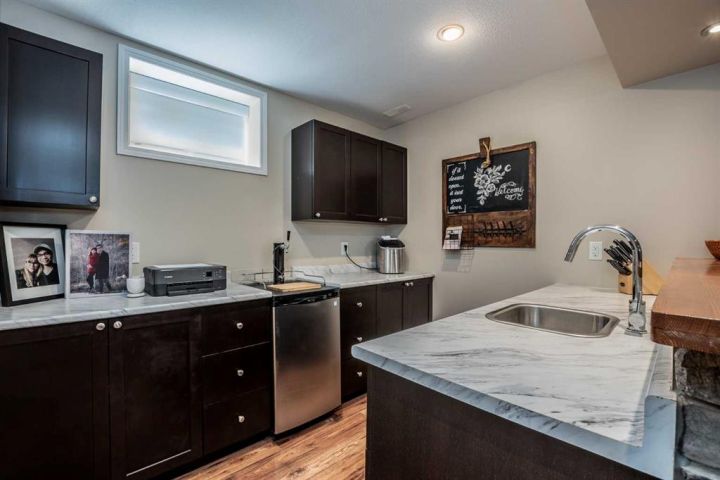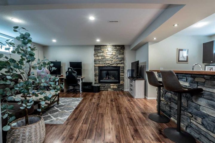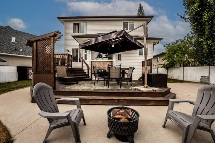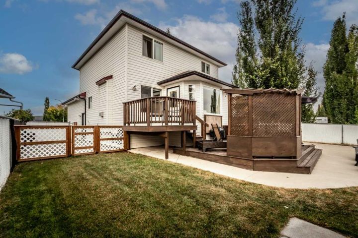 **OPEN HOUSE - SUNDAY, SEPT 21- 1 to 3 ** Wonderful Family Home , Great Location. Open Concept Kitchen, Eating Area and Livingroom with large windows, island and Fireplace creating a warm, inviting space. Entire Main Floor has been Beautifully Updated- vinyl plank flooring, new light fixtures and cabinet hardware, quartz counters, subway tile backsplash, all new appliances in last 3 years. Gas Fireplace with tile, wood mantel. Main floor Laundry Room features built-in cabinet, drying shelf. Washer and Dryer new in last year. Main floor renovated 2-piece Bath. Upper level has Master w Ensuite, jetted tub, 2 Additional Bedrooms and 2nd 4-piece Bath. Fully Finished basement extends living space with Family Room , Wet Bar, 4-piece Bath, Storage. Heated Double Garage. Spacious Fenced Back Yard - 2-tiered Deck, Pergola bench, Concrete RV Parking, Alley access, Dog Run, Shed. Bright, Sunny, Lovingly cared for Home. Don't miss this Opportunity! You'll Love This Home!