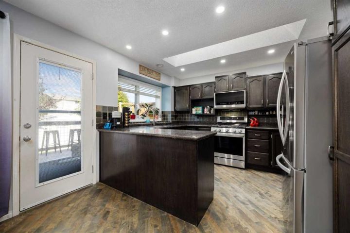 LOCATION, LOCATION, LOCATION!!! Welcome to this stunningly updated 2-storey split in the highly coveted LAKE COMMUNITY of Midnapore! Offering the perfect mix of modern upgrades, energy efficiency, and year-round lake access, this home places you within walking distance of schools, shopping, Fish Creek Park, and the bustling community center. Step inside to a BRIGHT VAULTED LIVING and formal dining area that sets an inviting tone. The SKY-LIT KITCHEN has been beautifully updated with granite countertops, BRAND-NEW APPLIANCES, and generous prep space—ideal for family living and entertaining alike. Just a few steps down, the cozy family room with a WOOD-BURNING FIREPLACE makes for the perfect evening retreat. This level also features a thoughtfully designed laundry room and a stylish powder room with custom storage. Upstairs, unwind in the spacious primary suite with a RENOVATED spa-inspired ensuite complete with HEATED FLOORS. Two additional bedrooms share a modernized main bath featuring an AIR-JETTED TUB. The fully finished basement expands your living space with a large recreation room, craft room, plenty of storage, and a newly RENOVATED BATHROOM. Outdoors, enjoy a private backyard, and large deck with a sit-up bar—a dream for entertaining. The HEATED ATTACHED GARAGE is perfect for the handy homeowner. This property is LOADED WITH ENERGY-EFFICENT UPGRADES including SOLAR PANELS (tied to a new electrical panel), CENTRAL A/C, reverse osmosis filtration, UV air purification, water softener, central vacuum, smart-home security wiring, IRRIGATION and more. This is more than a home—IT’S A LIFESTYLE. Don’t miss the chance to own a meticulously cared-for property in one of Calgary’s most desirable lake communities!