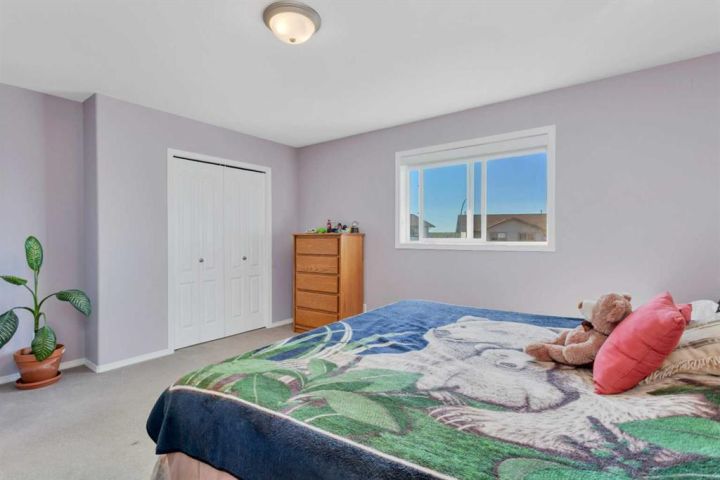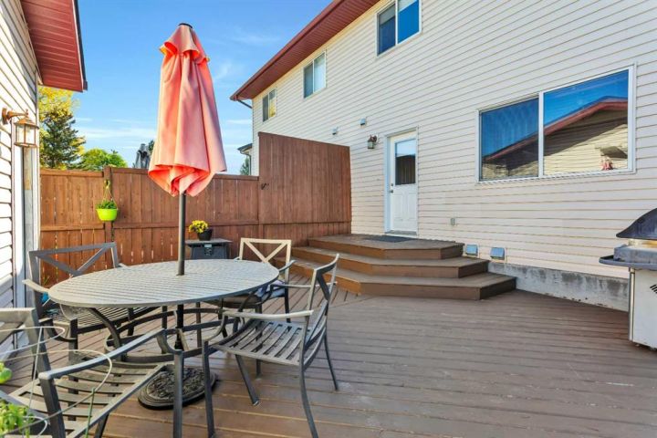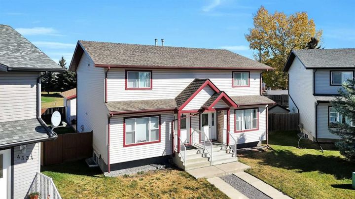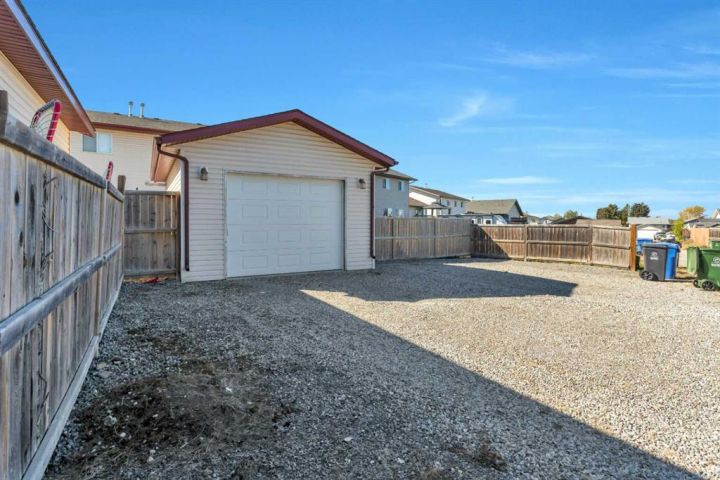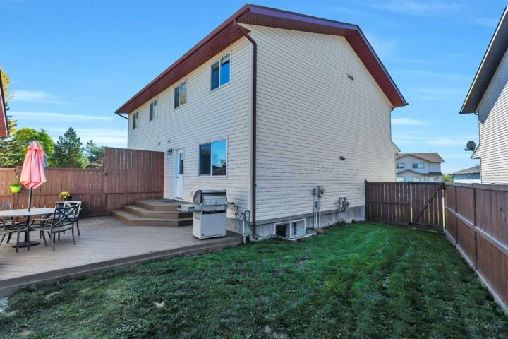 This inviting 2-storey, fully developed half-duplex, built in 2007, is perfectly situated in a quiet cul-de-sac and boasts a fantastic corner lot location. The home backs onto a playground, offering both privacy and a perfect space for outdoor activities. 4 Bedrooms, 3 Bathrooms: Enjoy spacious living with 4 well-sized bedrooms and 3 bathrooms. The main floor includes a convenient 2-piece bathroom, while the second level features a 4-piece bathroom, perfect for family living. The fully developed basement offers additional living space with a 3-piece bathroom, bedroom, and family room. Fully Developed Basement: The basement is a fantastic bonus, providing an additional bedroom, bathroom, and a cozy family room for extra living space. Laundry on the 2nd Level: Located conveniently near the bedrooms, the laundry room makes chores a breeze. Single Detached Garage & Ample Parking: The home comes with a detached single garage, plus a large parking area for vehicles and RVs — perfect for storage or additional guest parking. Outdoor Space: Relax and enjoy the outdoors on the freshly restained deck or in the spacious yard, which is fully fenced and provides a peaceful setting. Upgraded Features: The shingles on the garage have just been replaced, ensuring long-term durability and protection. Location: This home is in a family-friendly neighborhood, tucked away in a cul-de-sac and backing onto a playground, making it an ideal setting for those with children or anyone who enjoys easy access to outdoor spaces. Don’t miss out on this fantastic opportunity to own a well-maintained and spacious duplex in a highly desirable area.