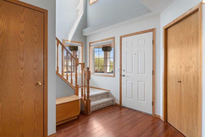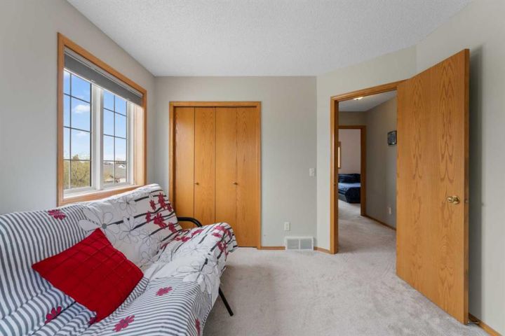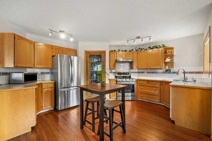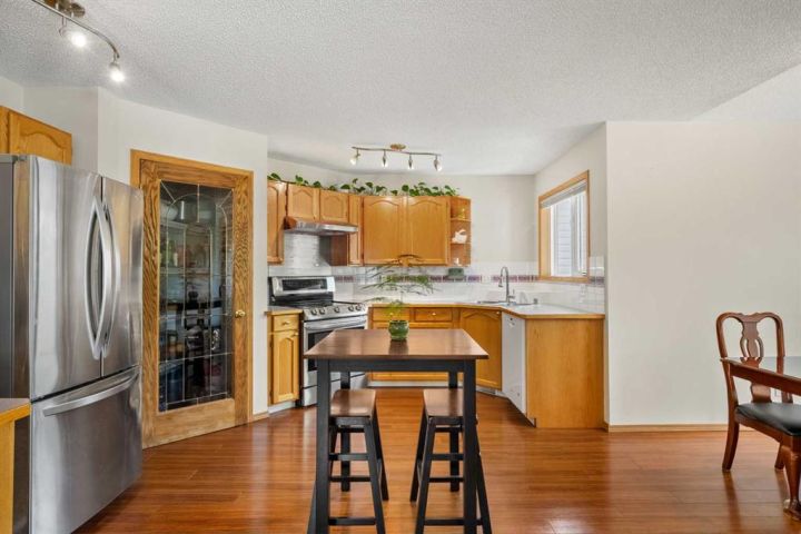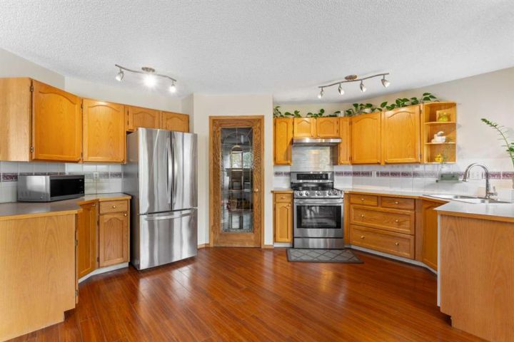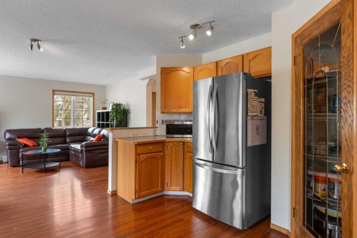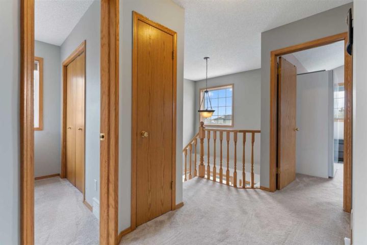 Welcome to 196 Harvest Park Way - you new forever home! This beautifully maintained two-storey home offers the perfect blend of comfort and convenience, ideally positioned on a private greenspace. A walking path from the backyard connects directly to Harvest Hills Park, where you can enjoy an outdoor skating rink in the winter or take a leisurely stroll to the nearby K–9 school. As you enter, you are greeted by a warm and inviting foyer that opens into a bright and spacious open-concept main floor. The kitchen, dining area, and living room flow seamlessly together, creating an ideal setting for both everyday living and entertaining. The kitchen features generous counter and cabinet space, an updated refrigerator and stove, and a large walk-in pantry that keeps all your cooking essentials neatly organized. The private west-facing backyard provides a peaceful retreat with direct access to the surrounding greenspace. A large wooden deck extends the living area outdoors, offering plenty of room for summer barbecues, children’s playdates, or simply relaxing in a serene setting. The spacious lawn is framed by mature landscaping, and the corner lot location allows for ample parking and an abundance of natural light throughout the day. Upstairs, two generously sized secondary bedrooms share a well-appointed four-piece bathroom. The primary suite serves as a relaxing sanctuary, complete with vaulted ceilings, expansive windows that fill the room with natural light, a three-piece ensuite, and a walk-in closet offering plenty of storage space. The fully developed basement adds valuable versatility to the home, providing space for a home office, gym, games area, or additional family room. There is also abundant storage to keep the home tidy and organized. A newer air conditioning unit ensures comfort during the summer months, and a recently installed furnace offers added peace of mind. This home is located in the highly desirable and family-friendly community of Harvest Hills. Residents enjoy proximity to Notre Dame High School, a variety of restaurants, shopping centers, Home Depot, grocery stores, and entertainment options such as Landmark Cinemas. With quick access to Deerfoot Trail, commuting to other parts of the city is simple and convenient. This property presents a rare opportunity to settle into a welcoming neighborhood where everything your family needs is within easy reach. Schedule your private showing today and experience all that this Harvest Hills gem has to offer!