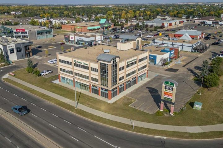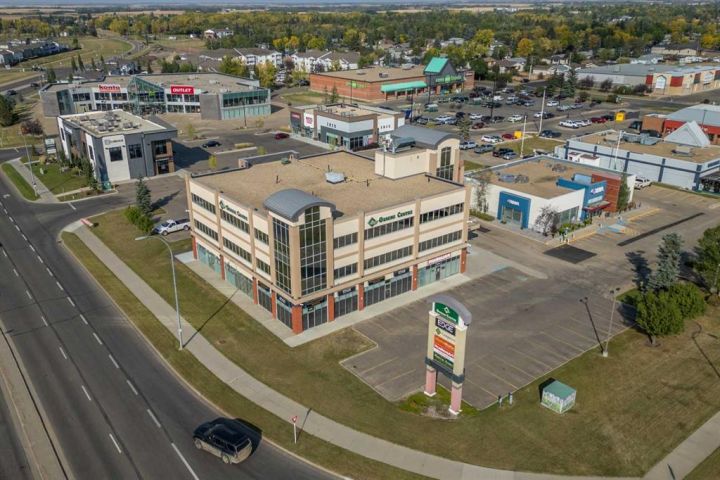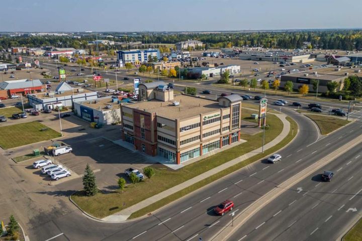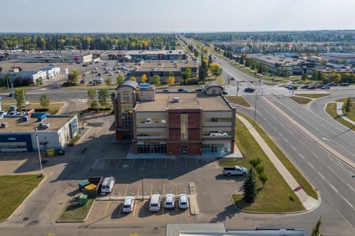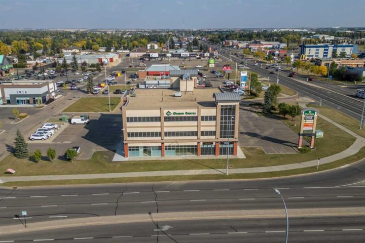 HIGHWAY COMMERCIAL! Great exposure on one of the busiest corners in Camrose. High profile multi-purpose building is an ideal fit for retail, health care, or administrative operation. Main floor space with bright natural light. Individual offices and a great area for a showroom or retail space. Second floor space comes with reception desk, waiting area, & a number of offices. Elevator access and ample parking available.