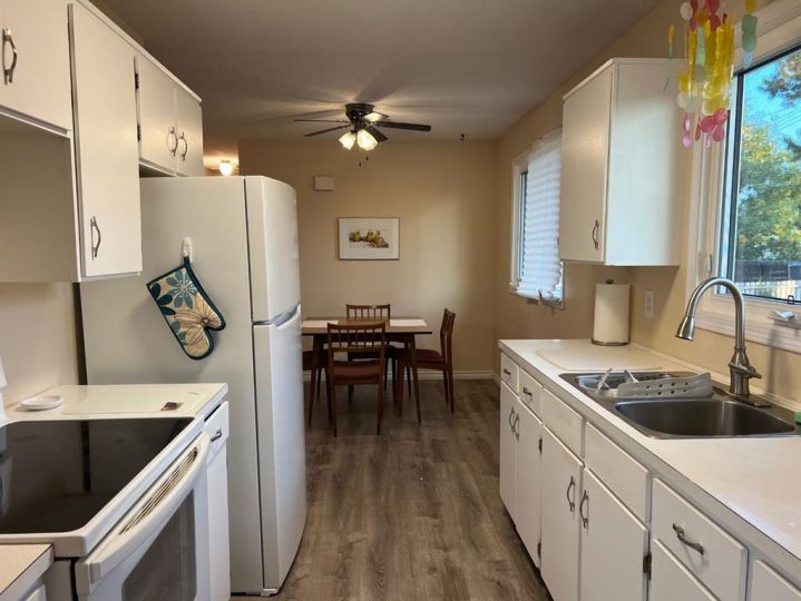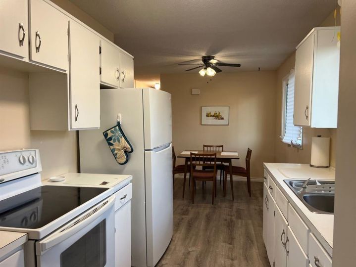 Cute, Comfortable & Close to Everything! Say hello to easy living in this charming 3-bedroom, 1-bath home right in the heart of town! Whether you’re a first-time buyer, downsizer, or just love walkability, this home is ready to impress. Step inside to a cozy galley-style kitchen with vinyl plank flooring and classic white cabinetry, offering a warm and practical space for everyday living. The main floor features dining area, laundry, 4 pieces bath, & 3 bedrooms—including a versatile third that makes the perfect home office, with direct access to the backyard! The basement is undeveloped & ready for your future plans—think hobby space, rec room, or whatever your heart desires. There is a new hot water tank and laundry hook up’s if you prefer your laundry downstairs. Outside, you’ll find a single-car garage, a fully fenced backyard ideal for pets or kids, mature trees for shade, and even a little garden space. With a beautifully kept lot and a quiet, tree-lined street, it’s easy to feel at home here. Located just steps from downtown, you can leave your car in the garage and walk to shops, restaurants, parks, and more. Clean, comfortable, and cared for—this sweet little property checks all the boxes!