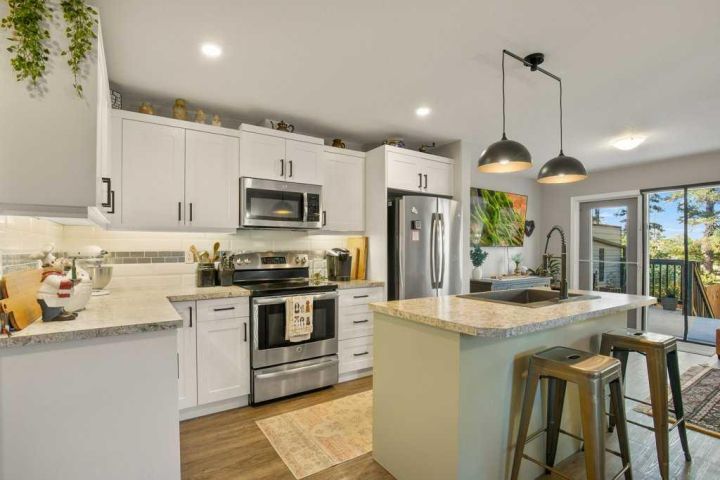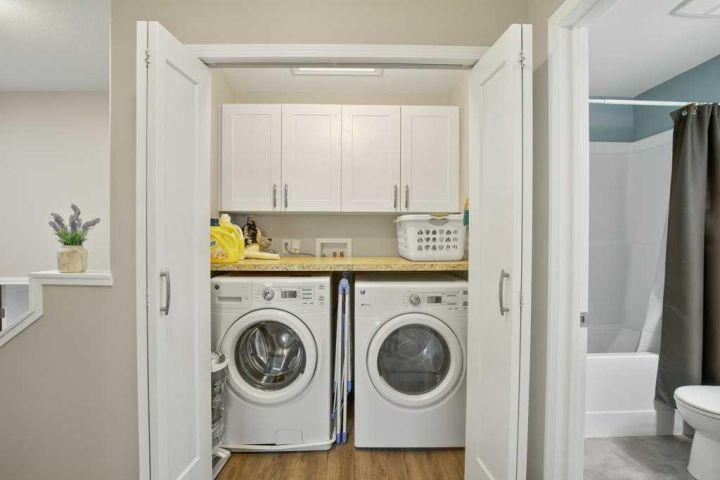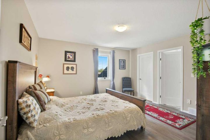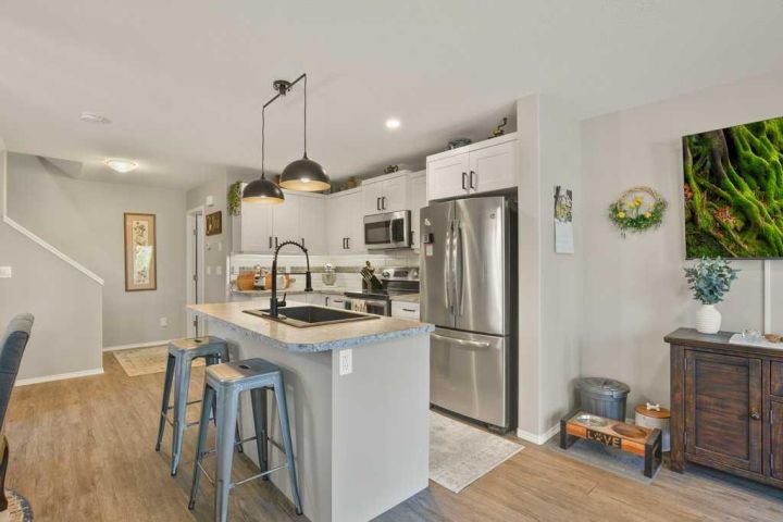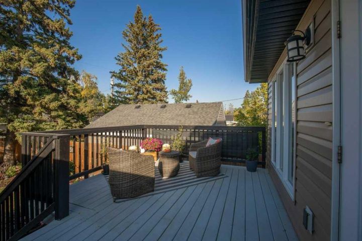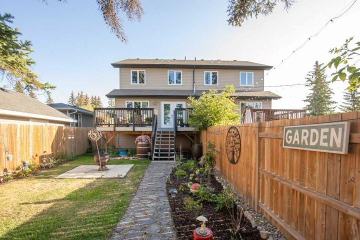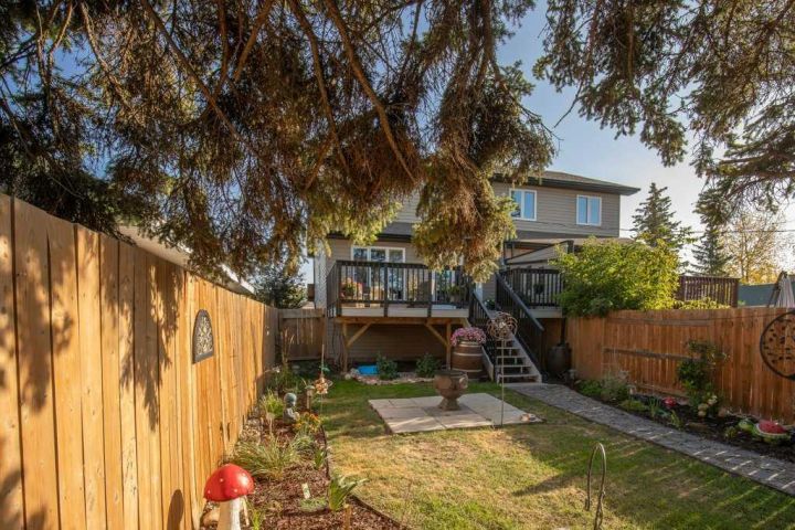 Welcome to this beautifully designed 4-level duplex offering comfort, functionality, and stylish living across every floor. The single attached garage provides a convenient and secure parking space. The heart of the home features an open floor plan, perfect for hosting gatherings. The modern kitchen is equipped with a large central island, ideal for casual dining and meal prep. Dine inside or step thru the glass doors to enjoy the expansive deck. The backyard is lovely with stone pathways and meticulous landscaping. Mature trees provide additional privacy. Fully fenced for the kids and pets to safely play. Back inside, the primary suite is spacious with a wonderful walk-in closet and 4-piece ensuite. The 3rd level offers a thoughtful layout with 2 generous bedrooms, another 4-piece bathroom, and the convenience of laundry. The fully finished basement includes a fantastic family, perfect for movie nights, playtime, or relaxing with company. Boasting an additional 4-piece bathroom, making it ideal for entertaining in a cozy comfort space. Oversized windows flood this lower floor with natural light, enhancing the open feel and the underfloor heat is roughed in. This multi-level layout separates living, sleeping, and recreation areas, offering privacy and flexibility for any lifestyle. (Important note: common wall is sound proofed.) Schedule your showing today!