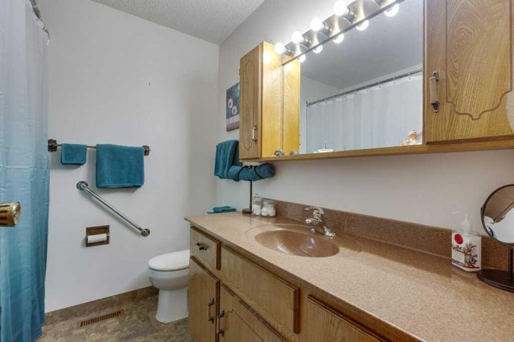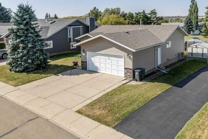 FOR SALE! STUNNING 3 BEDROOM/3 BATHROOM BUNGALOW THAT BACKS ON TO THE GREEN SPACE IN WESTPARK! Enter through the front door of this classy home to the main floor: Living room has a large window to let natural light in...dining area...kitchen with eating area....family room with free standing gas fireplace backing on to a stone wall and access to the back deck/yard.....4PC bath.....master bedroom with 3PC ensuite....bedroom with great storage.....main floor laundry with folding station.....entrance to the double attached garage (21x23). Head downstairs to find : Good sized bedroom...office/craft room....3PC bathroom.....kitchen/dining area with 3 sided electric fireplace.... recreation room to host events.....lots of storage and a cold room. Upgrades have been done in 2020 (vinyl windows, siding, stone work plus a high efficiency furnace). Check out the two tiered deck with pergola that has great views of the green space/play ground. Walk down the deck stairs to find a gazebo to enjoy morning coffee in with free standing fireplace plus a metal shed, vinyl shed, garden spot, firepit area. This is property has chain link fencing with privacy slats and a gate to access the green space plus walking paths. This property is very well kept and a pleasure to show! So close to many amenities (Hockey arena, curling, parks, soccer and schools to name a few) Great place to raise a family!
