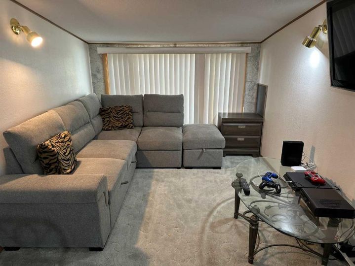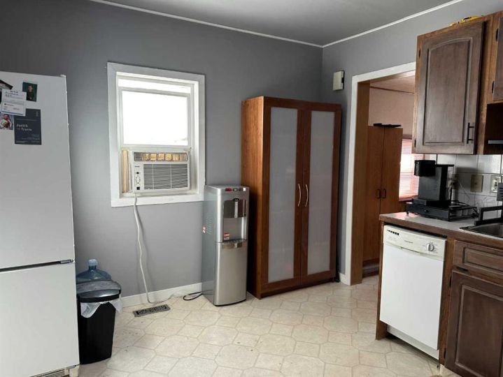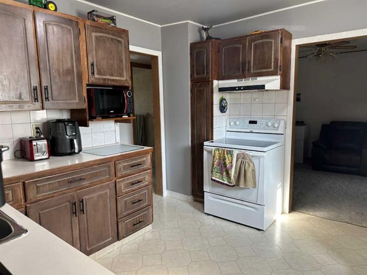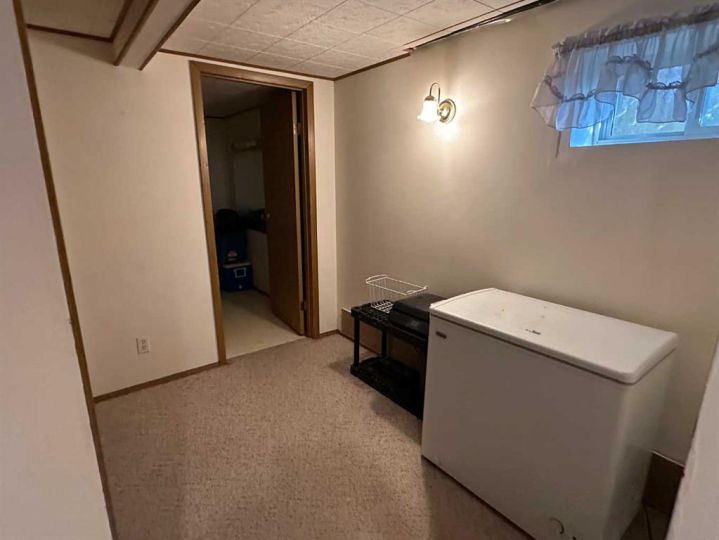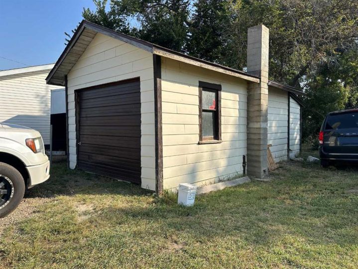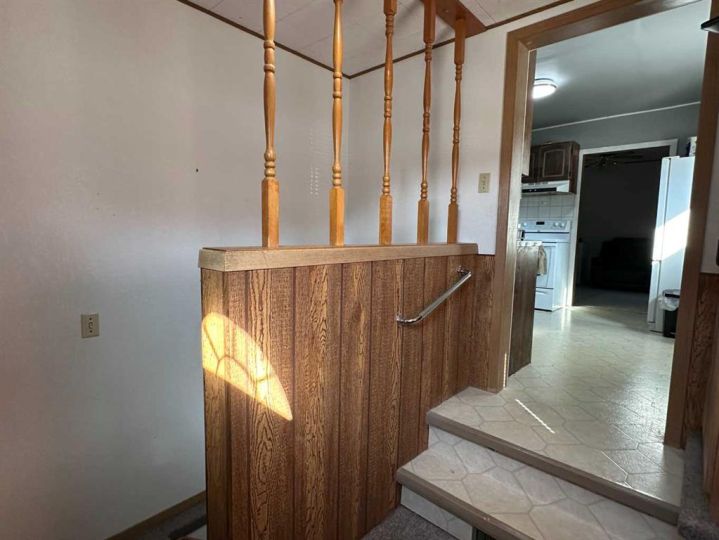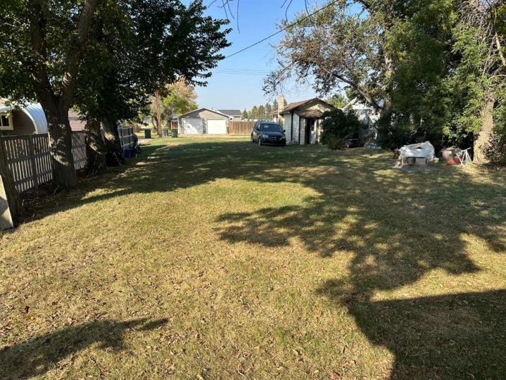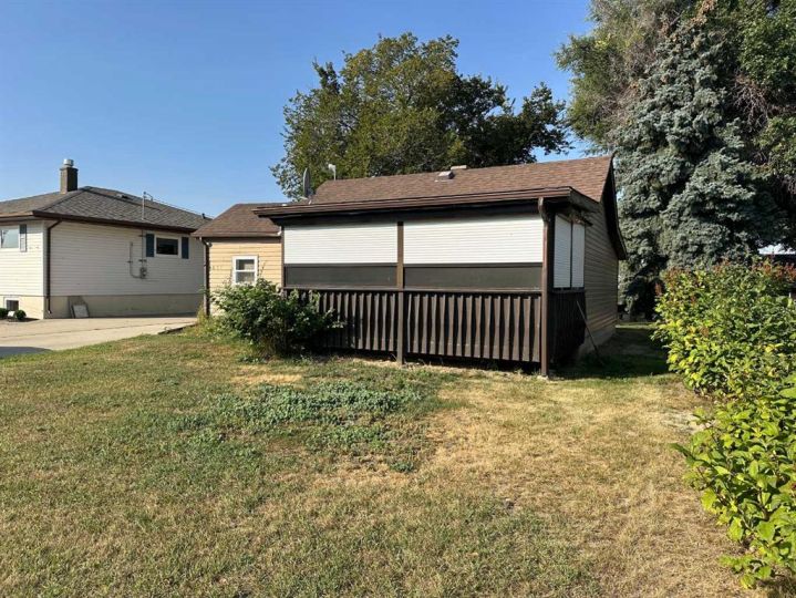 Time to own a HOME! Or keep this as a rental and build on the land later. Affordable and do-able. This little bungalow is almost 7 Square Feet and is located in the quiet town of Vauxhall just steps north of the school. The lot is 50' x 190' with plenty of space for a large garage, garden or possibly a mother in-law suite. The main floor hosts a spacious entry way, kitchen with ample cabinets, a large primary bedroom with 2 closets, a 4pc bathroom and dining/living room with patio doors to a covered deck to enjoy during most seasons! In the full basement you'll find an office or hobby room, second bedroom, 3pc bathroom, laundry room and storage. The exterior, electrical, plumbing and windows have all been updated already for peace of mind. Mature trees shelter the yard and there's a single garage out back that looks as though it could have been a house at one time. The possibilities are endless so plan a visit!