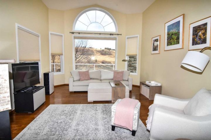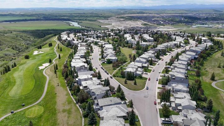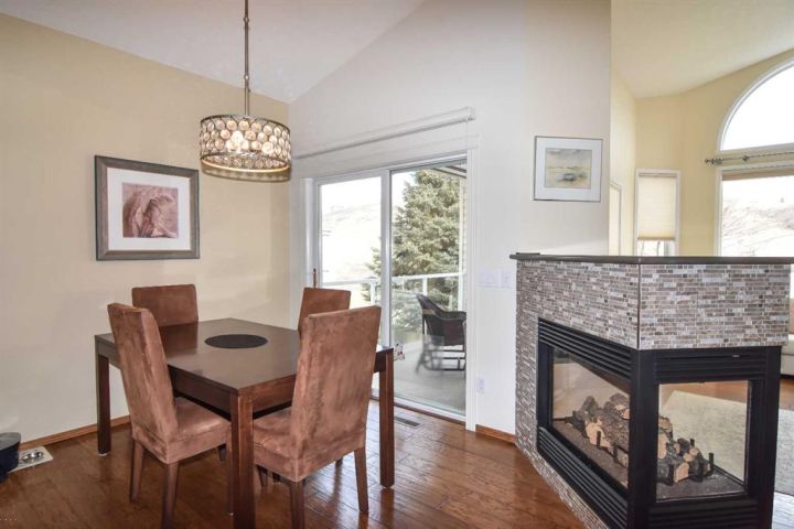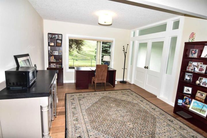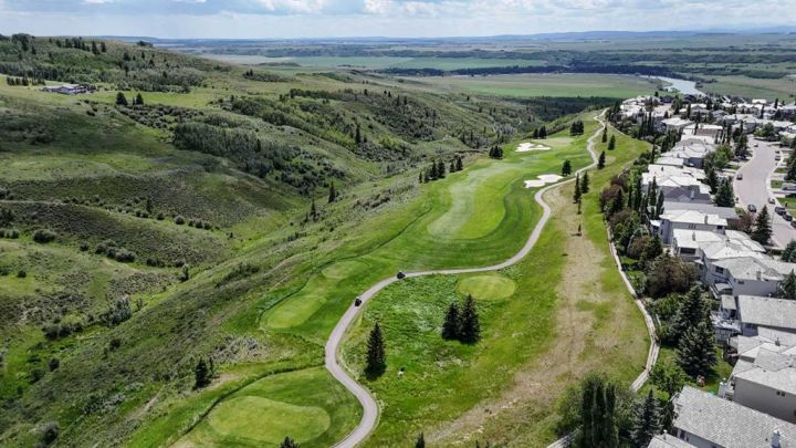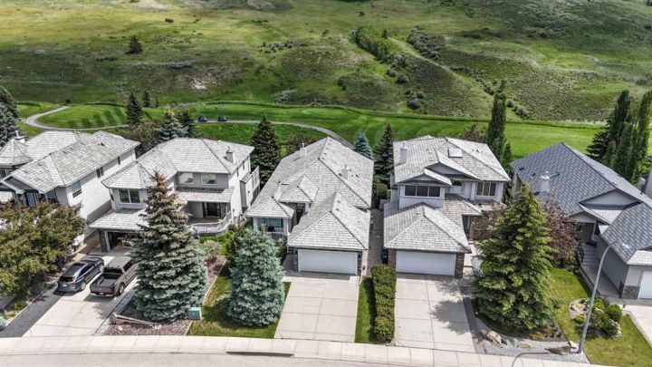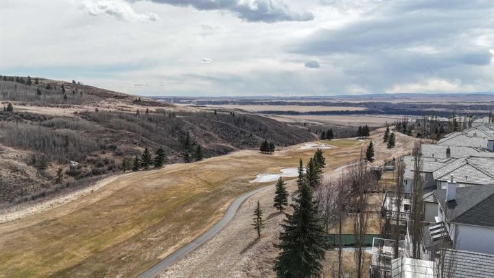 Perfectly positioned with untouched wilderness and the 13th hole of The Links of Gleneagles behind, this home captures breathtaking sunrises and ever-changing views—the perfect spot for your morning coffee! Step inside to find a warm, inviting layout with vaulted ceilings, gleaming hardwood floors, and a striking 3-way fireplace. Featuring a grand island with quartz countertops, stainless steel appliances, ample cabinetry, and a pantry, the kitchen becomes the perfect spot for great conversations. Step out onto the upper deck to soak in the scenery – it never gets old. The primary suite offers a private retreat, with a jetted tub, separate shower, and walk-in closet. A second bedroom, an updated 4-piece bath and a front office/den complete the main floor, along with a NEW Miele washer/dryer team. The finished walkout adds versatility with two large bedrooms, a 3-piece bath and a bright recreation room that opens to the beautifully professionally landscaped yard, complete with patio and low-voltage lighting. Additional highlights include a heated epoxy garage, new garage door, Hunter Douglas window coverings, Central A/C, new dishwasher and microwave, and Suncoast retractable outdoor screens (upper and lower). Just minutes to Cochrane and a quick jaunt to Calgary, this immaculate Talisman-built bungalow will not disappoint. Welcome to 91 Gleneagles Terrace - your new address! For your private showing, reach out to your favourite REALTOR®