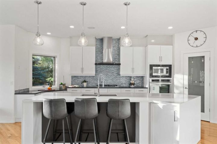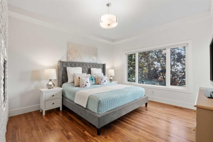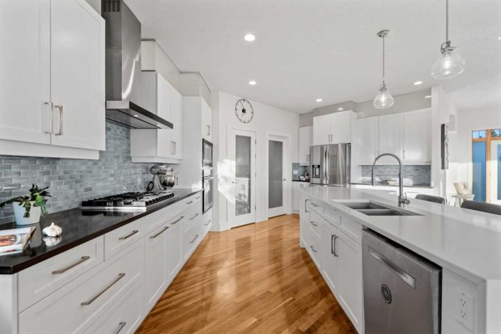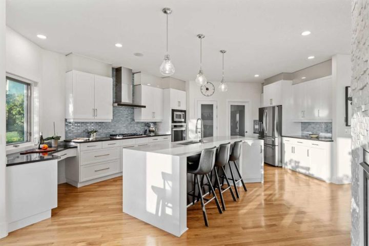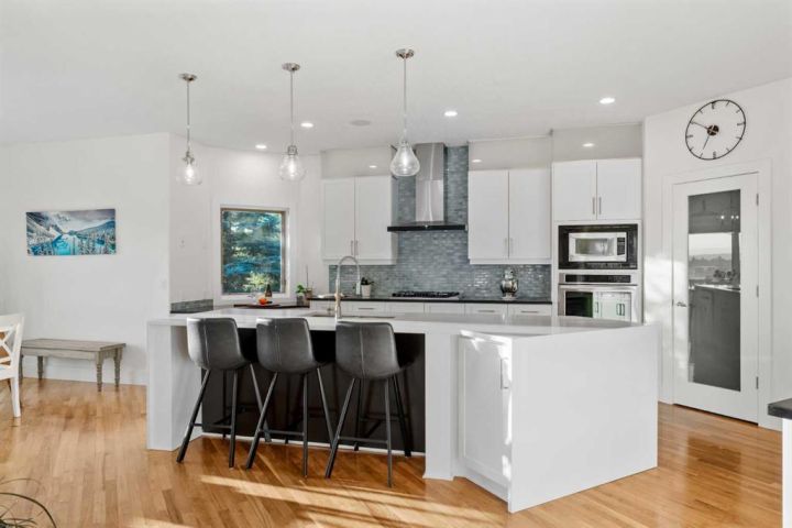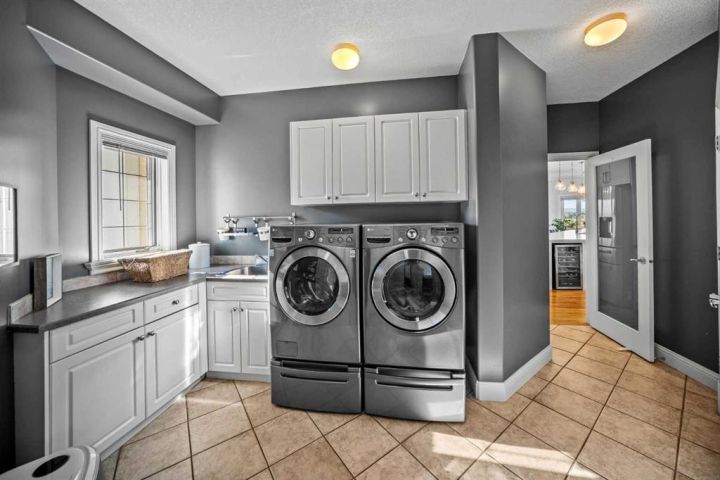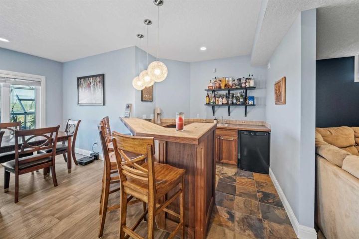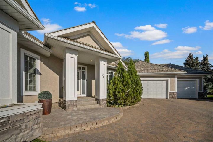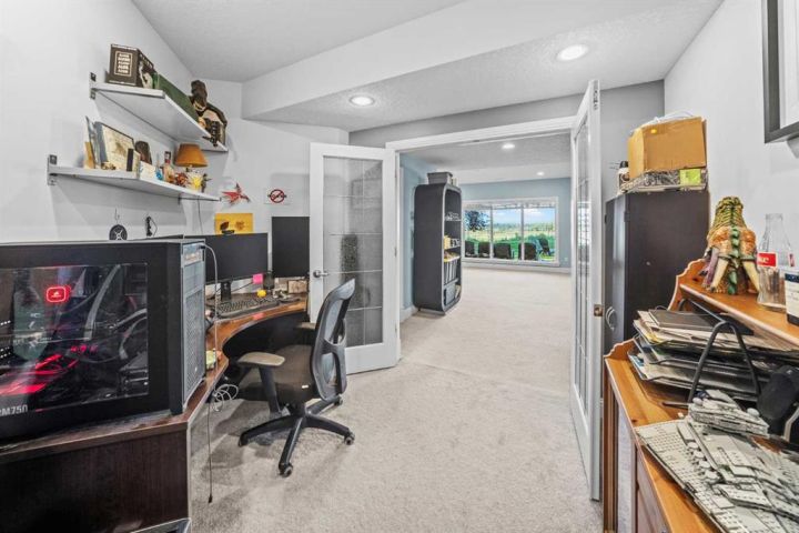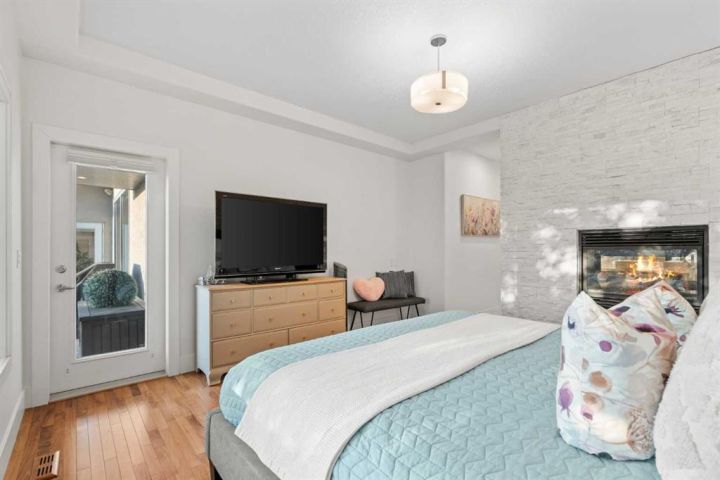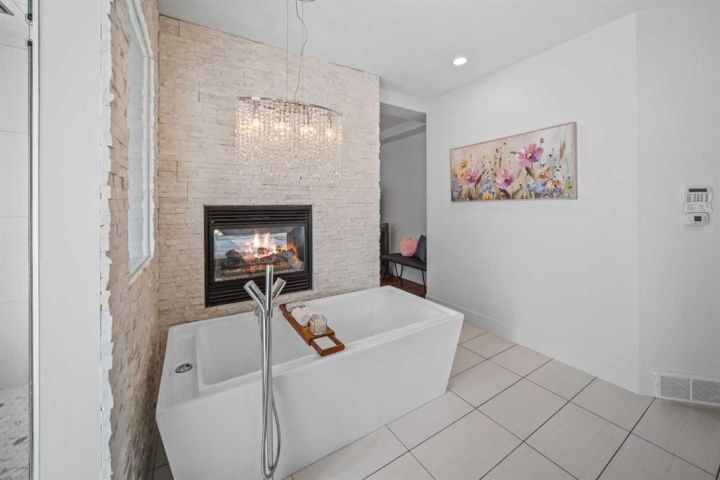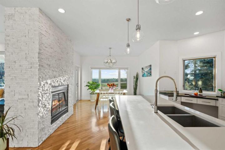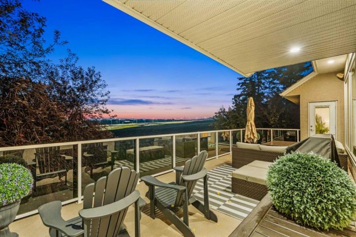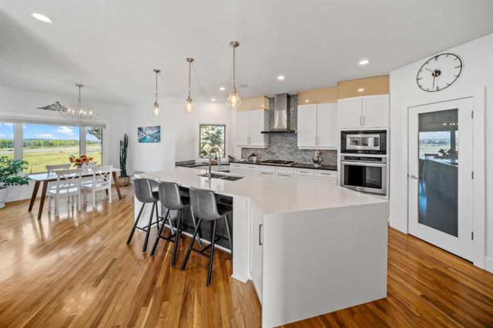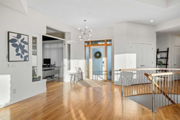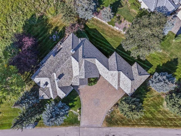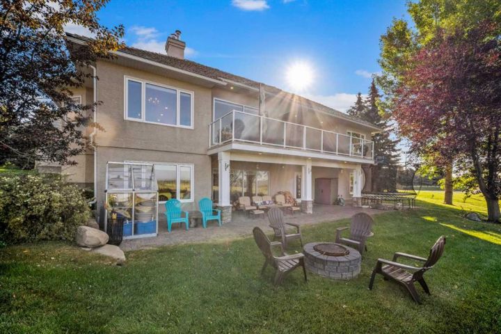 This stunning and charming five-bedroom walkout bungalow offers over 4,000 sq. ft. of fully developed living space in the prestigious gated community of The Slopes in Springbank Hill. Set on a half-acre lot with PANORAMIC MOUNTAIN VIEWS, the home blends elegance, comfort, and convenience— just minutes from Calgary's finest west ammenities and top schools in the city. The main level highlights 12-foot ceilings, natural walnut hardwood floors, and a graceful curved staircase connecting both levels. A large main-floor office offers a quiet workspace. The open-concept living area is anchored by a double-sided fireplace set in an elegant stone feature wall, creating warmth and style between the kitchen, dining, and living spaces. The chef’s kitchen boasts a gas cooktop, stainless steel appliances, quartz countertops, abundant cabinetry, and a massive island—perfect for entertaining and everyday living. The primary suite captures breathtaking mountain vistas, offers direct access to the west-facing deck, and includes a spa-inspired ensuite with a steam shower, soaker tub, double sinks, walk-in closet, and heated floors. A second bedroom with a walk-through bathroom and a convenient main-floor laundry room complete this level. The fully finished walkout basement with 9-foot ceilings and in-floor heating provides three additional bedrooms—including one currently used as a gym with double French doors—along with an expansive entertainment and games area, bar, and dining space. Outdoors, enjoy a south- and west-facing deck, a landscaped half-acre yard, and a triple-car garage with a custom interlocking stone driveway that offers plenty of parking. With air conditioning, a thoughtful floor pan, large windows, elegant design, and proximity to Calgary’s finest schools, major routes, and the mountains, this residence offers a lifestyle as remarkable as its views. Opportunities like this are RARE!