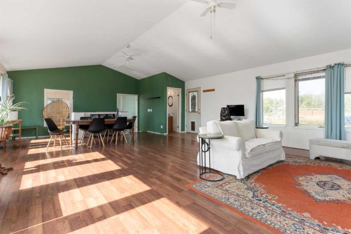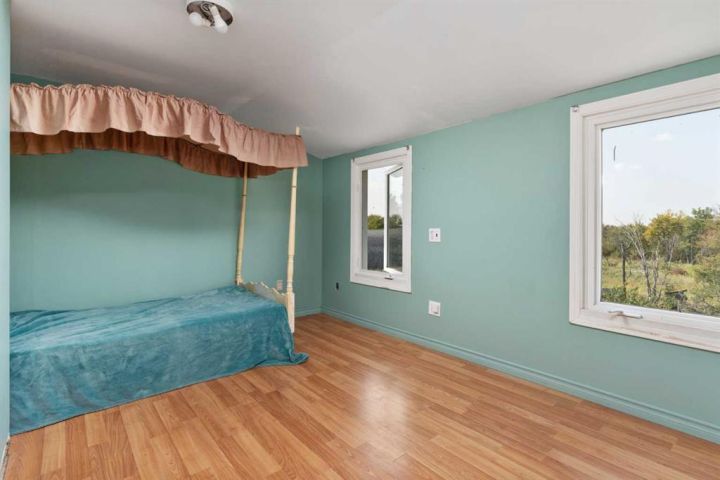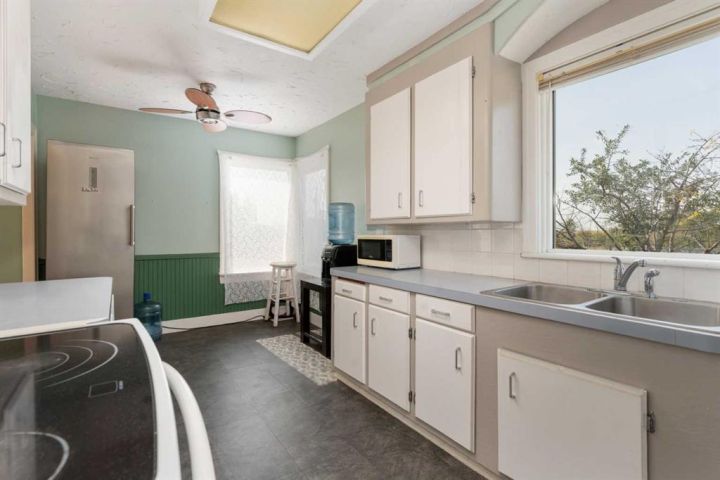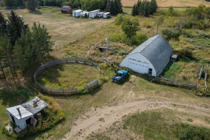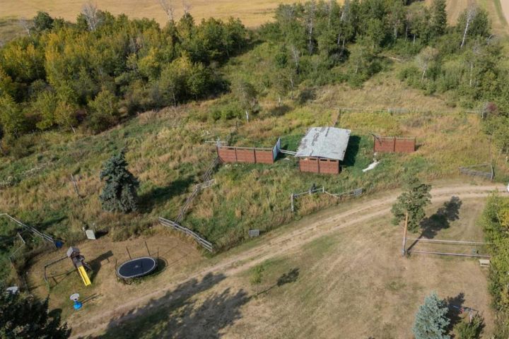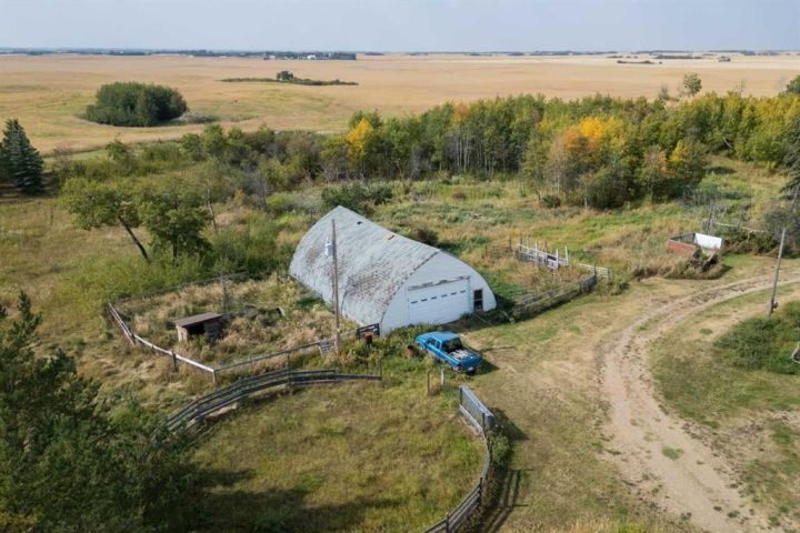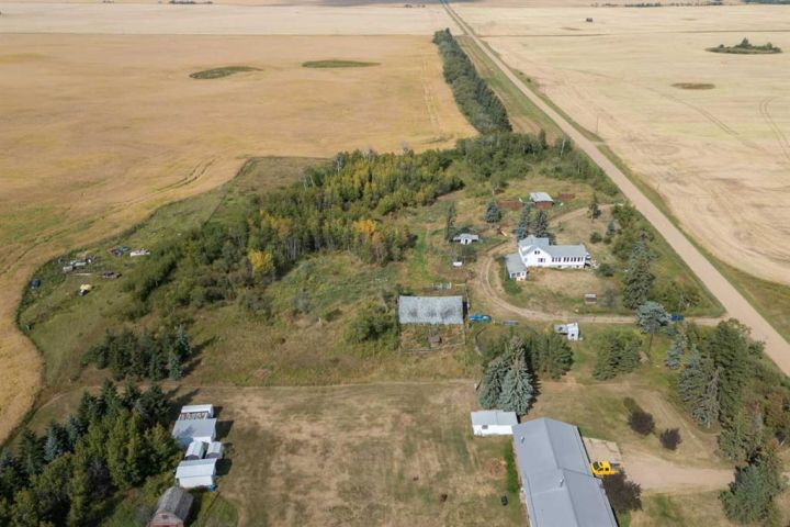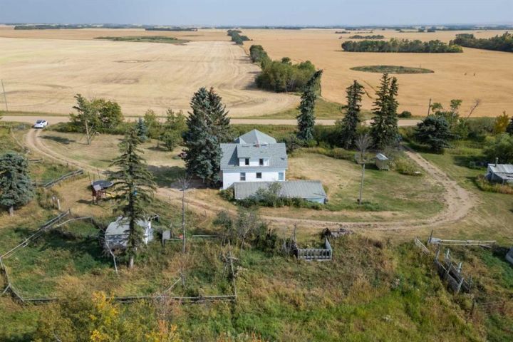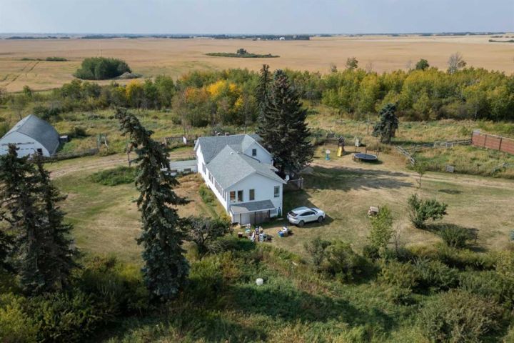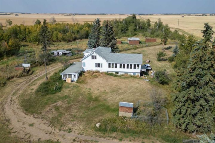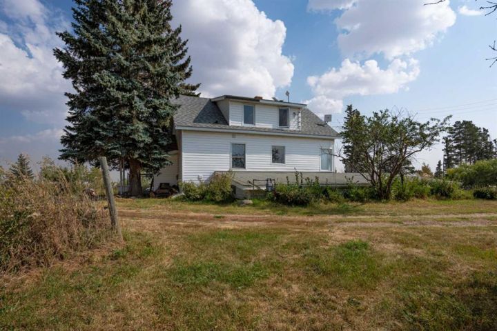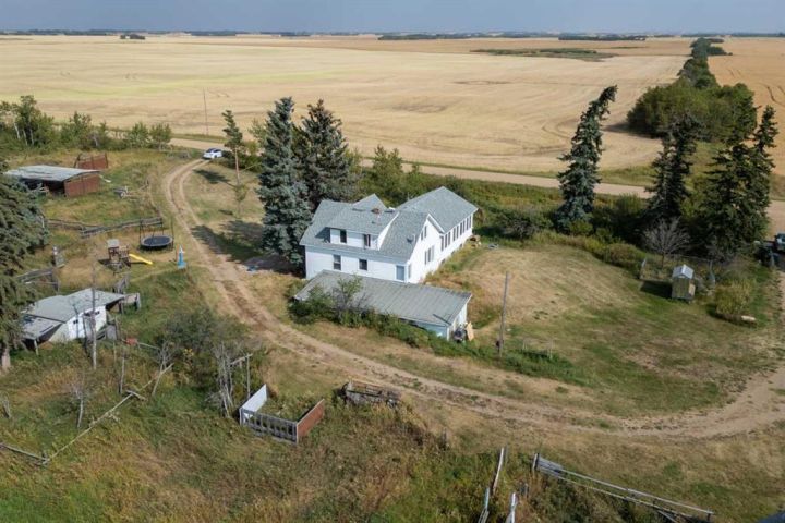 Just a few kilometers off Highway 36, south of Killam, this 5.85-acre property could be exactly what you’ve been searching for. Fully fenced and cross-fenced with multiple shelters, stalls, and pens, it’s perfectly set up to start your own hobby farm or acreage life.. A 30x50 Quonset with dirt floors offers plenty of space for storage, a workshop, or even a small barn. The home itself is spacious and well-suited for a growing family. On the main floor, you’ll find one bedroom, a 4-piece bathroom, a bright kitchen with ample storage, a dining area, and a cozy living room. Upstairs features three more bedrooms and a 2 piece bathroom. Over the years, this home has seen a number of updates, including vinyl windows, siding, shingles, flooring, and window coverings. A large addition filled with natural light makes the perfect space for entertaining and it also includes another 2 piece bathroom. From here, you’ll find access to the basement. There is another laundry area, a fully equipped kitchen with fridge, stove, dishwasher, and microwave, a 4 piece bathroom, and a small bedroom, plus direct outdoor access. The basement offers even more with ample storage, utility space, a workshop with 200-amp service and outside access, plus a cistern system pumped from the well. Both the workshop and the basement feature in-floor heating, while the furnace, though older, is in good working order. Outside, the yard is full of potential and charm with pear, apricot, apple, and cherry trees, as well as mature trees that provide privacy and shade. A wraparound driveway makes it easy to bring in RVs, stock trailers, or guests with ease. This property truly has it all with space, functionality, and the opportunity to create your own private oasis.
