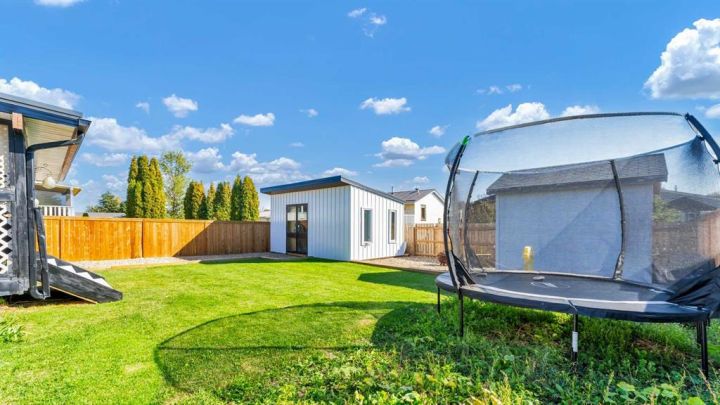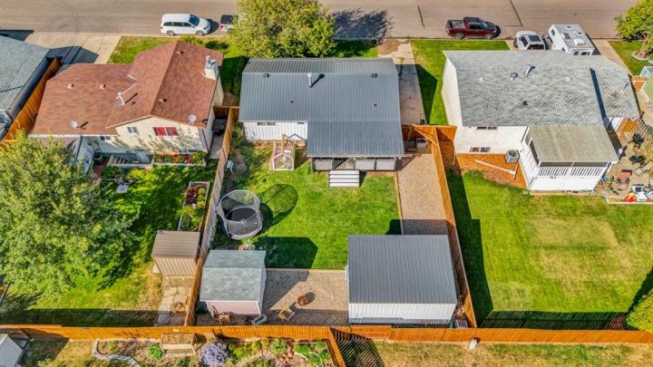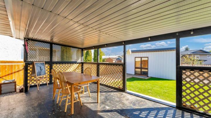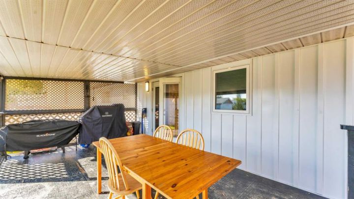 There's no place like home... Welcome to 112 Lake Newell Cr E in Brooks, Alberta. This practical home has undergone a remarkably modern, maintenance free, exterior makeover in 2024/25. With a metal roof and board & batten style metal siding, along with new windows & doors, there's no need to fret over future costs! There are 3 bedrooms upstairs, along with the main bathroom, living room, kitchen and dining area. With a separate side entrance, access the basement discretely, or come up to the kitchen through a side door. Downstairs features an additional bedroom (4th) and a separate office/den. Also in the basement is a large family room area, storage and a walkthrough bathroom/laundry room. The cozy covered deck looks out over the back yard, featuring a generously sized lawn & garden area, gravelled fire pit section, shed and a 2024 built, 20x12 metal sided and lined workshop.