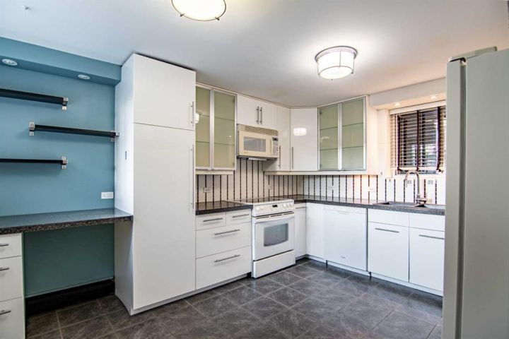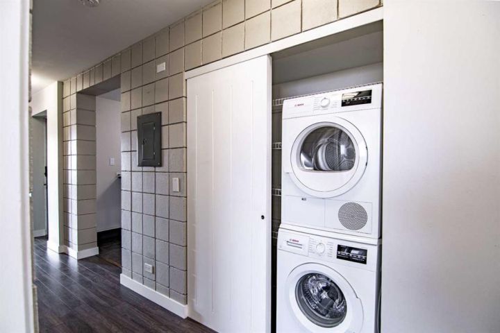 Dishwasher, Electric Stove, Microwave, Refrigerator, Washer/Dryer Stacked, Window Coverings